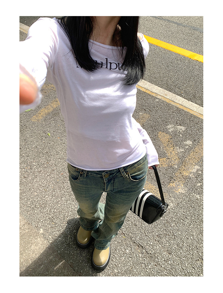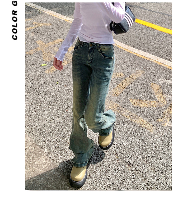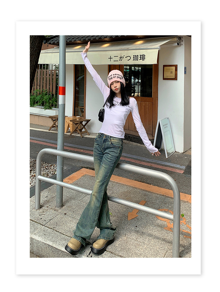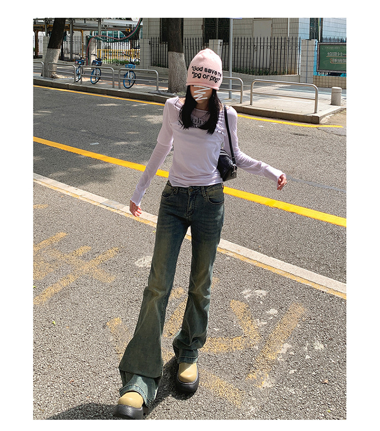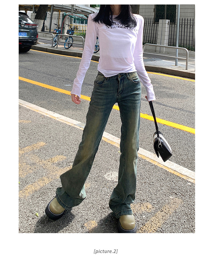 美式辣妹做旧低腰微喇裤女2025年新款修身显瘦百搭垂感喇叭牛仔裤