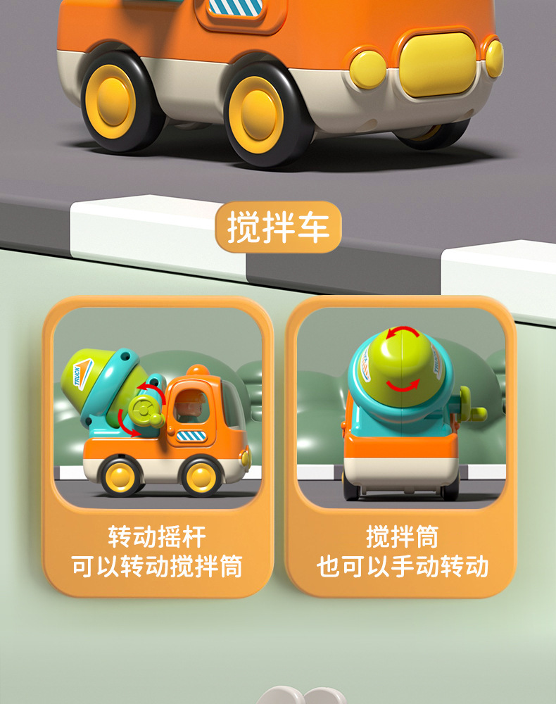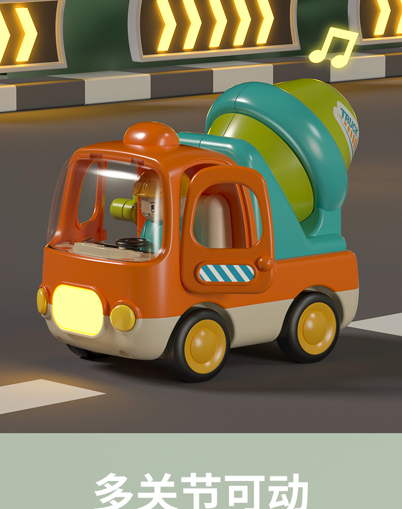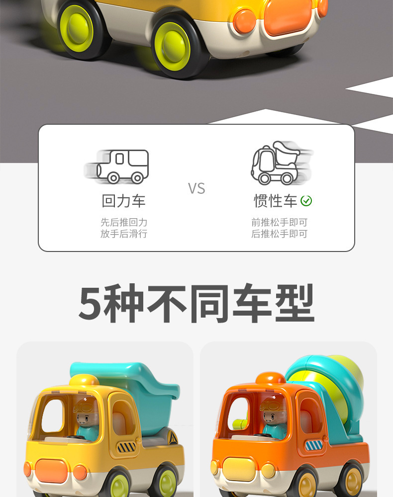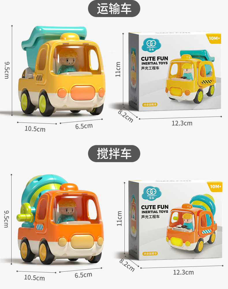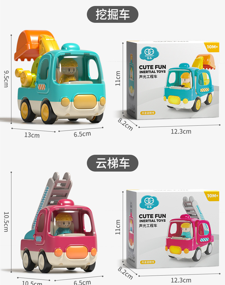 谷雨音乐工程车儿童卡通小汽车男孩1一3岁惯性回力车益智早教玩具