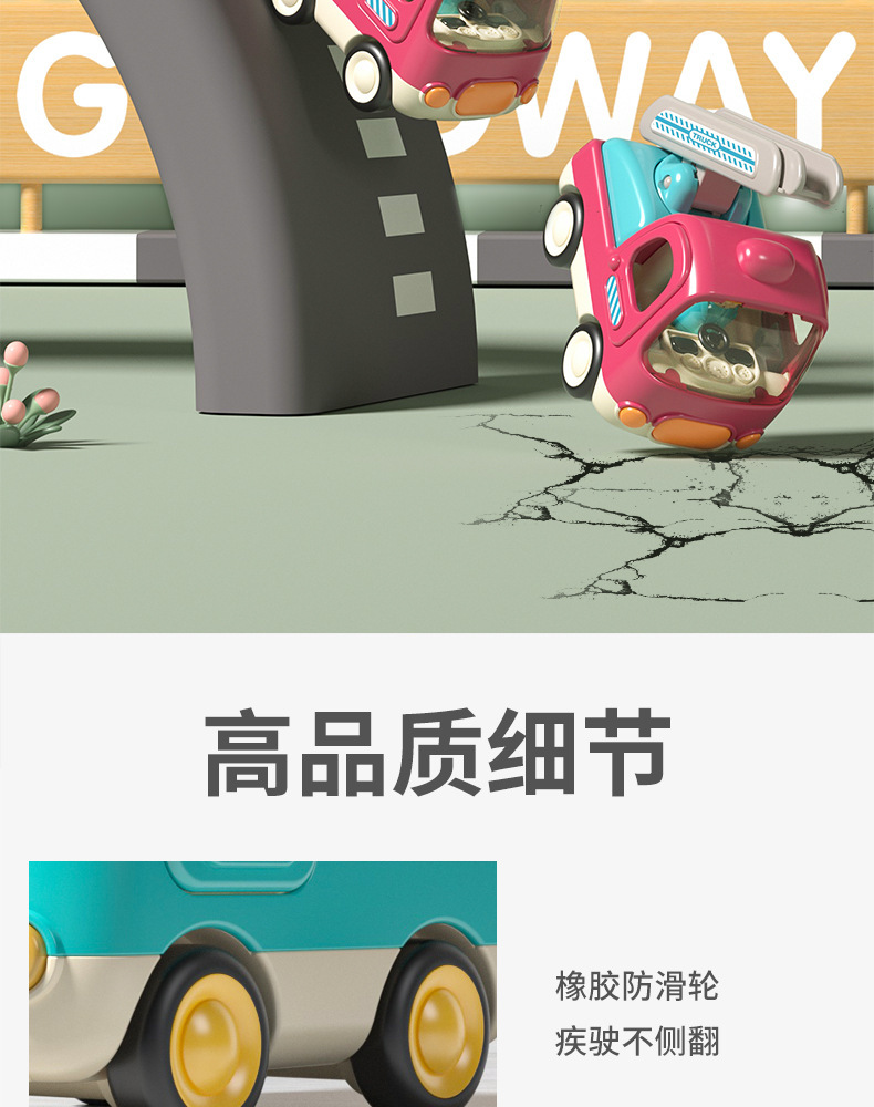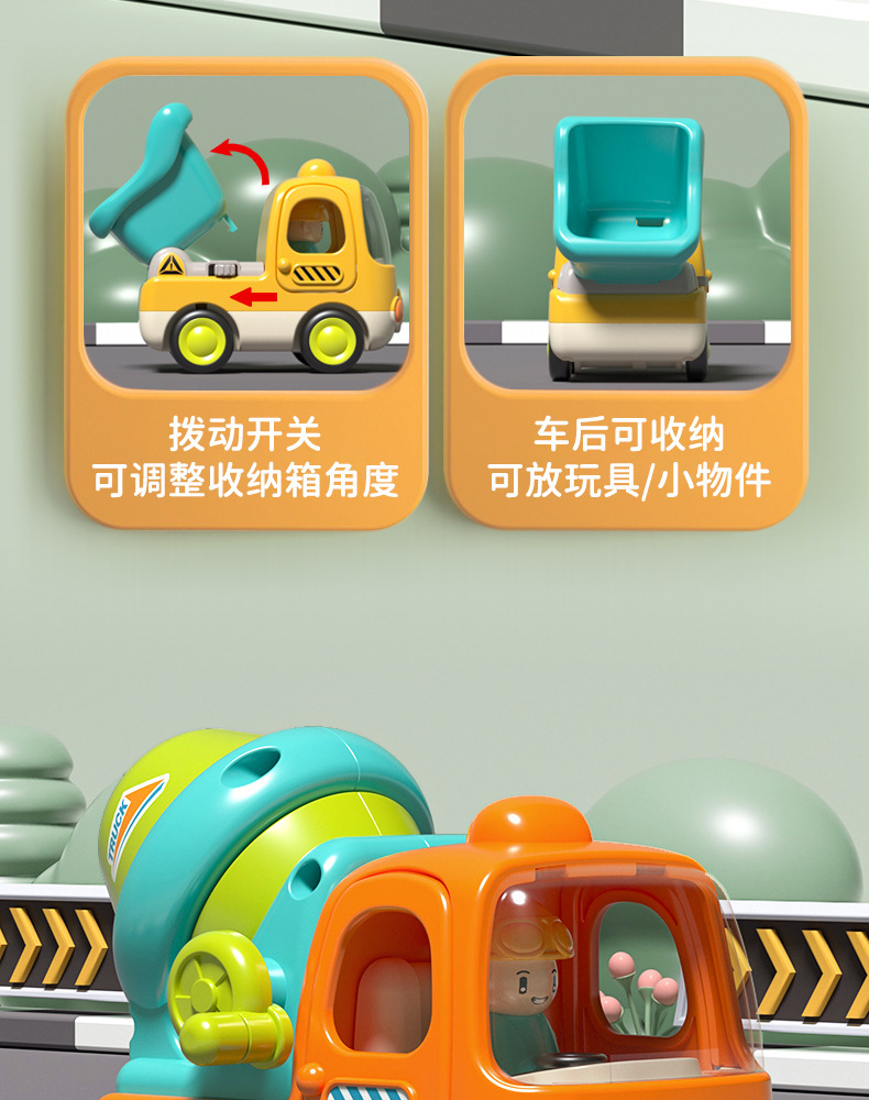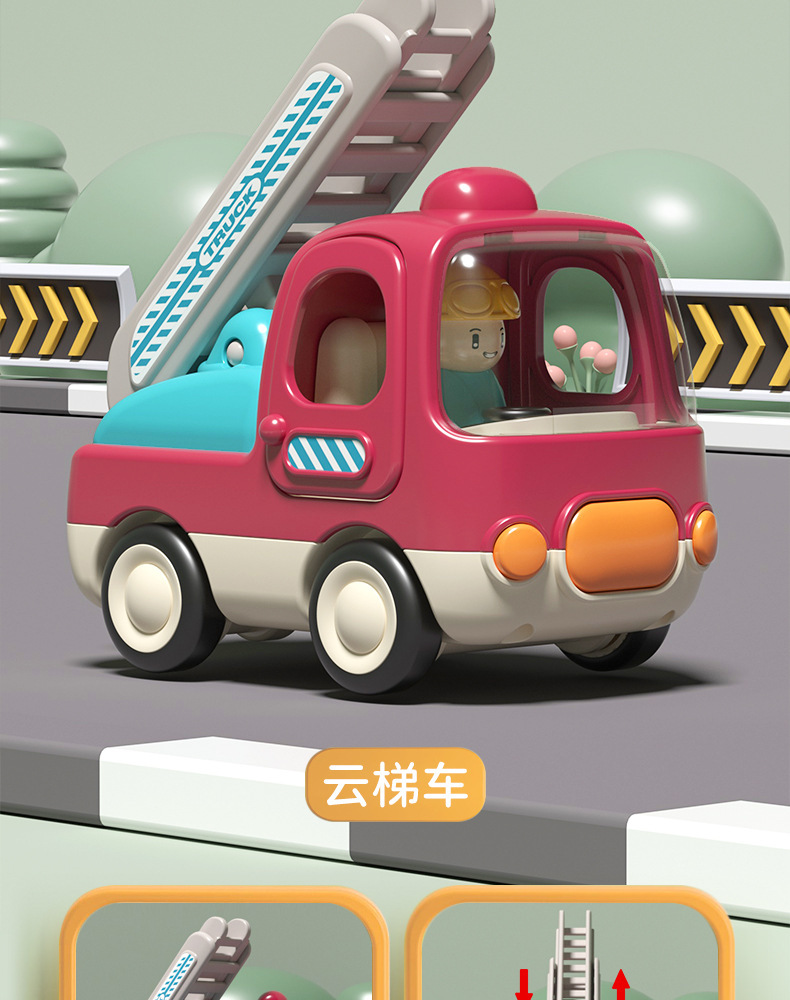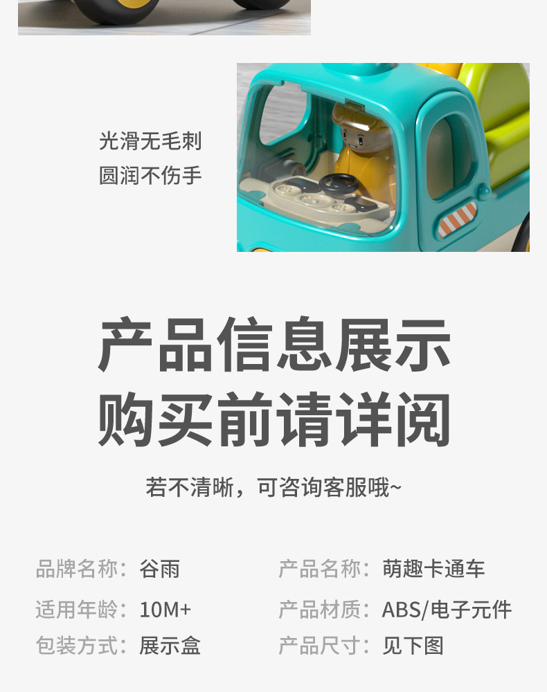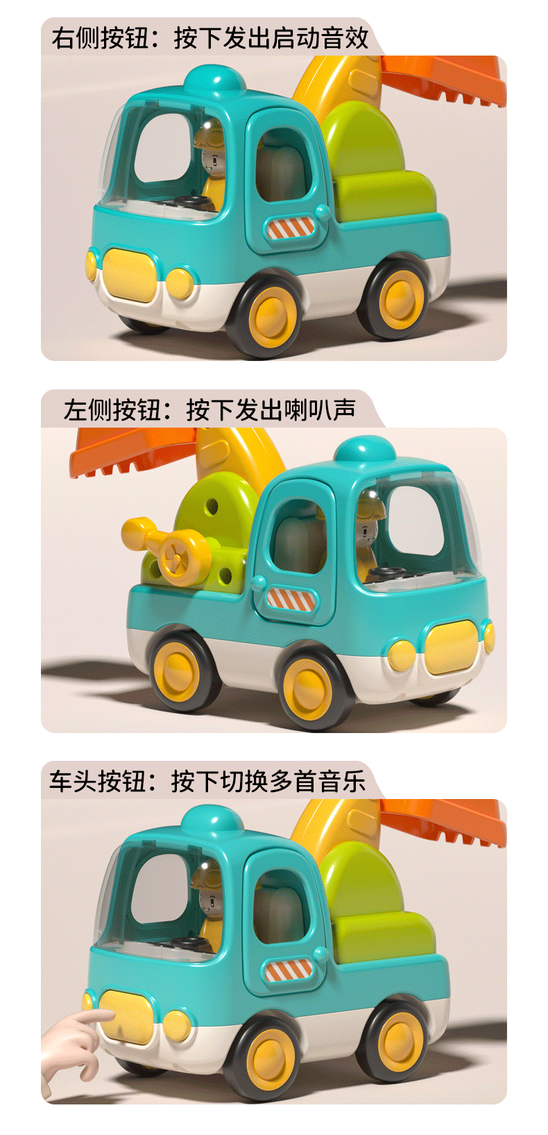 谷雨音乐工程车儿童卡通小汽车男孩1一3岁惯性回力车益智早教玩具