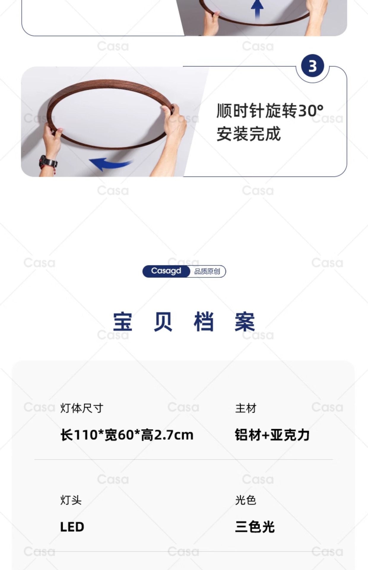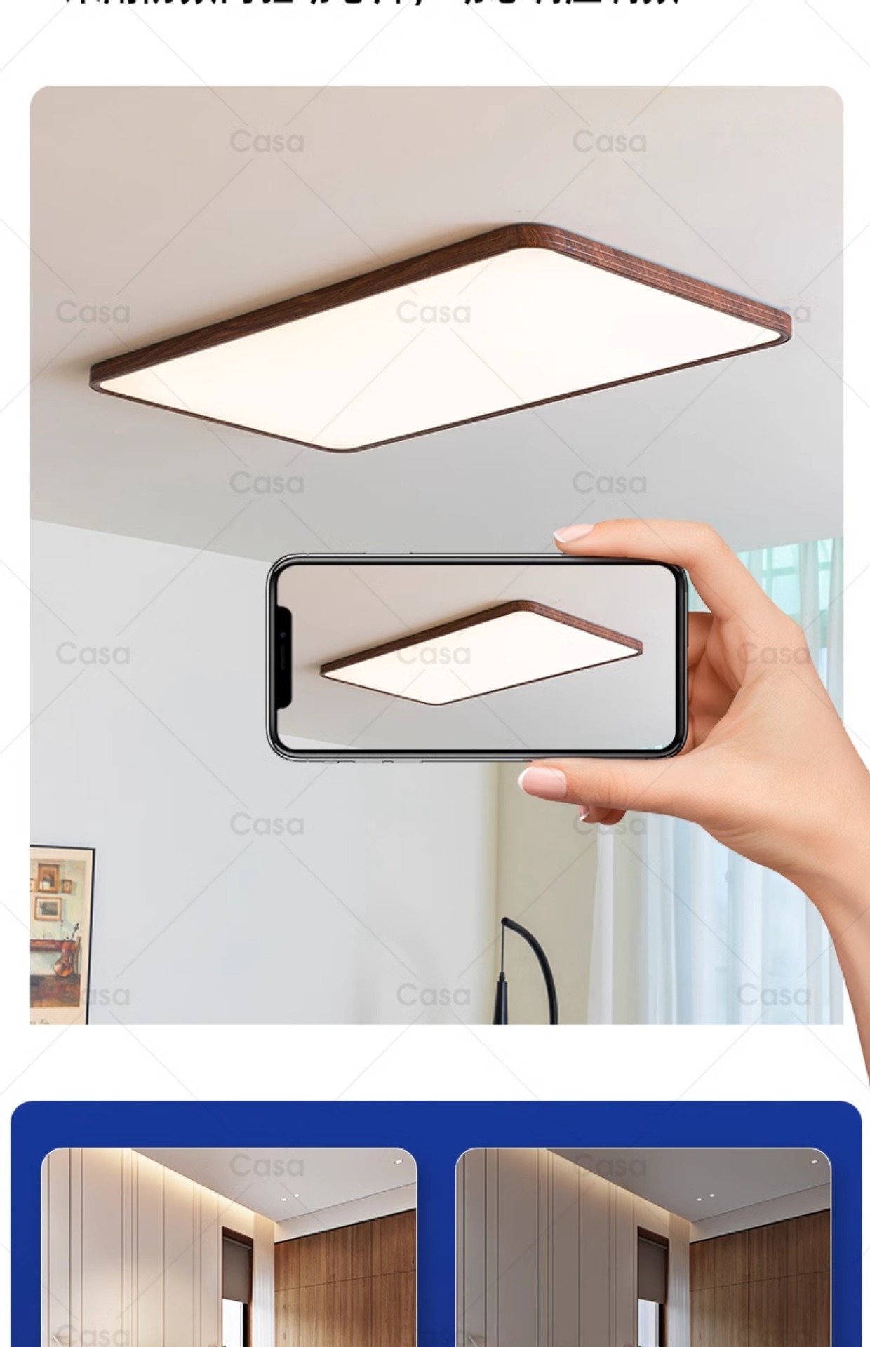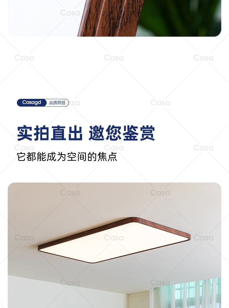 日式复古超薄客厅吸顶灯主灯大气中古胡桃木纹护眼卧室灯具casagd