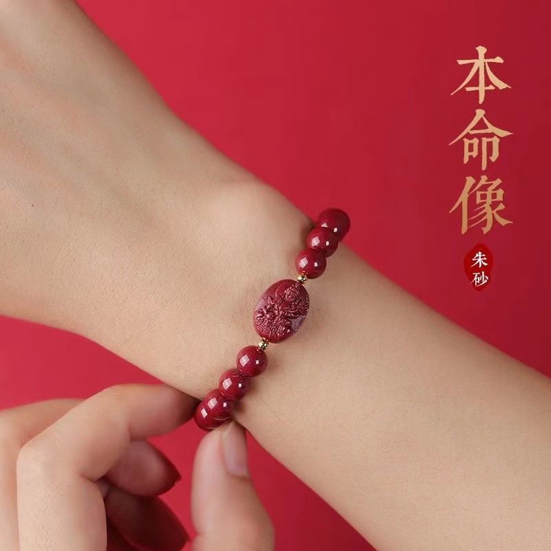 原矿朱砂手串男士本命年编织手绳十二生肖本命佛红绳手链女属龙年