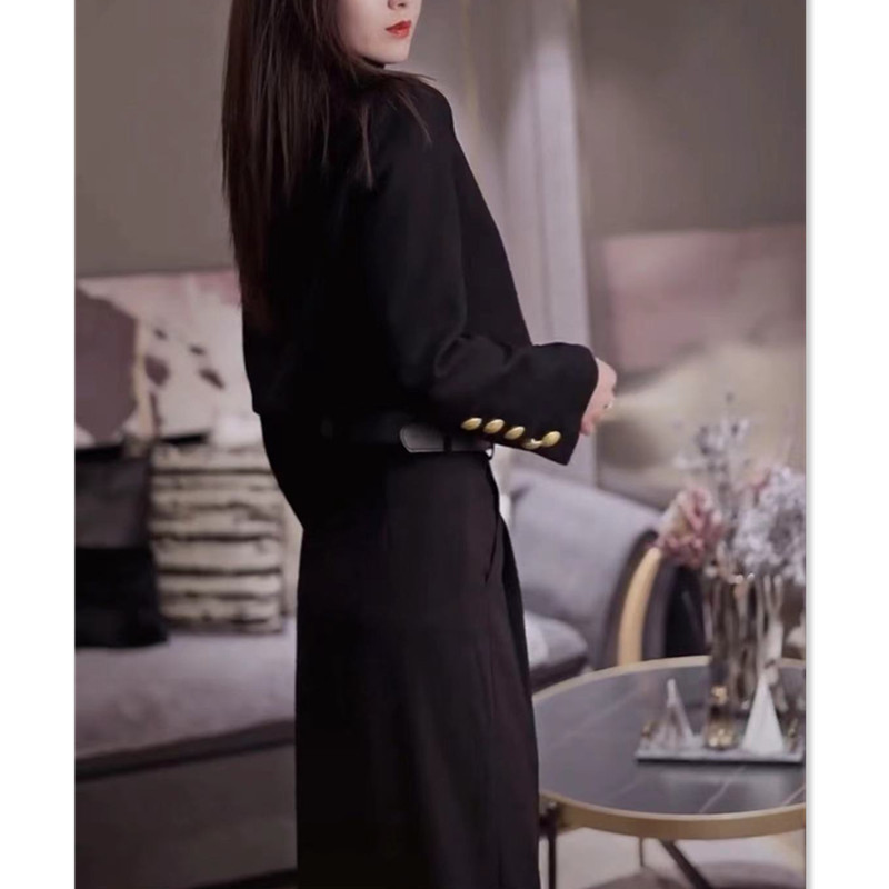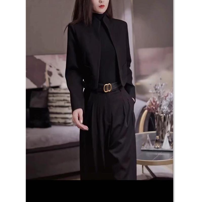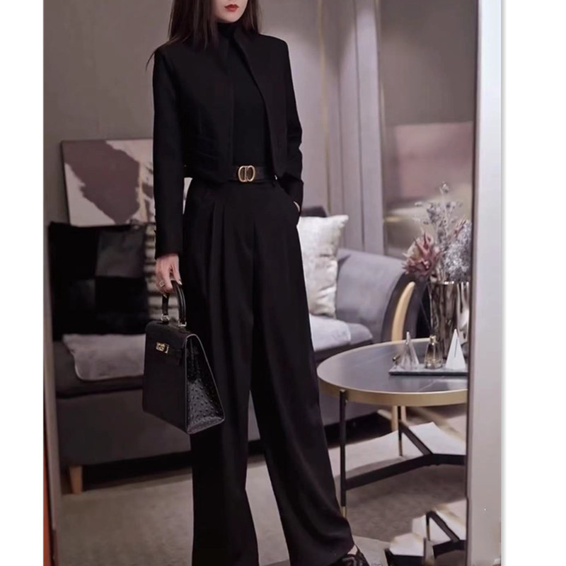 88262大爱美依缘2025春秋新款长袖短外套高腰阔腿长裤黑色女装潮
