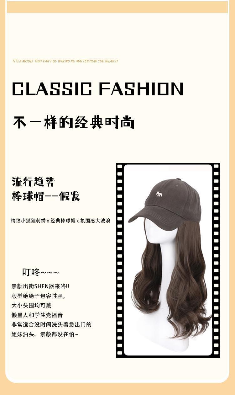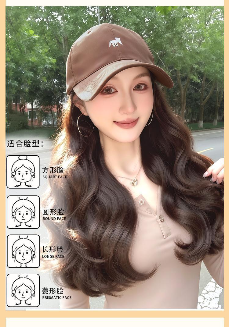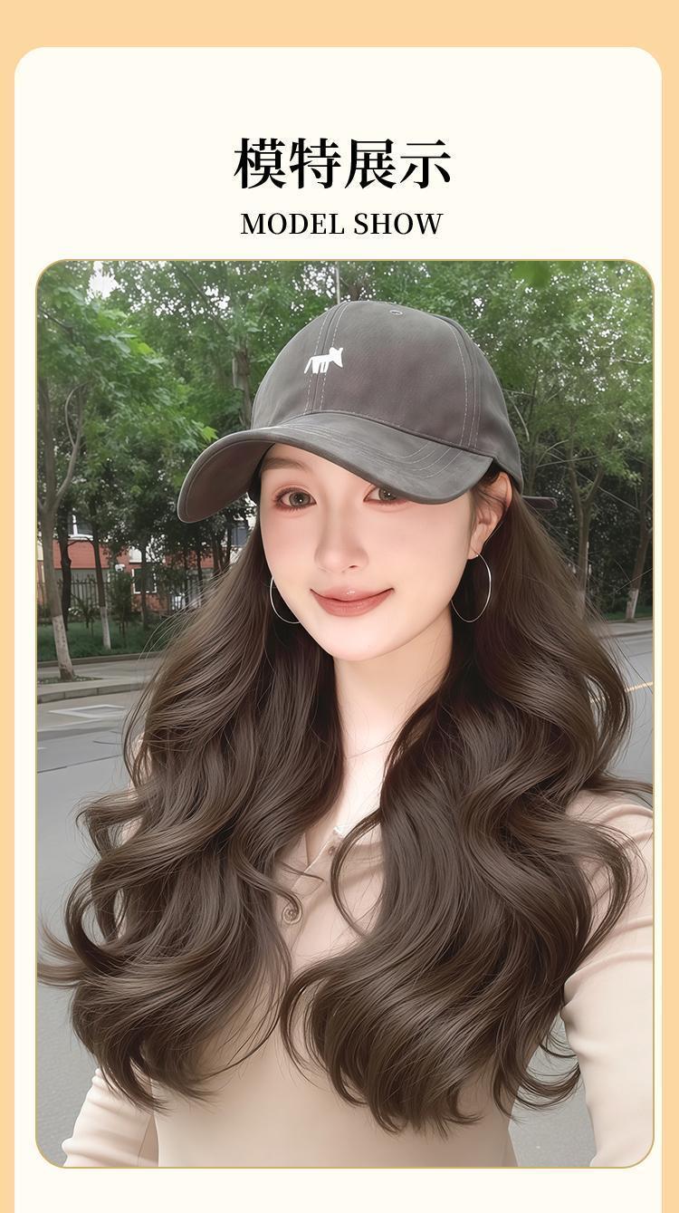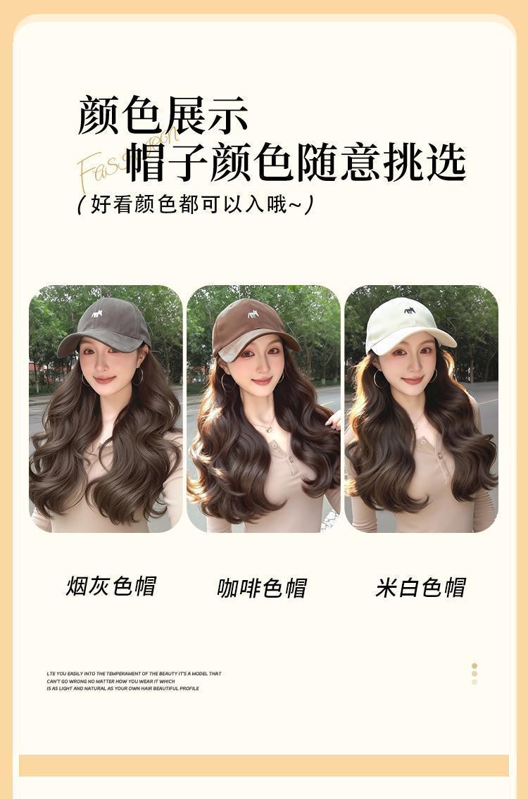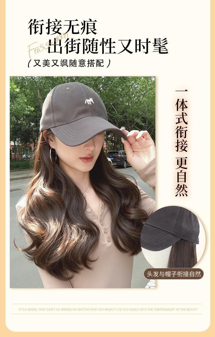 假发帽子一体女2024秋冬新款网红小狐狸棒球帽子带假头发女全头套