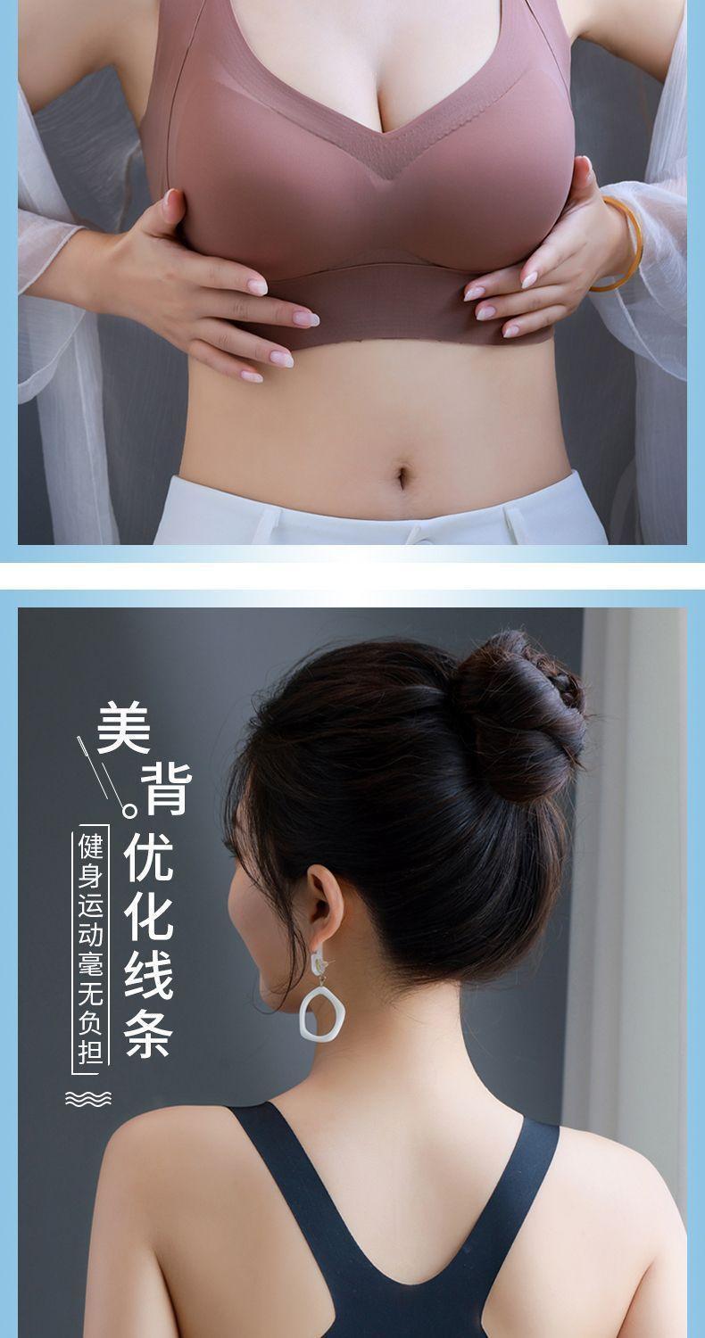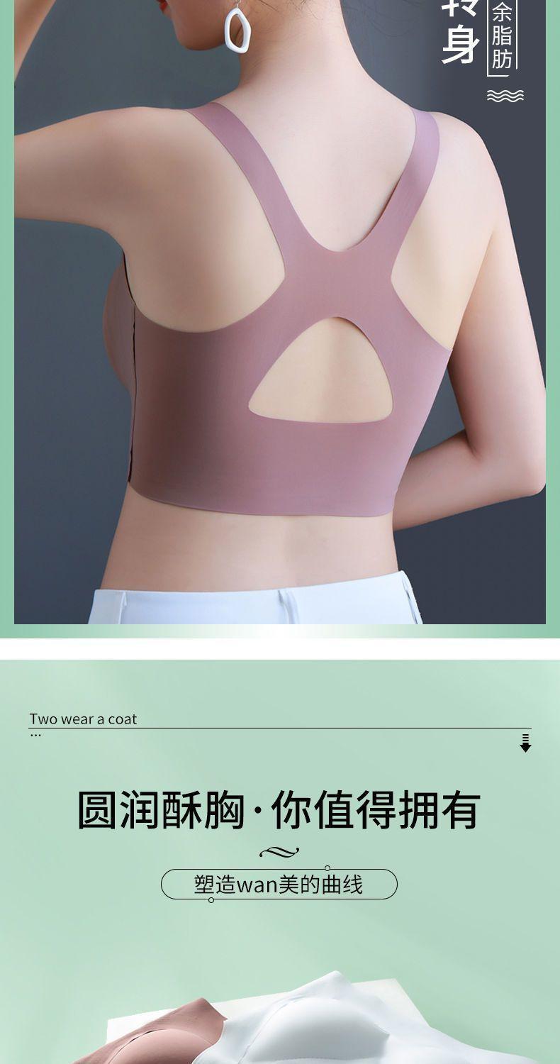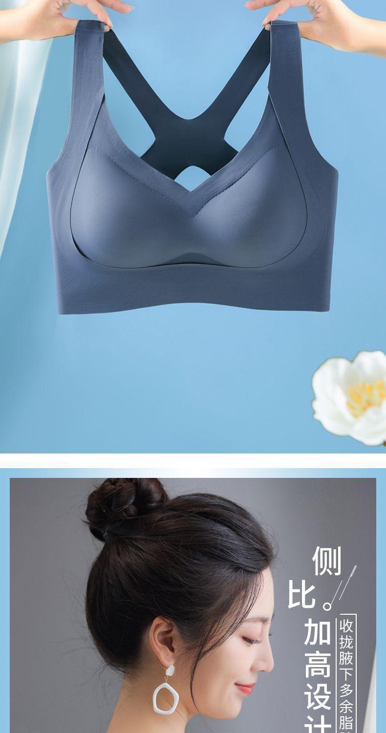 冰丝无痕聚拢上托交叉美背文胸女无钢圈大胸显小薄款大码运动内衣