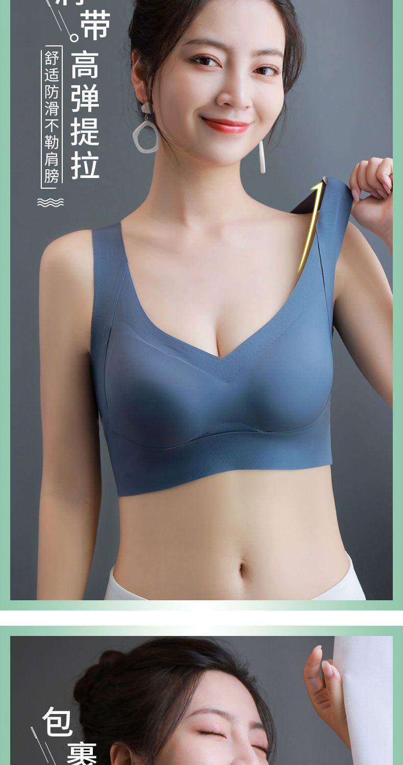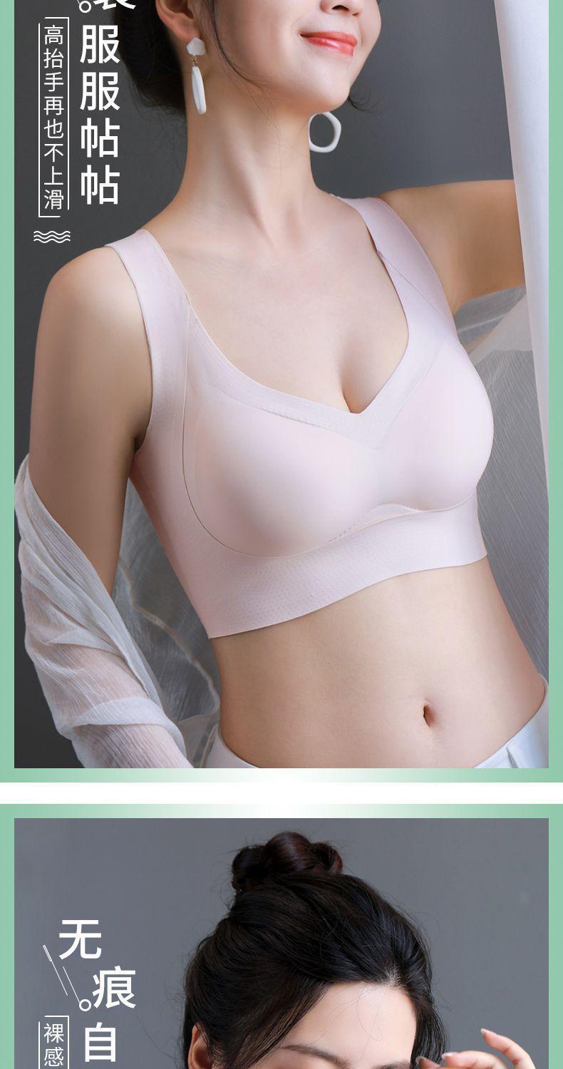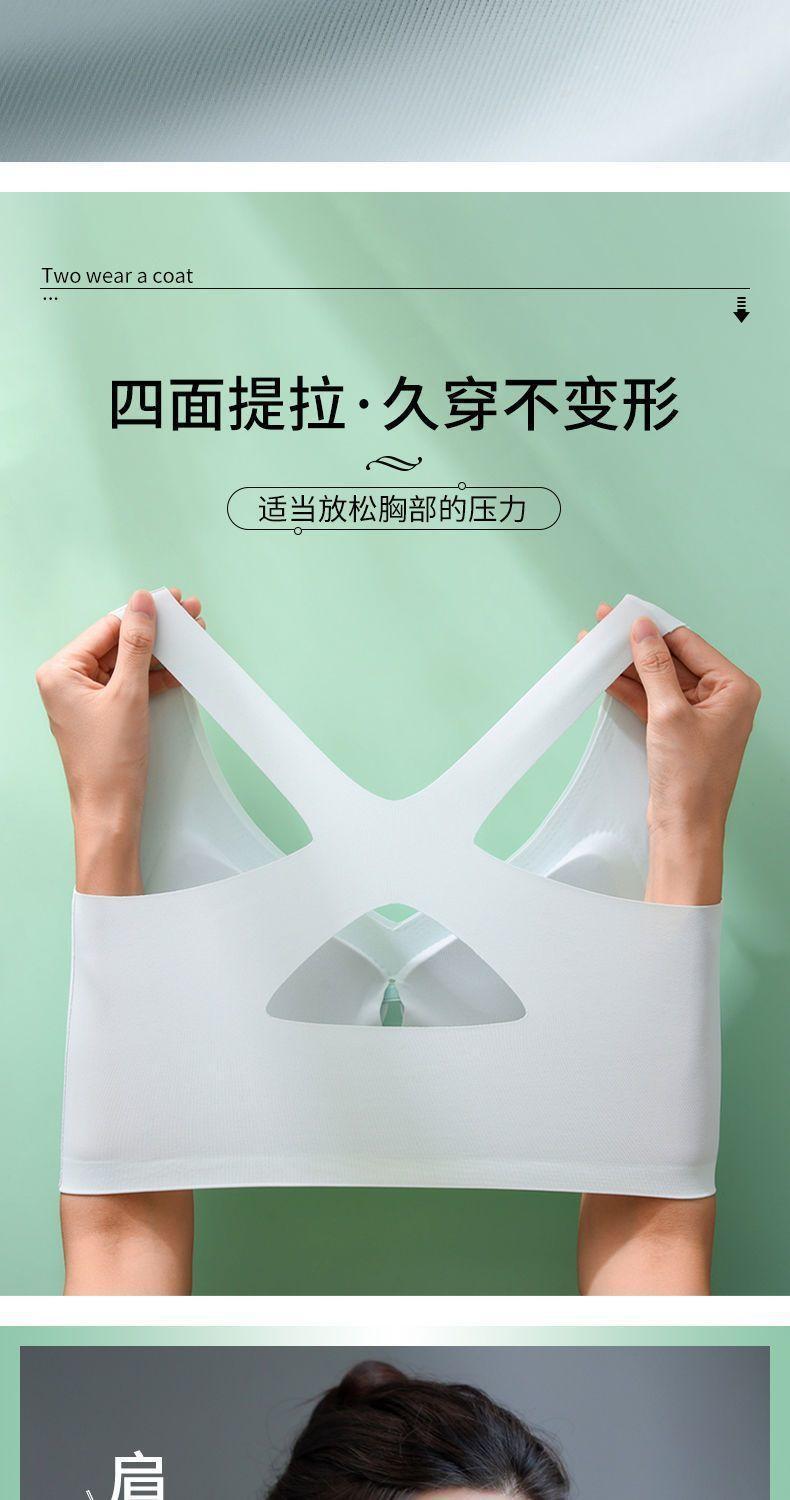 冰丝无痕聚拢上托交叉美背文胸女无钢圈大胸显小薄款大码运动内衣