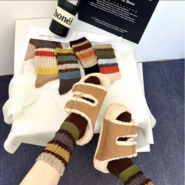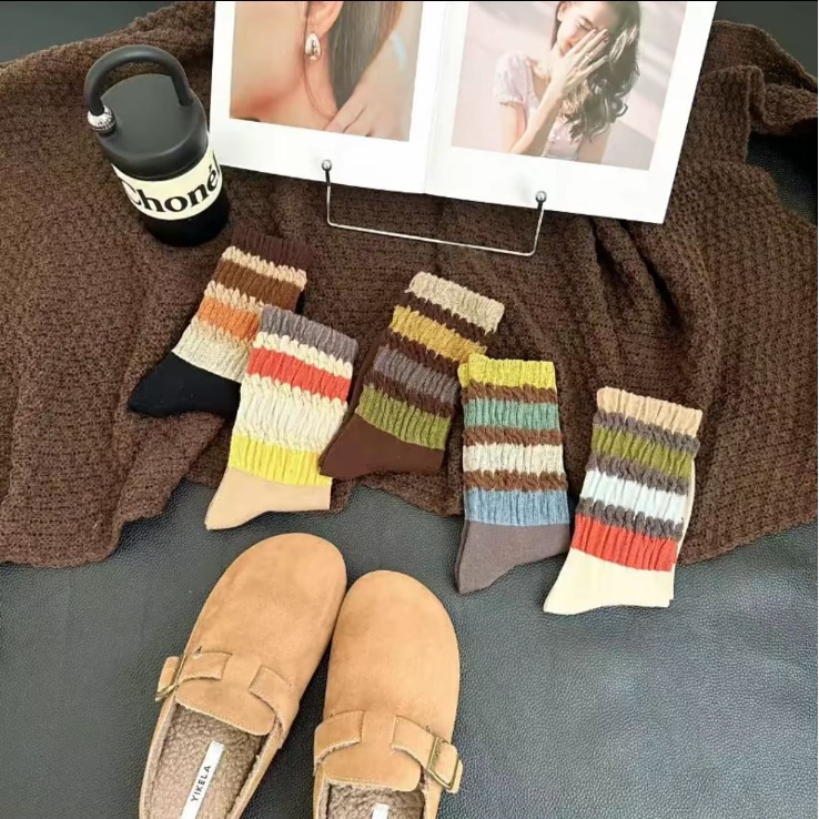 袜子女秋冬松口不勒腿堆堆袜网红慵懒风ins韩系条纹彩虹复古长袜