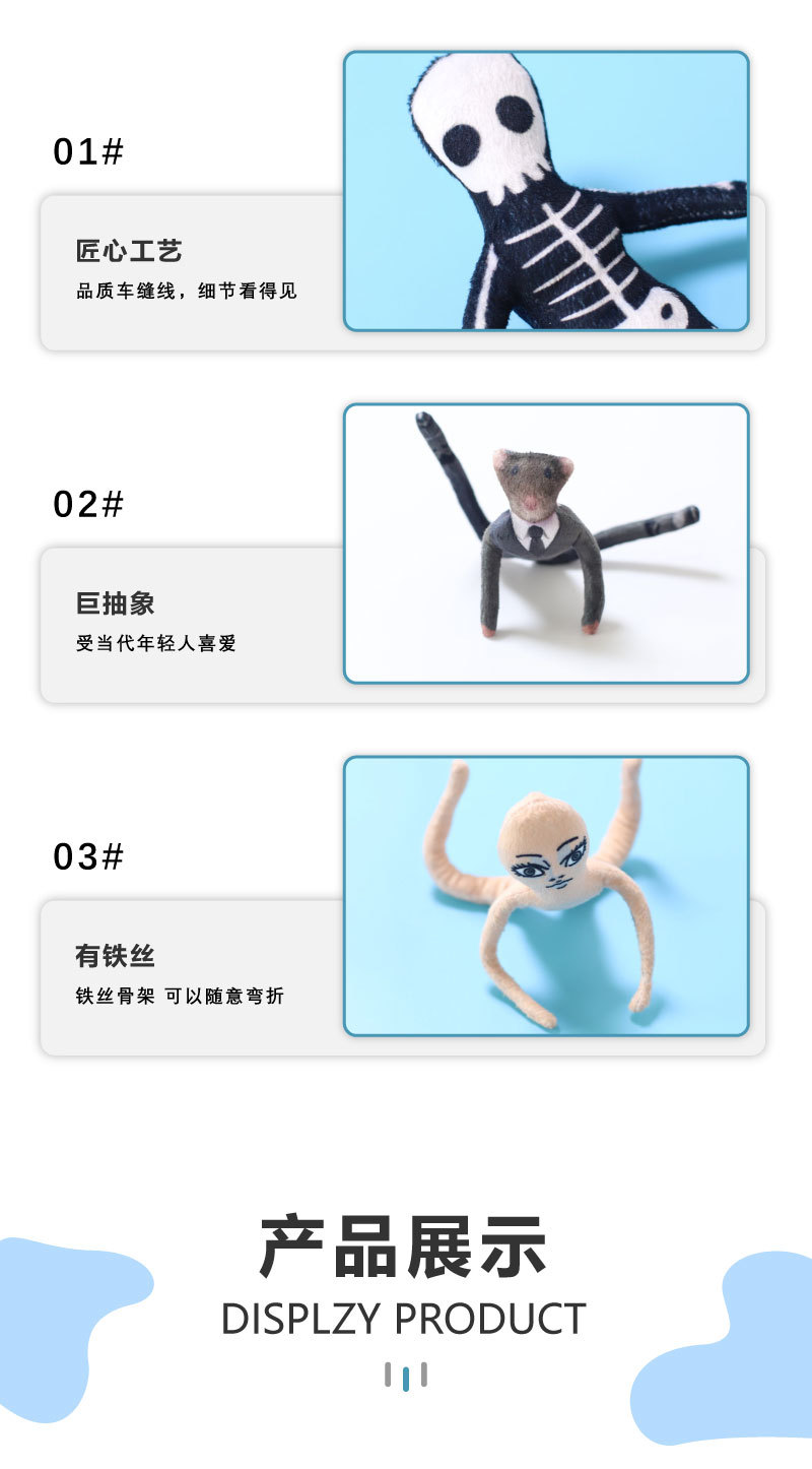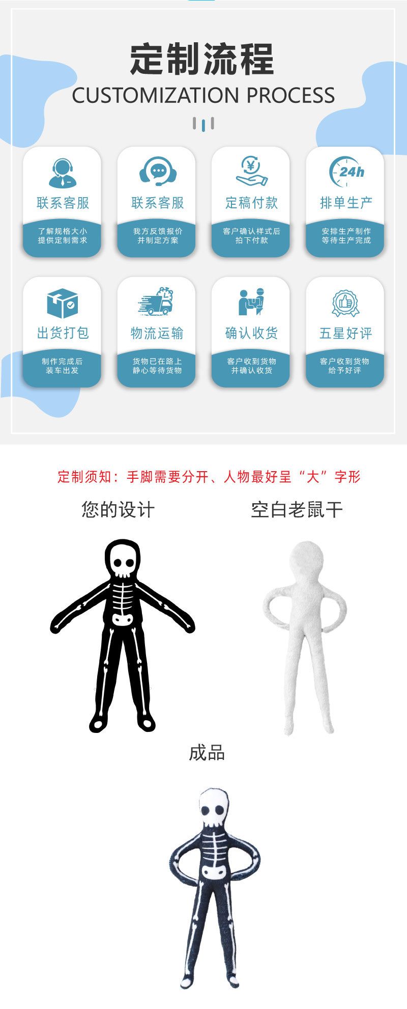 老鼠干铁丝骨架抽象娃娃卡通动漫周边人形无白边玩偶来图diy批发