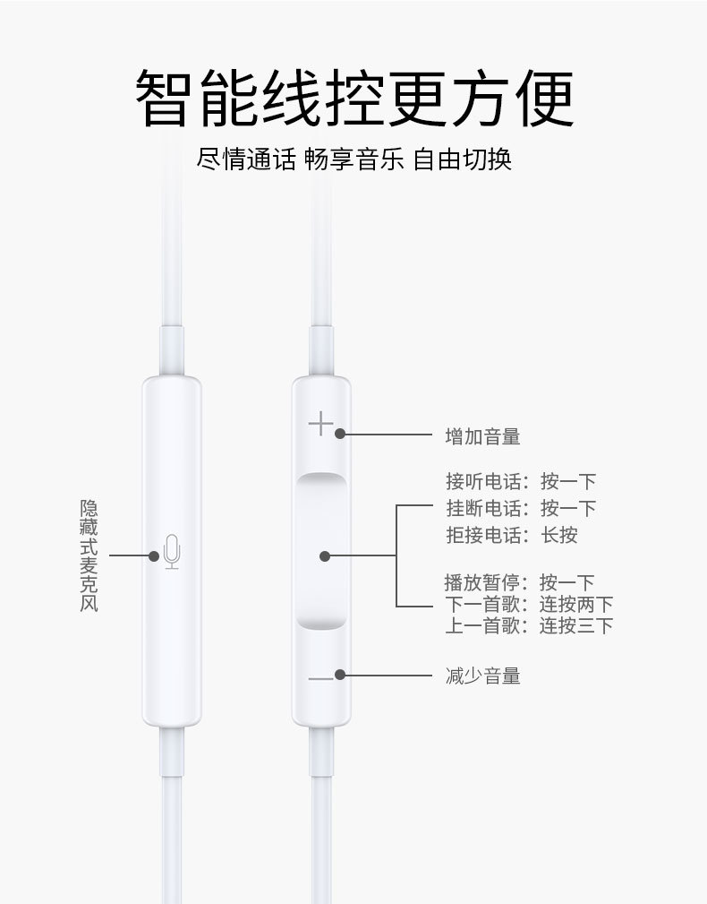 耳机有线入耳式适用华为oppo小米vivo手机type-c接口线控带麦包邮