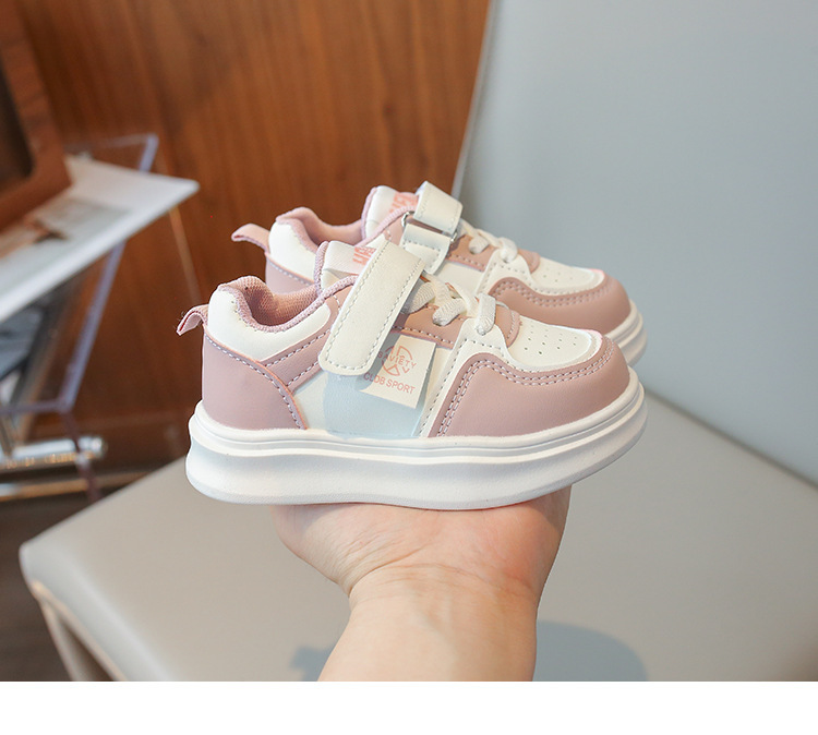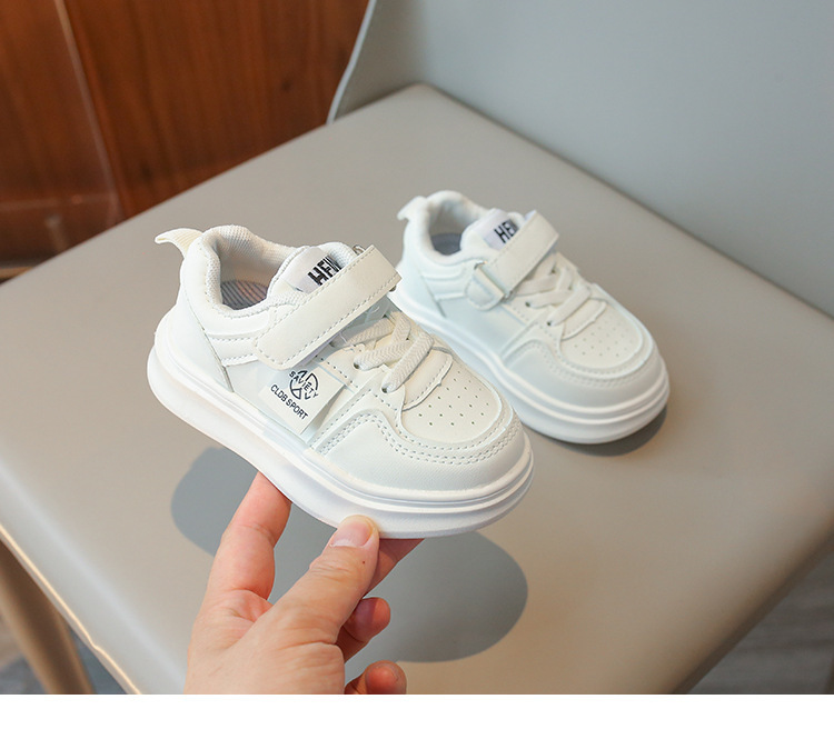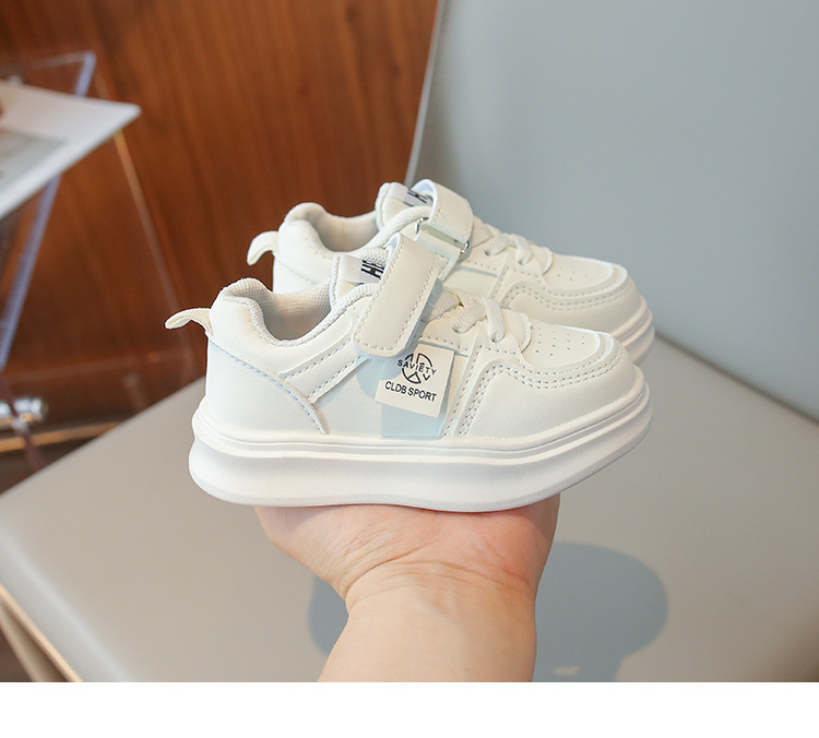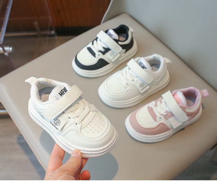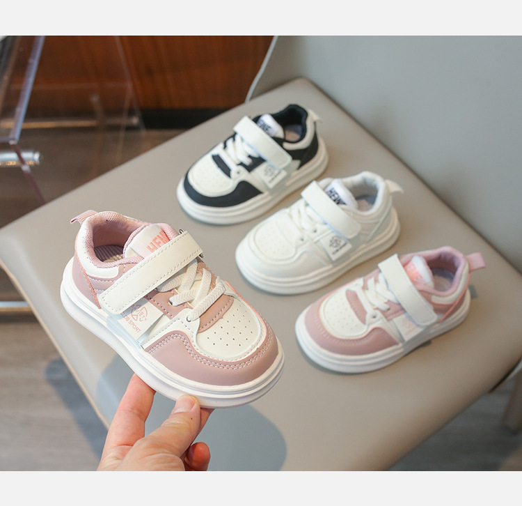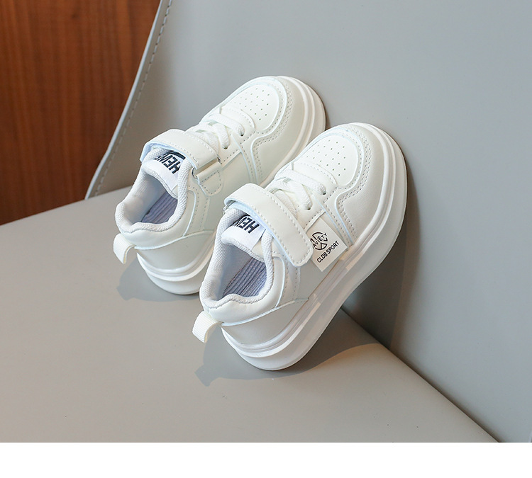 男女童鞋秋冬新款2024新款皮面儿童运动小白鞋中小童加绒板鞋批发