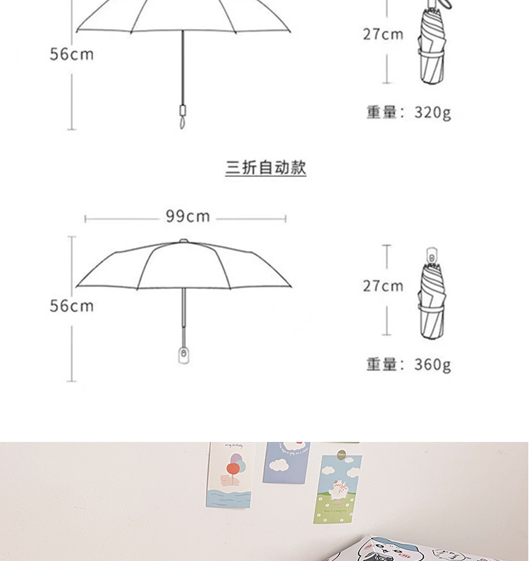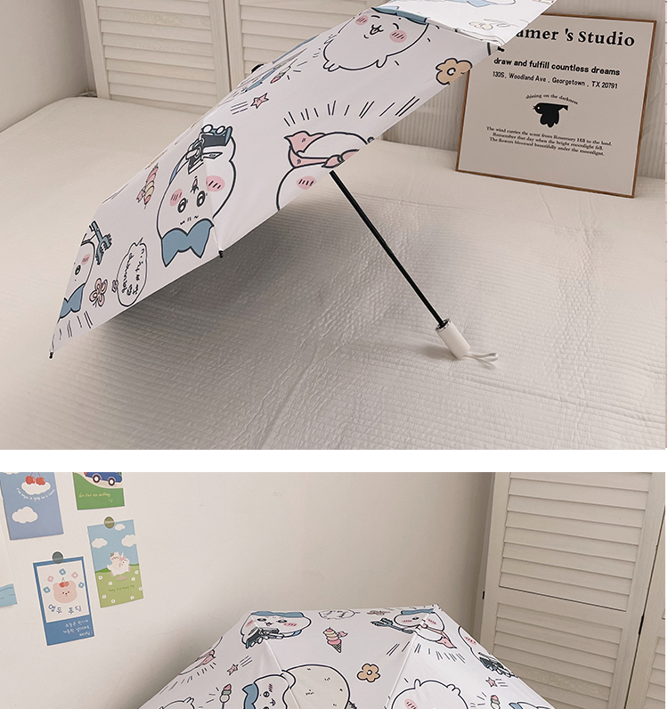吉伊卡哇小八可爱晴雨两用全自动雨伞折叠遮阳伞防晒黑胶太阳伞