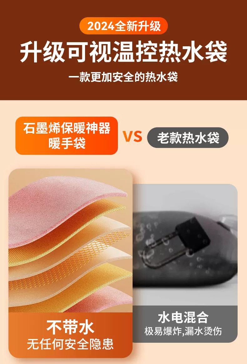 厂家新款电热石墨烯暖手袋无水便携充电防爆超长高续航暖手宝批发