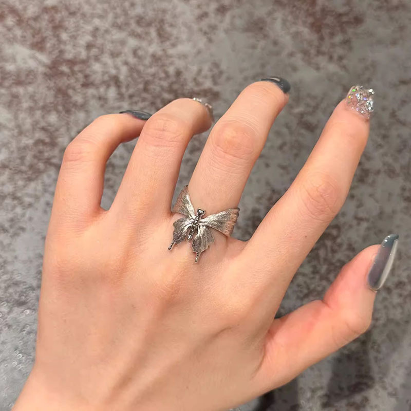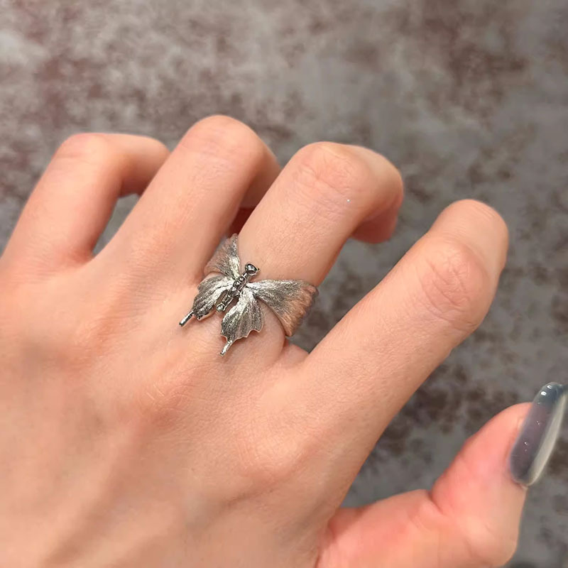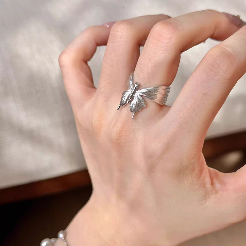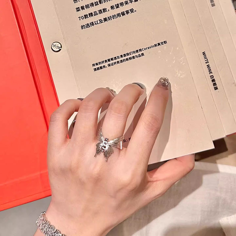 宽版拉丝蝴蝶戒指女小众设计甜美百搭高级感开口食指戒跨境批发
