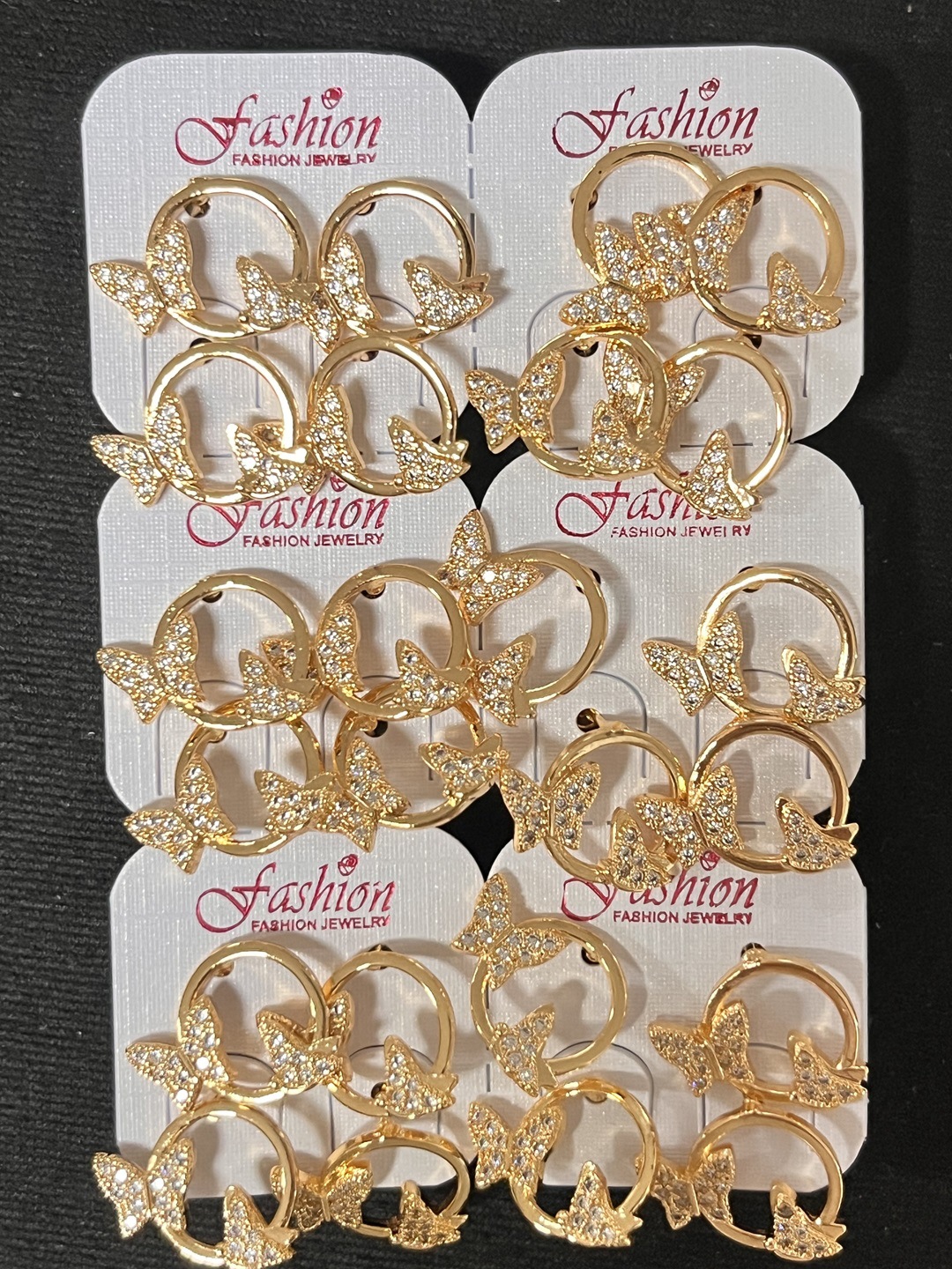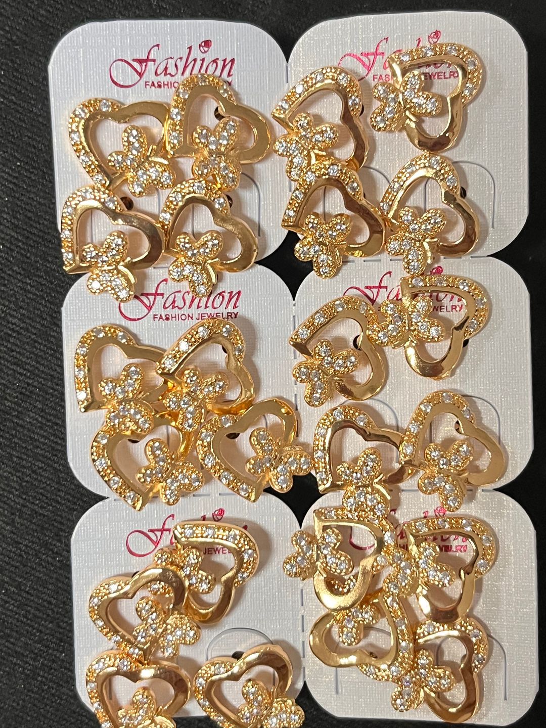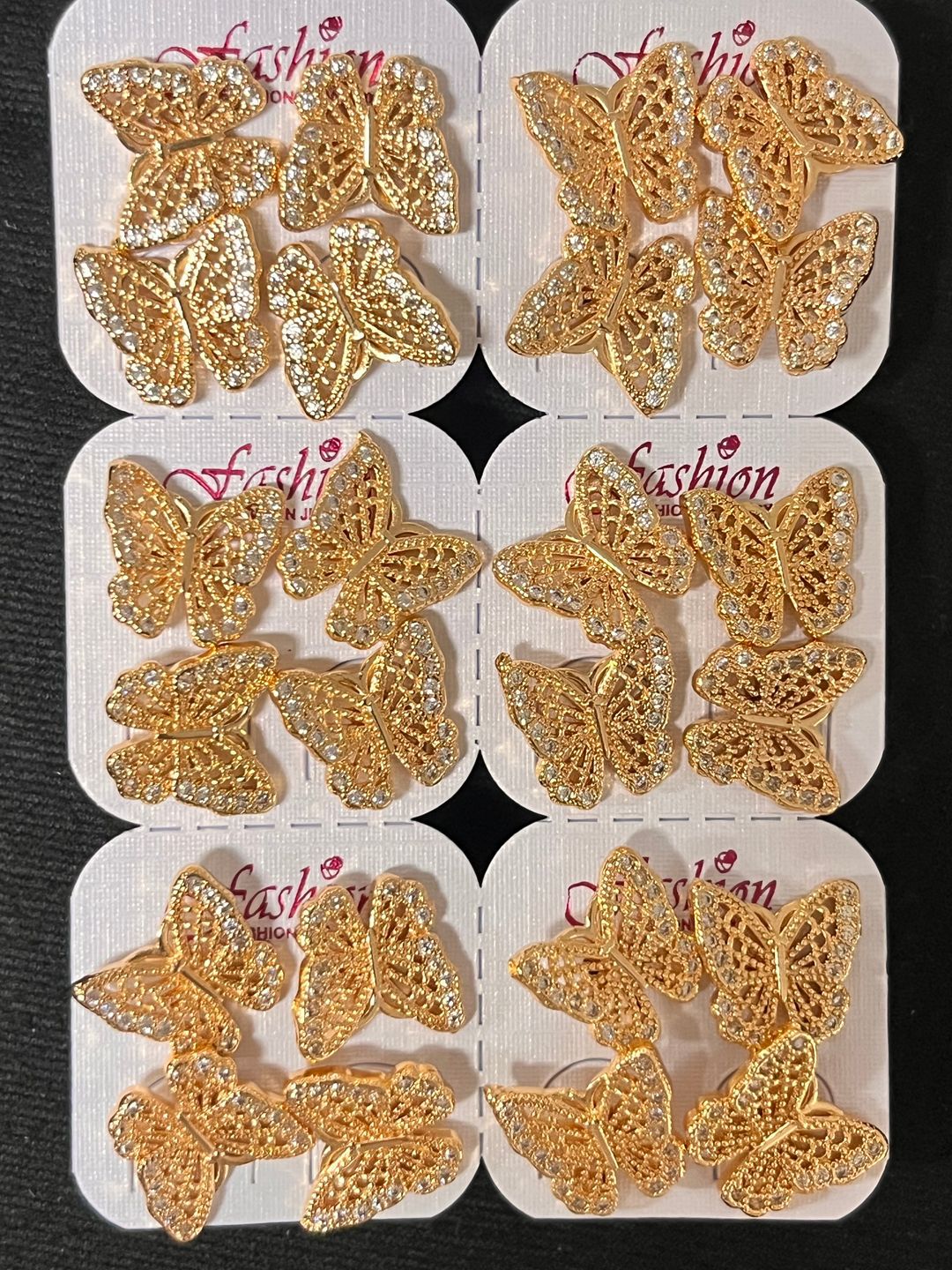 跨境耳钉镶钻耳环蝴蝶爱心带钻满钻设计感时尚小镀金精致耳饰百搭