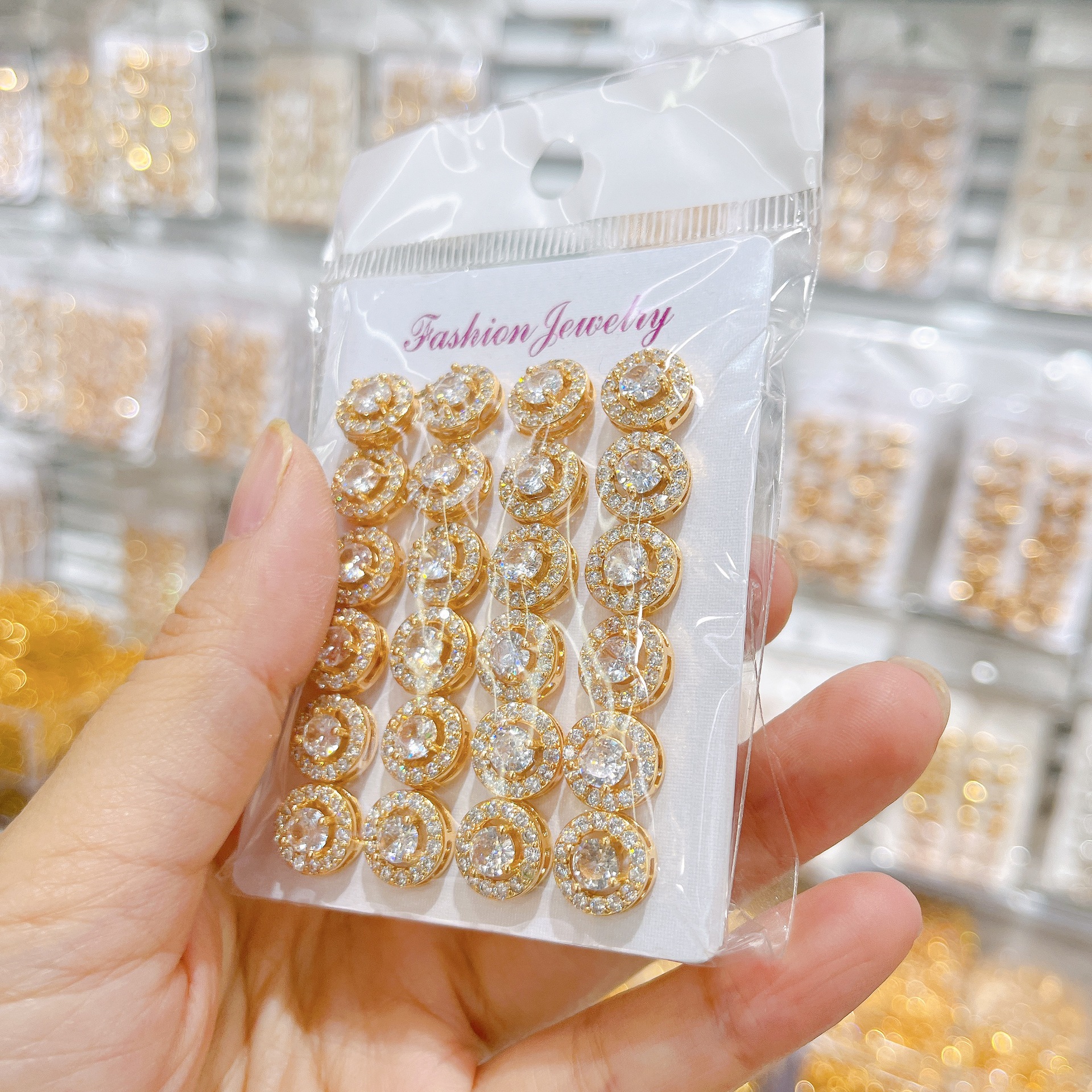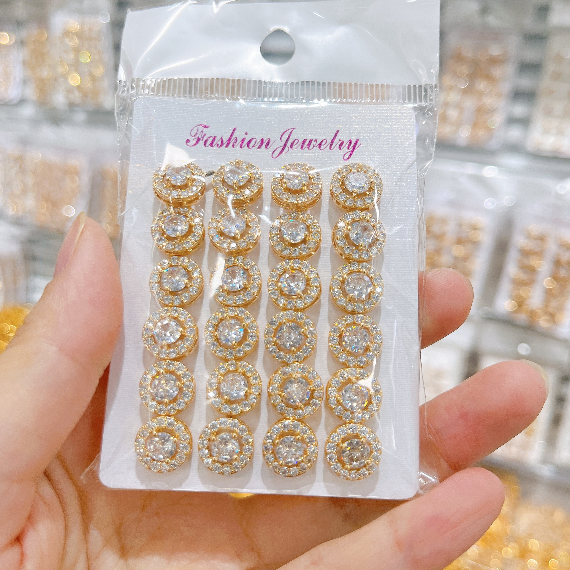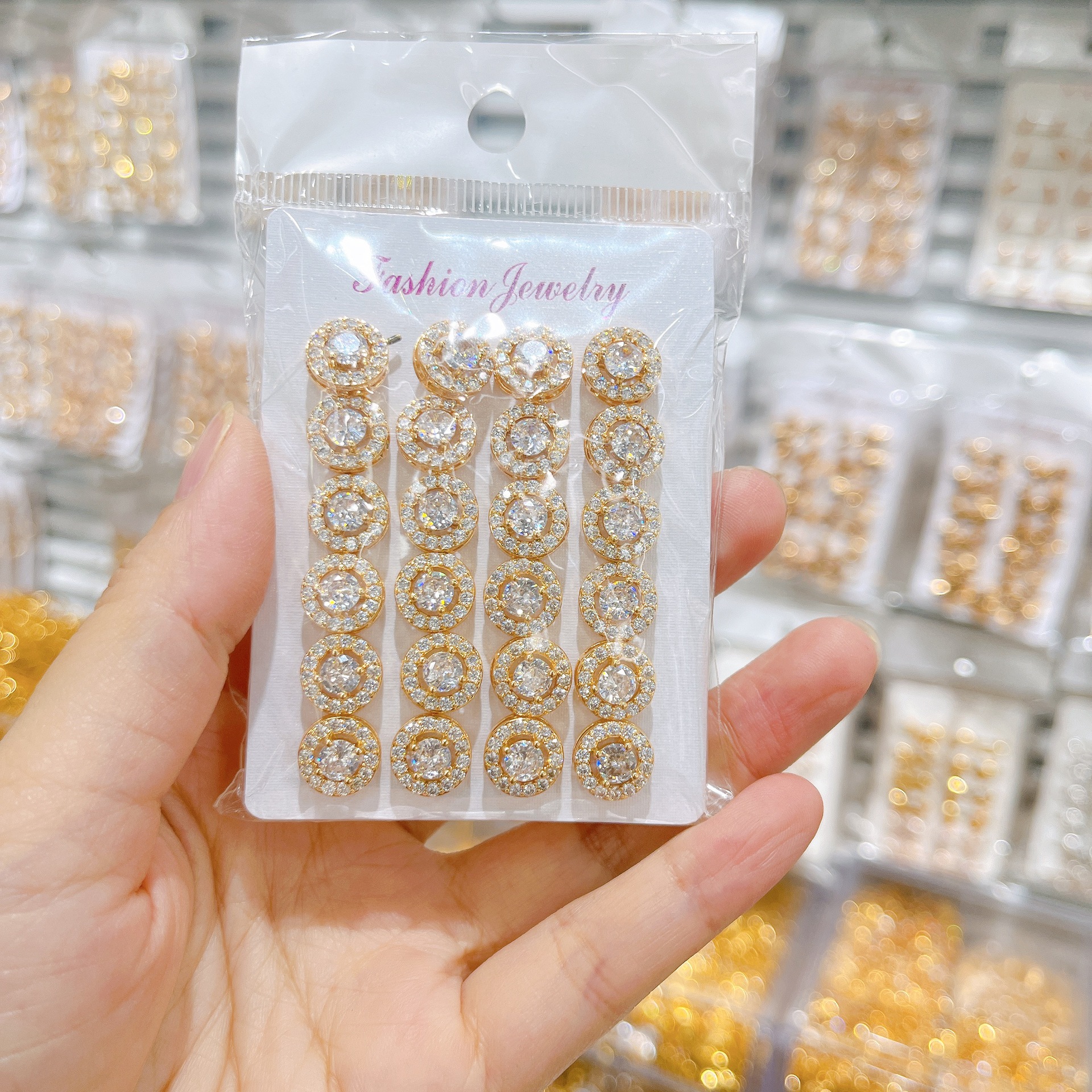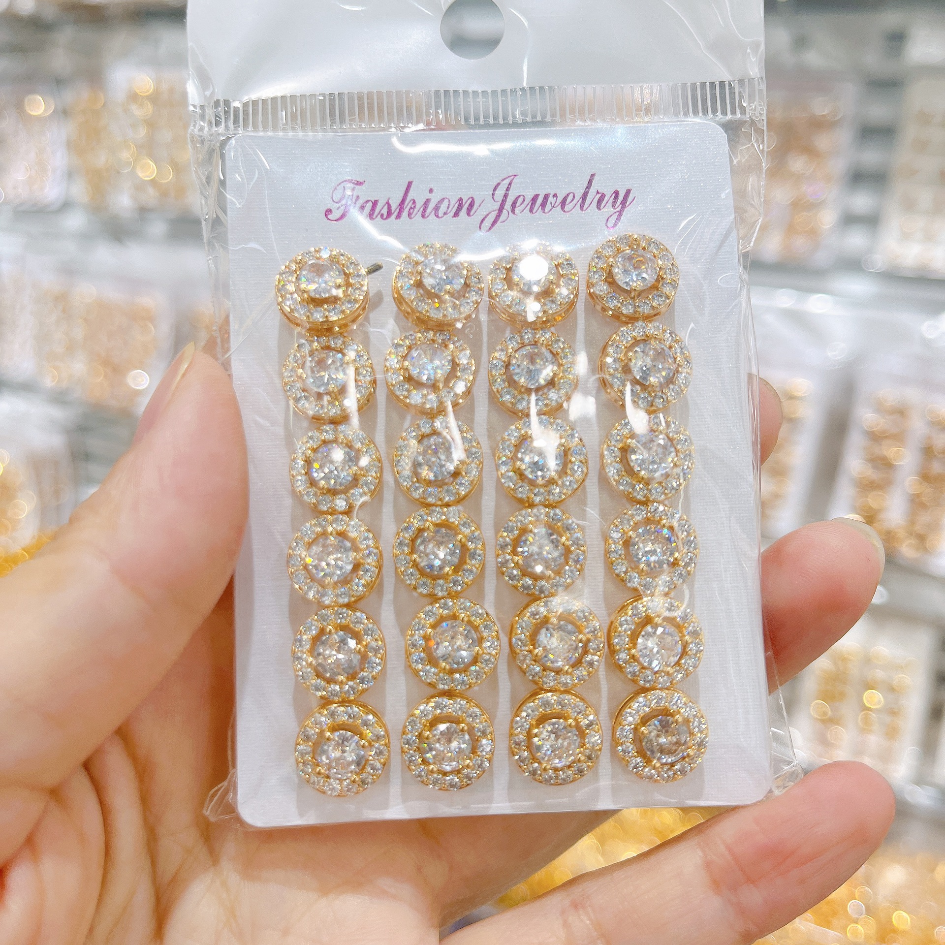 跨境耳钉耳环圆形钻锆石镶钻百搭气质高级感铜镀金金色耳饰