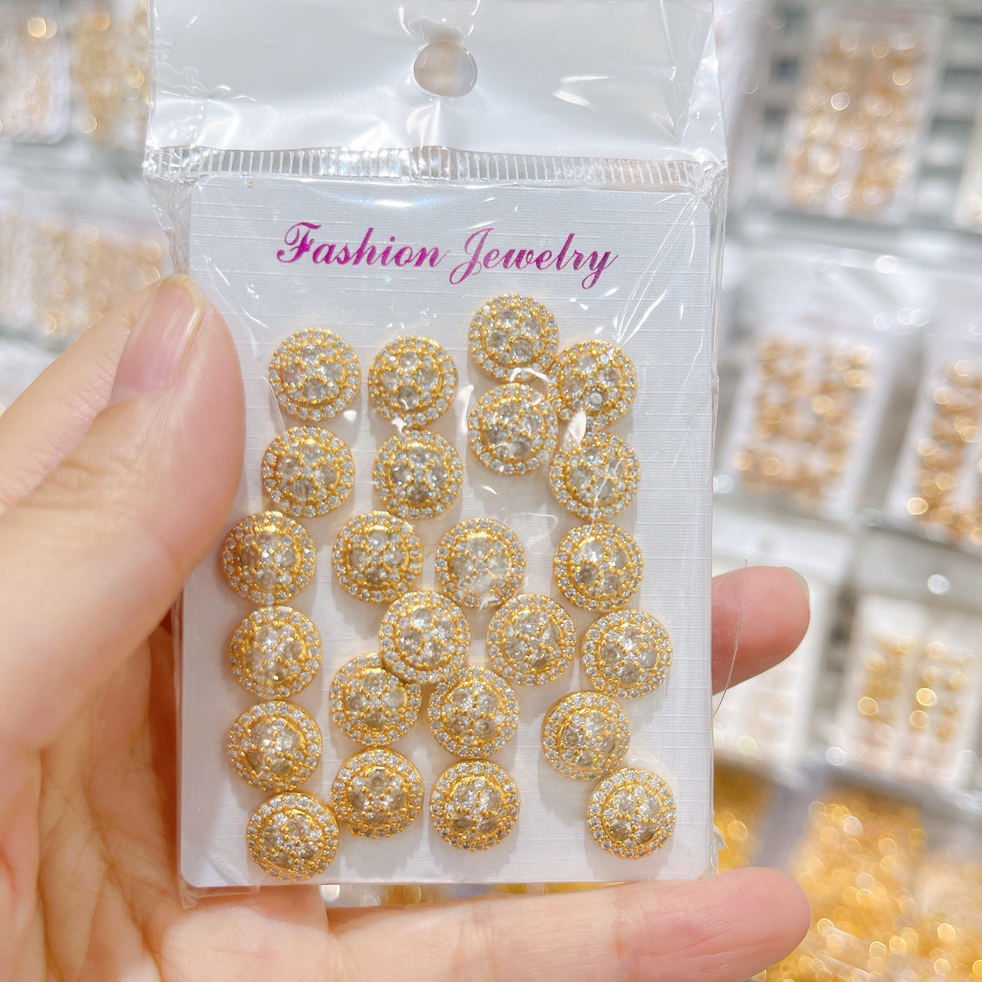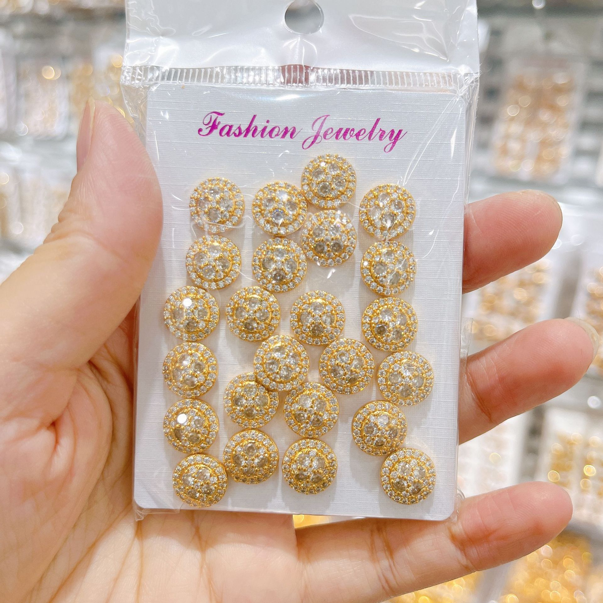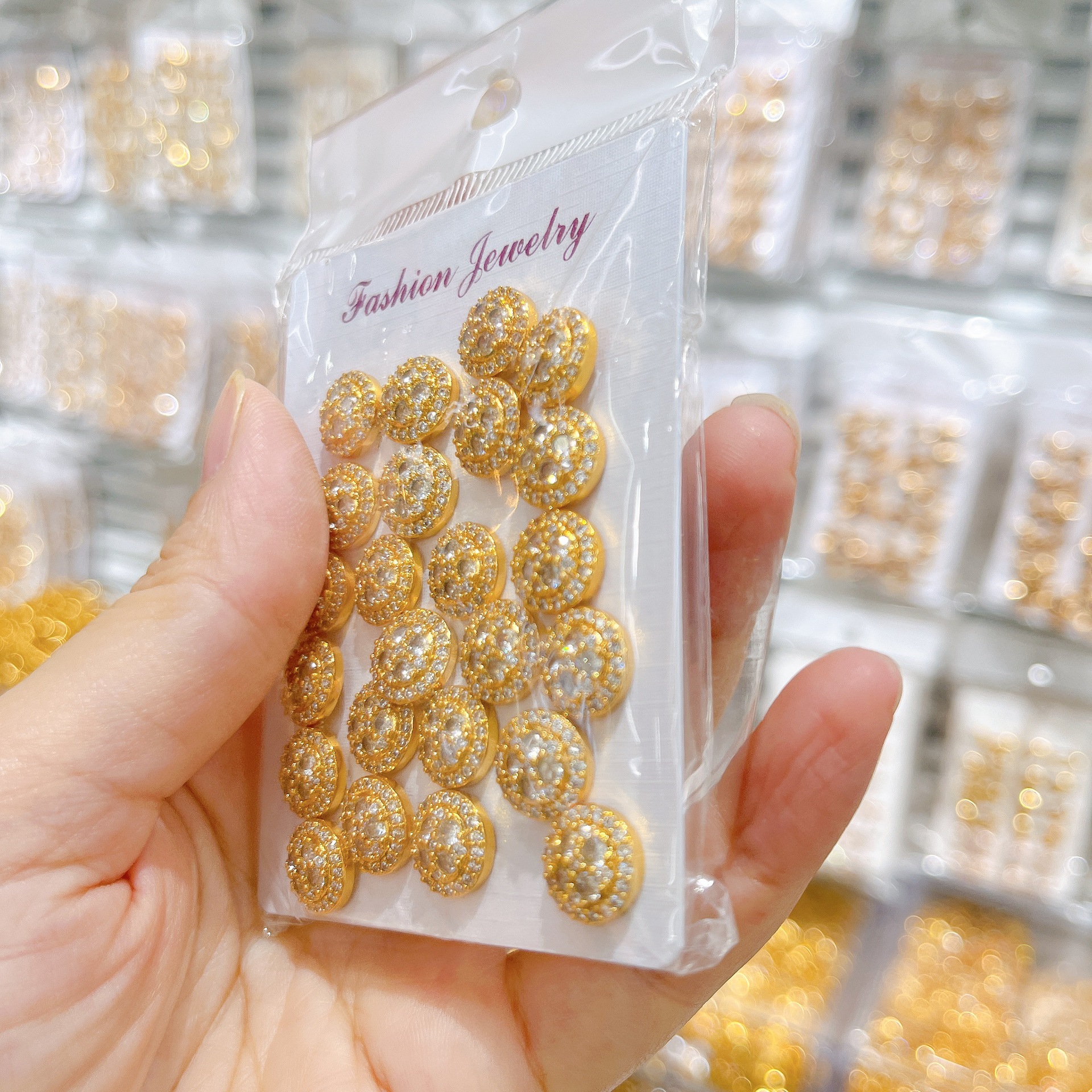 跨境耳钉耳环圆形钻锆石镶钻百搭气质高级感铜镀金金色耳饰