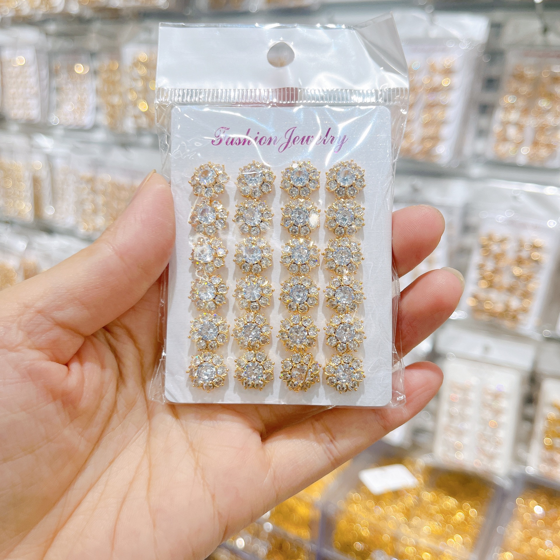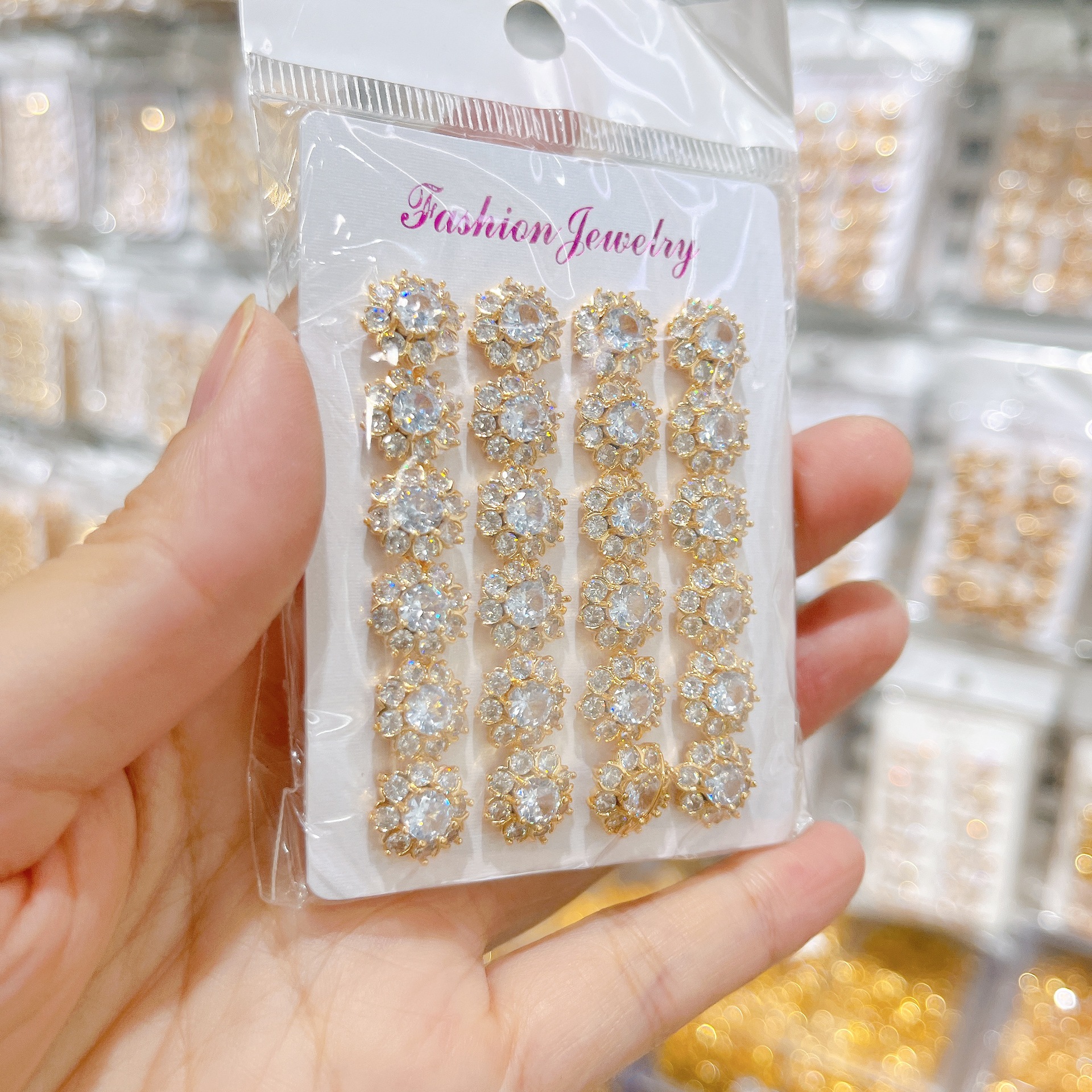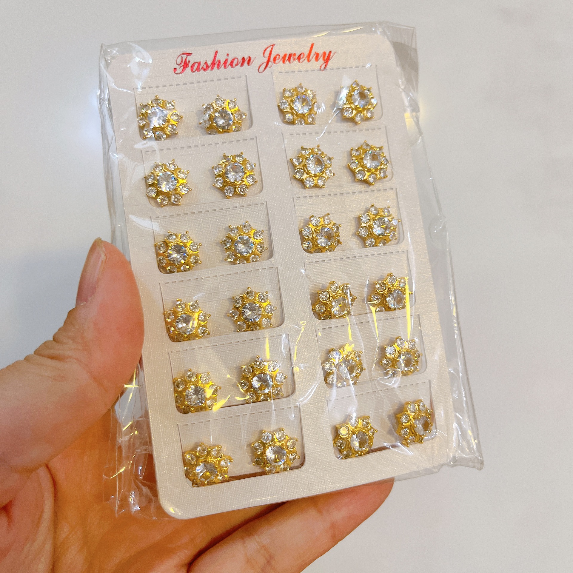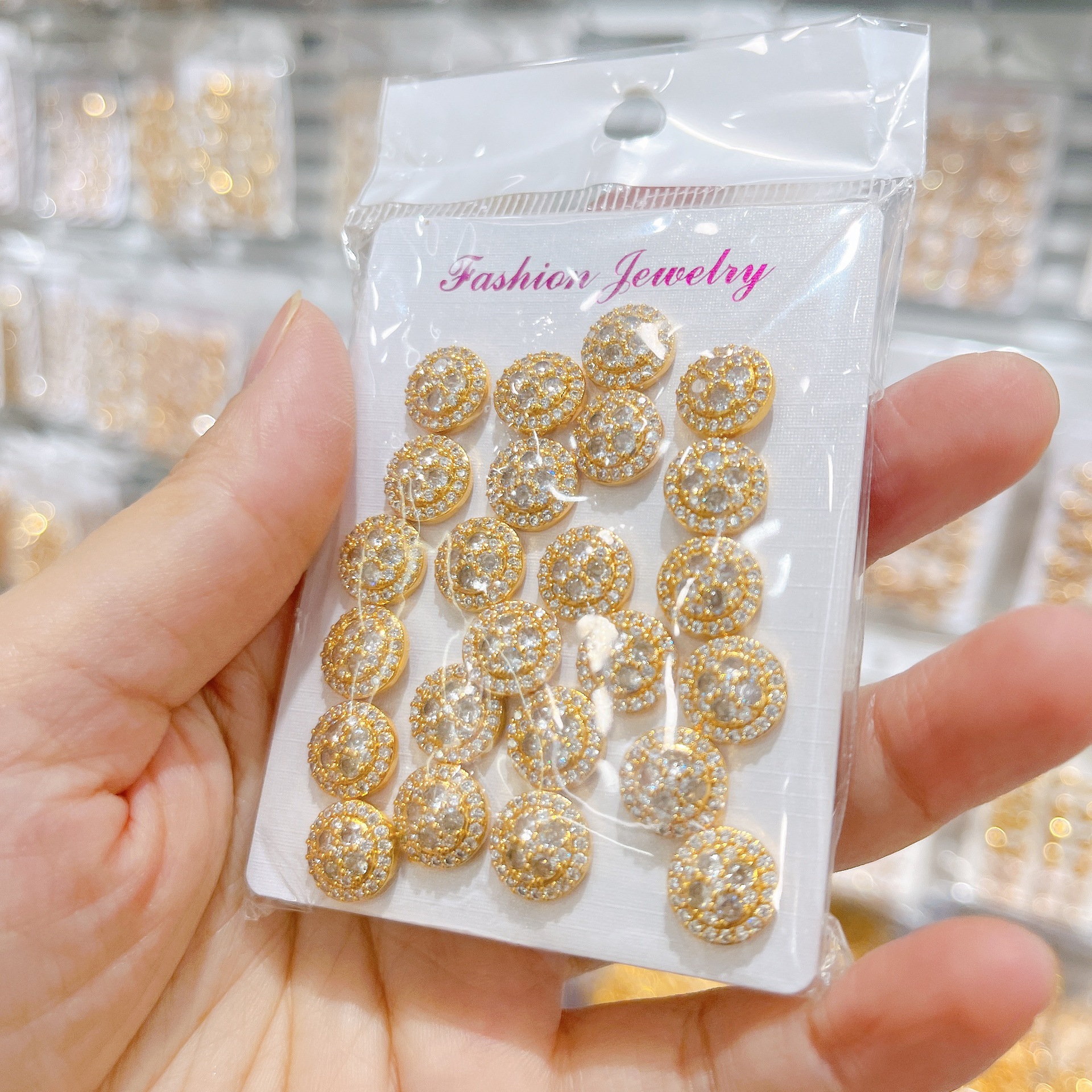 跨境耳钉耳环圆形钻锆石镶钻百搭气质高级感铜镀金金色耳饰