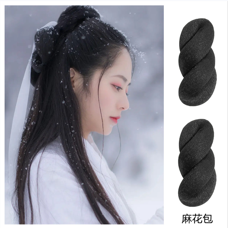 古装造型发包 假发发包 汉服垫发牛角包 古风cos麻花包假发