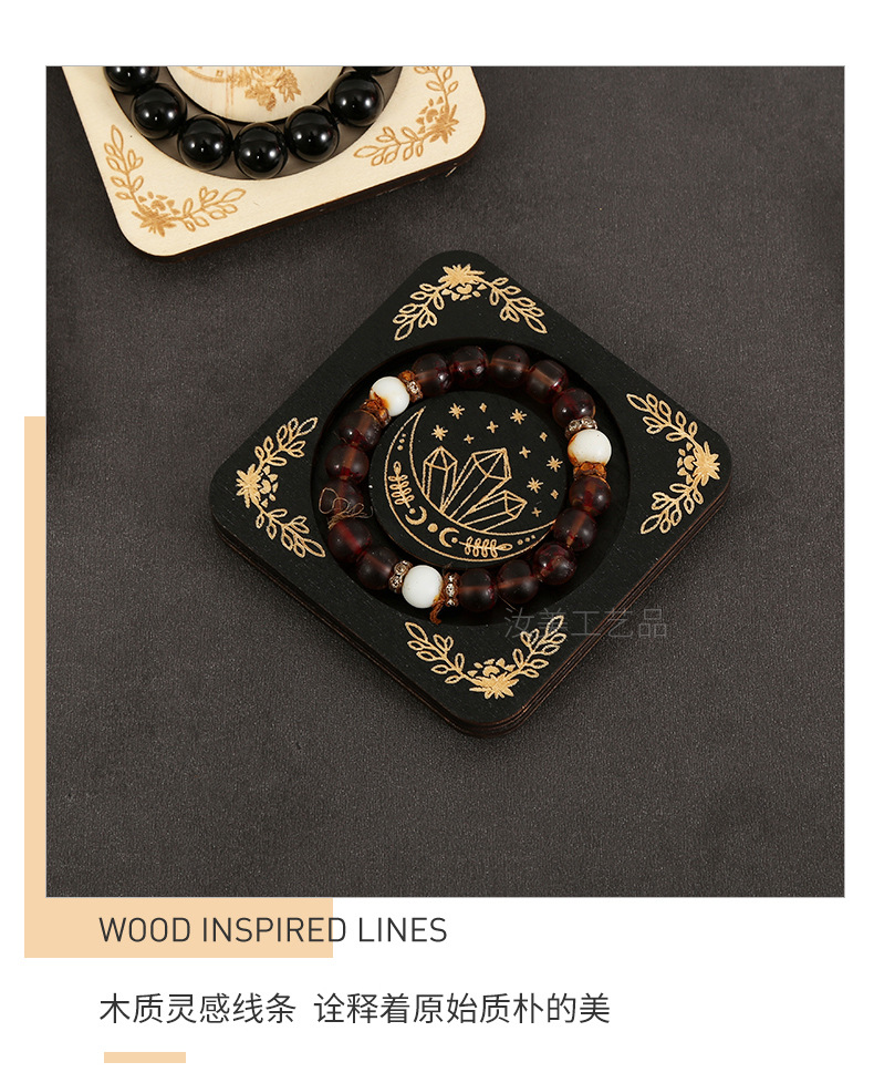 跨境木质串珠盘摆件创意美式装饰首饰展示架圆形手串盘木制工艺品