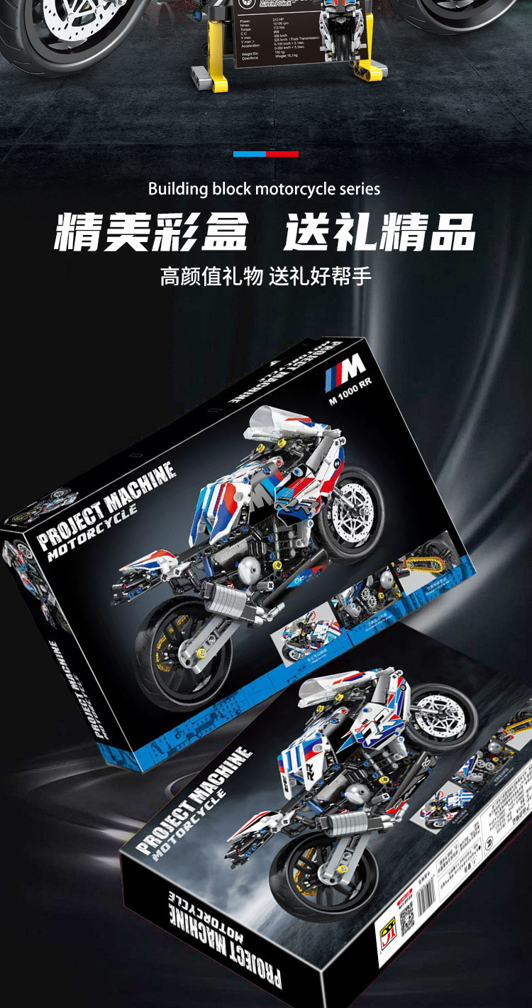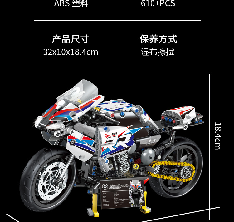 跨境兼容乐高积木宝马M1000RR摩托车机械模型男益智拼装玩具批发