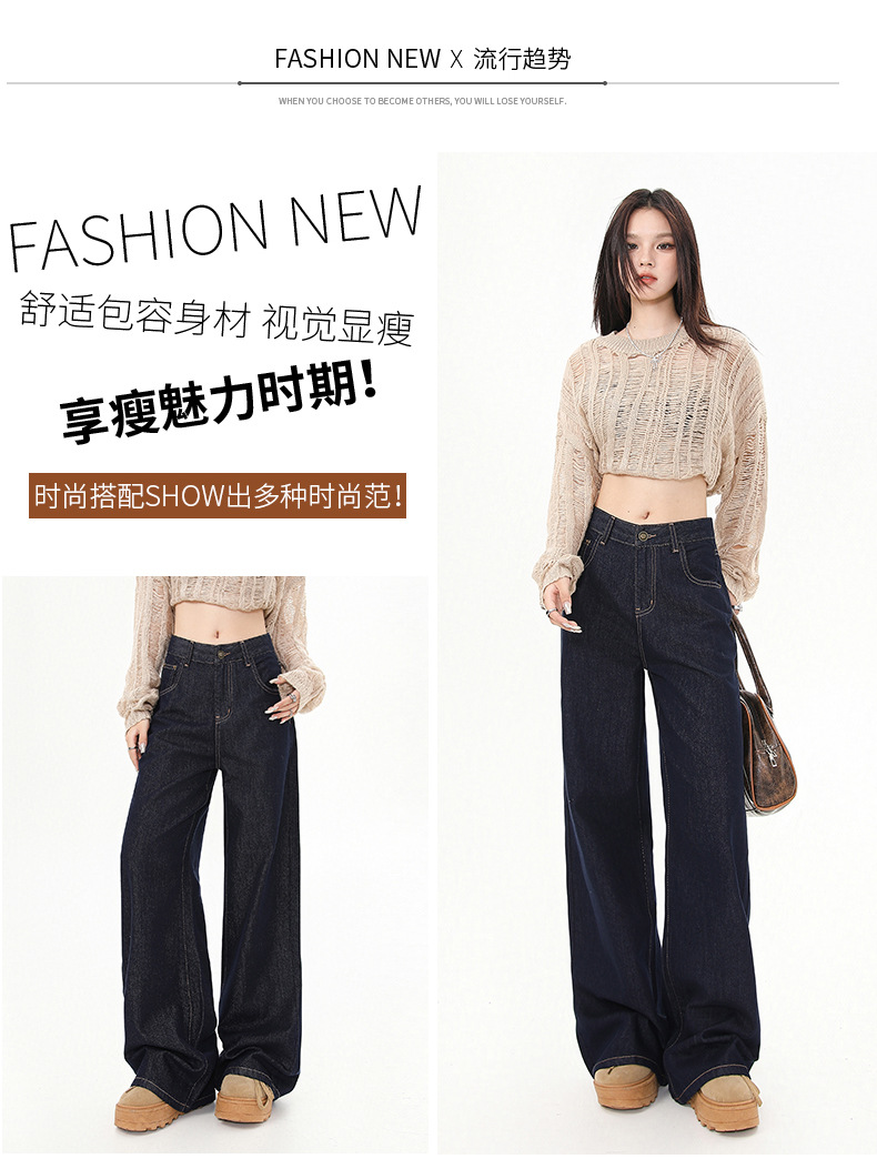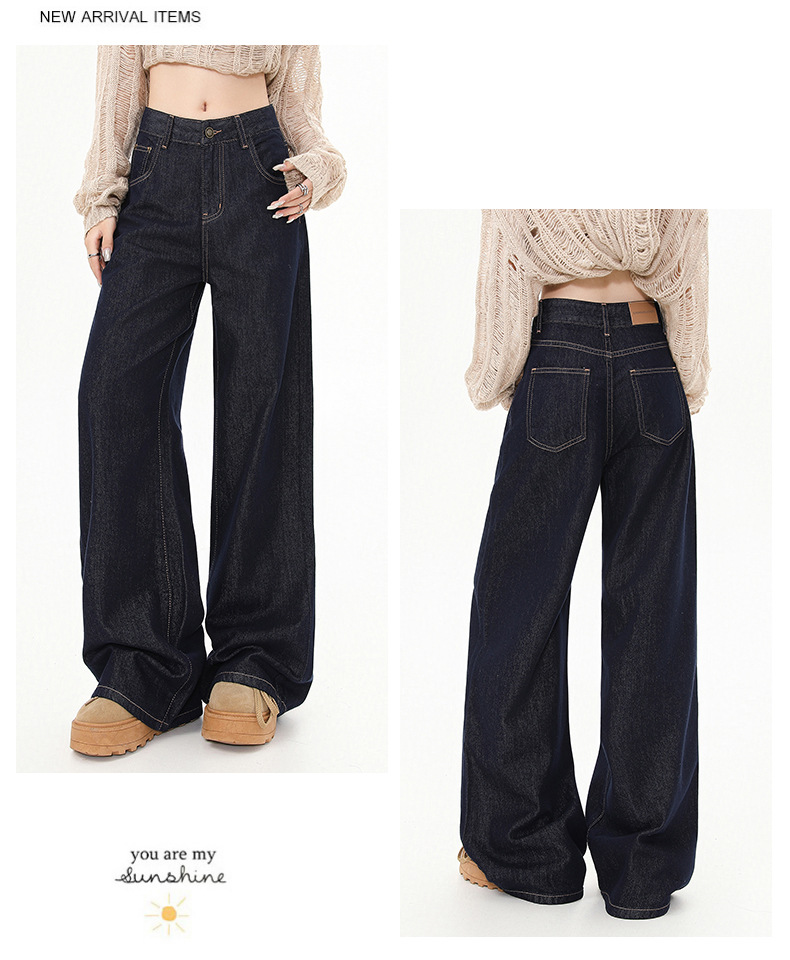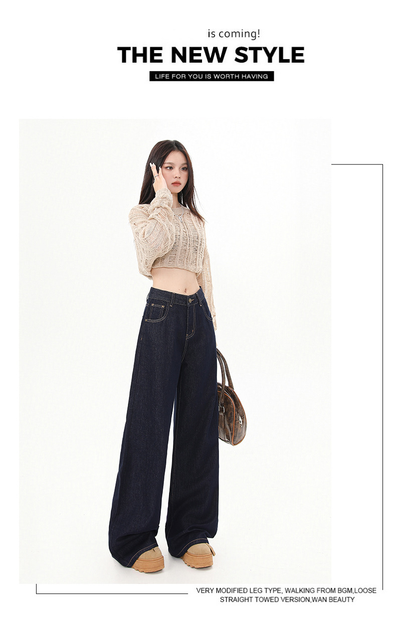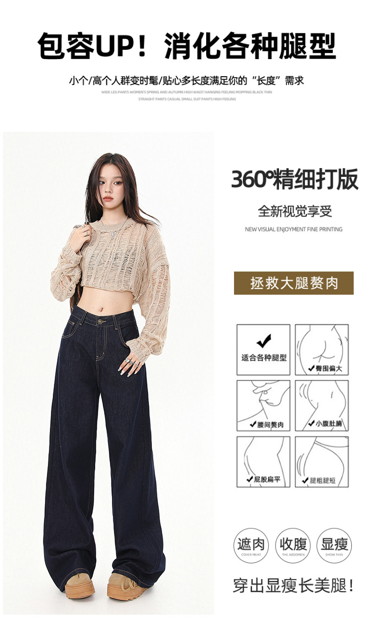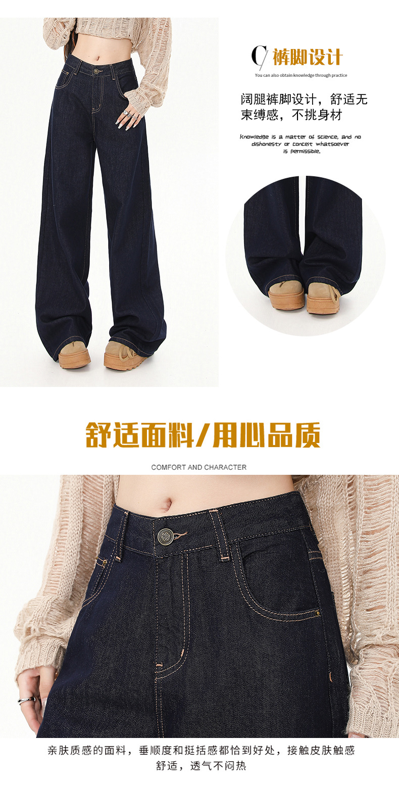 防掉色牛仔裤女丹宁色垂感2024秋新款宽松阔腿裤原色百搭长裤