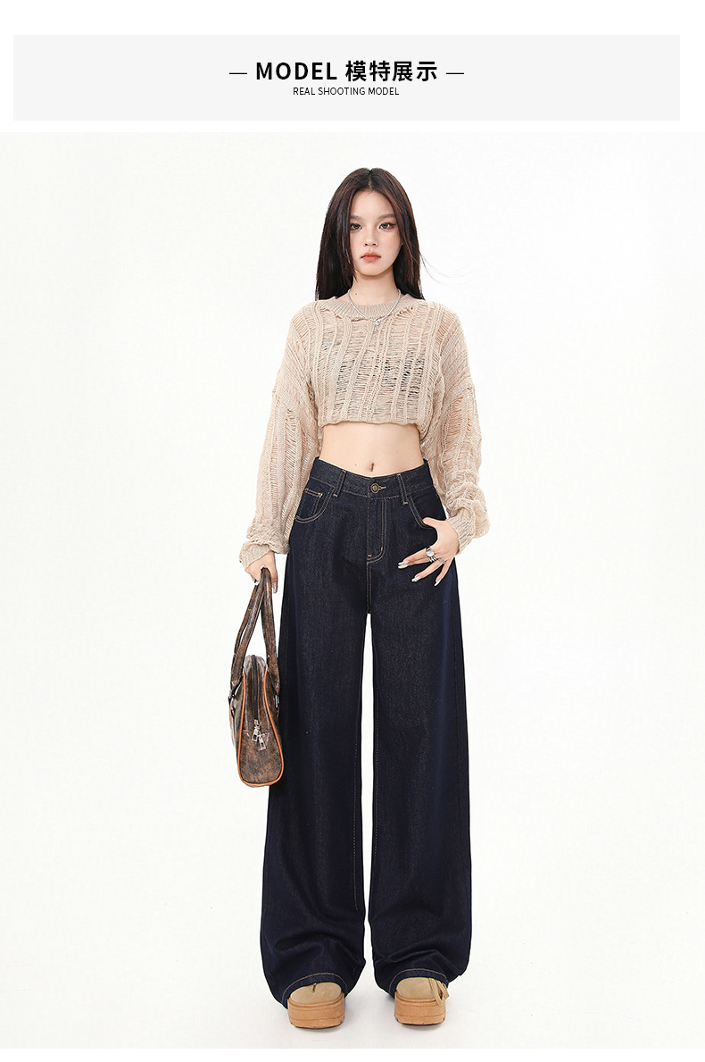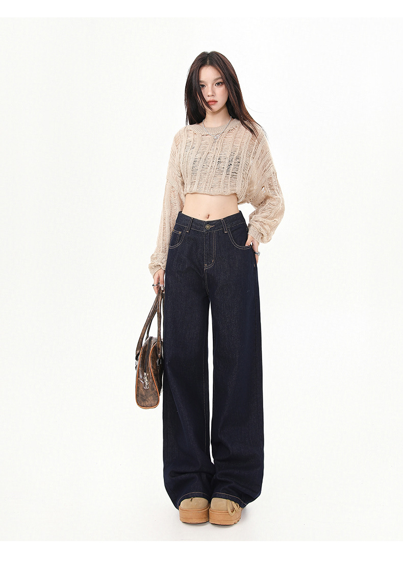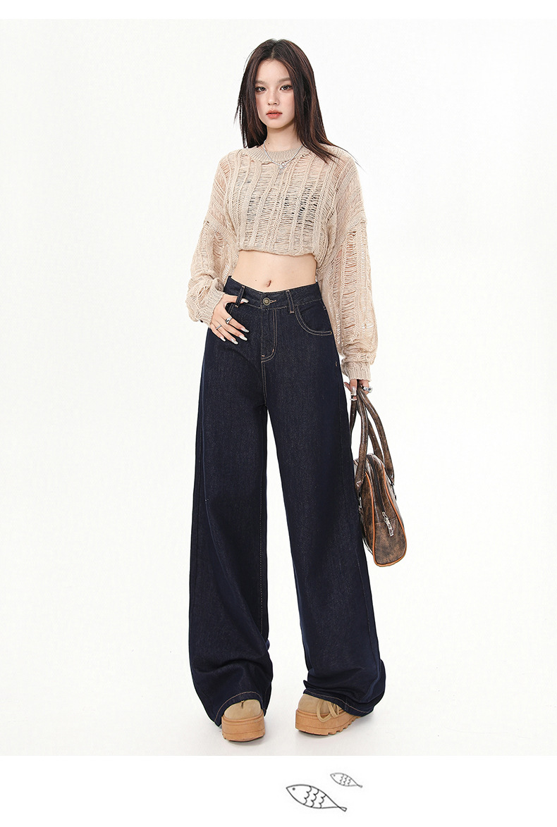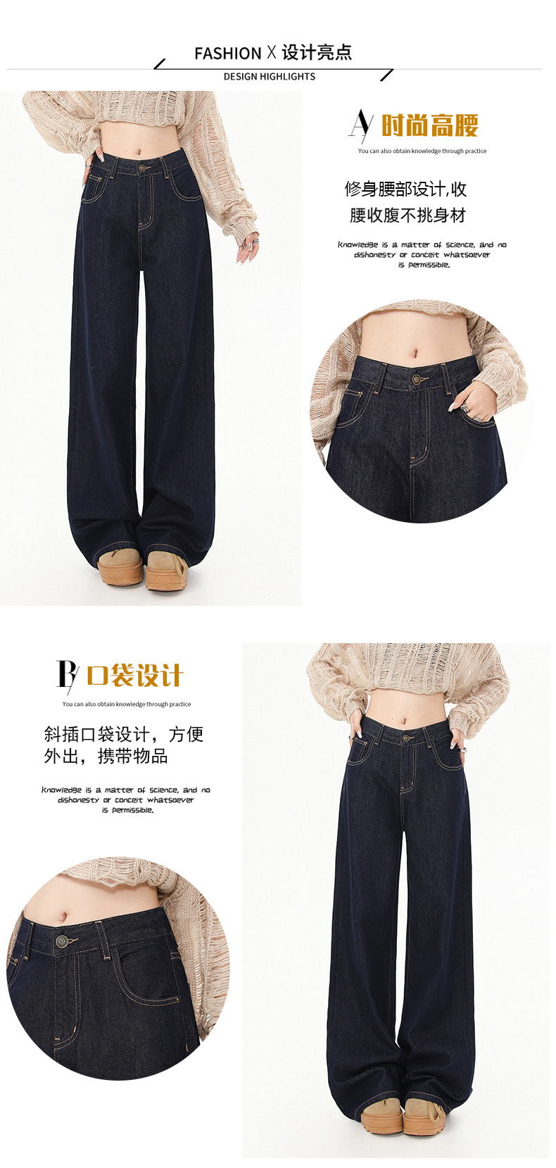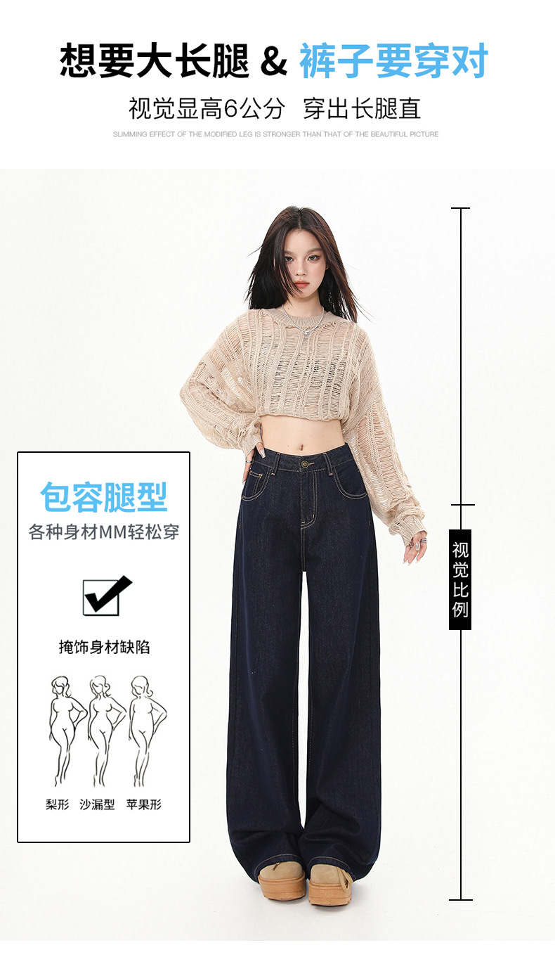 防掉色牛仔裤女丹宁色垂感2024秋新款宽松阔腿裤原色百搭长裤