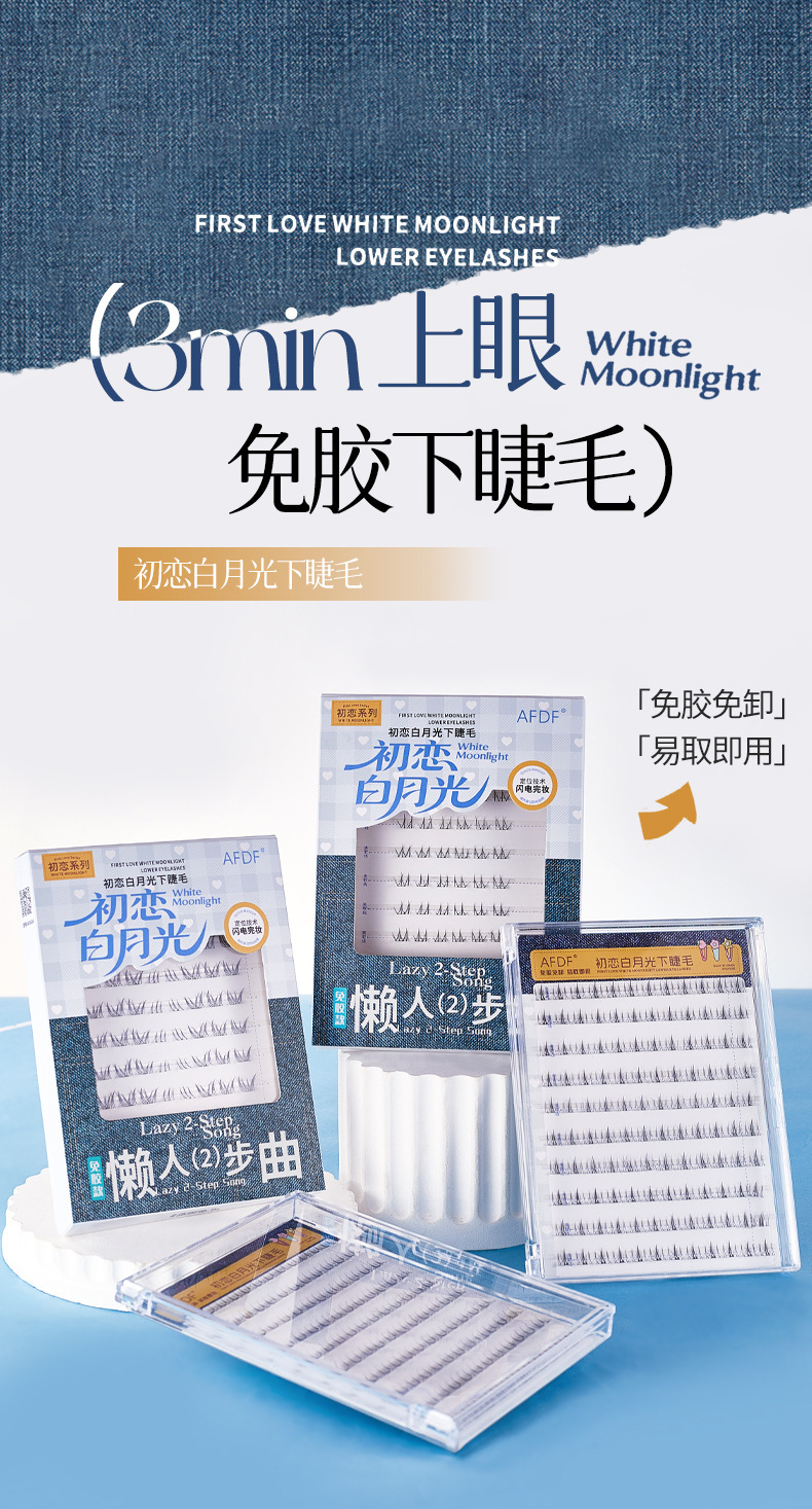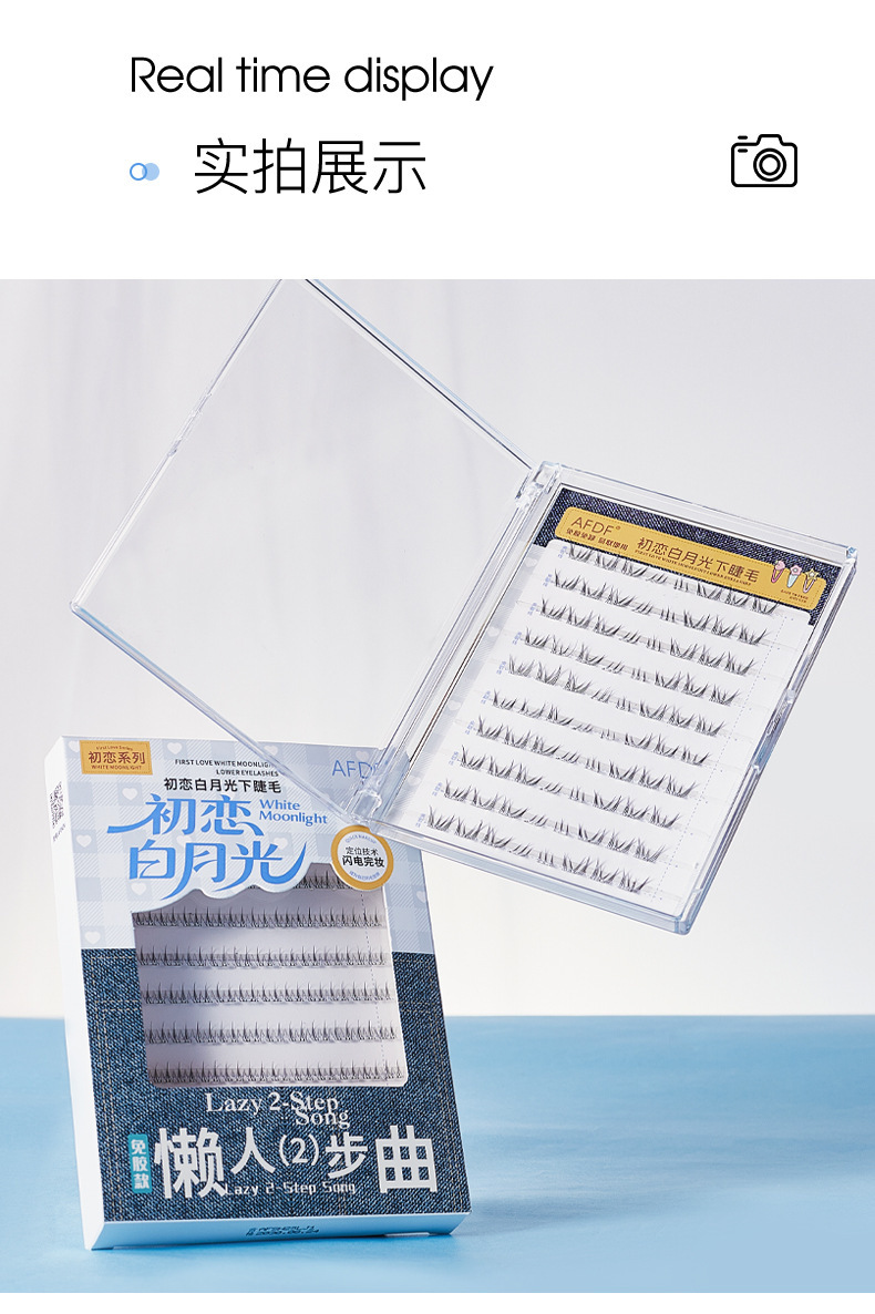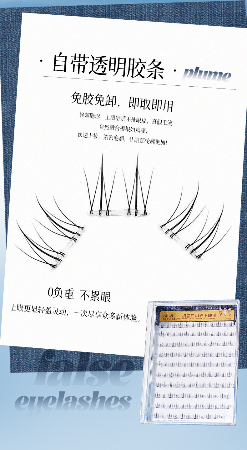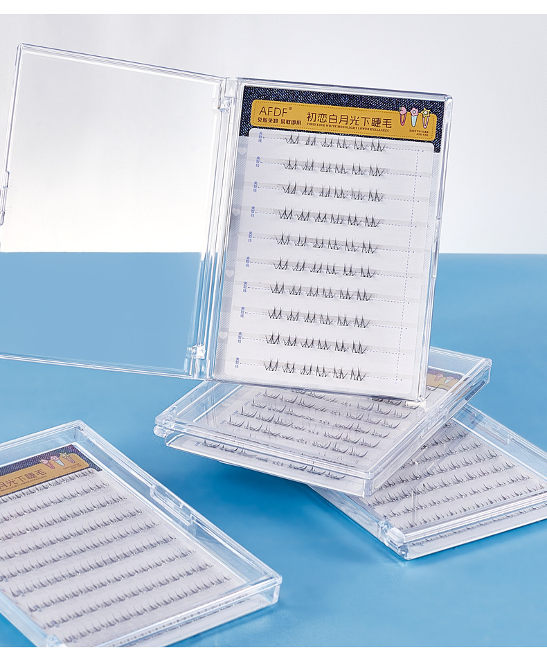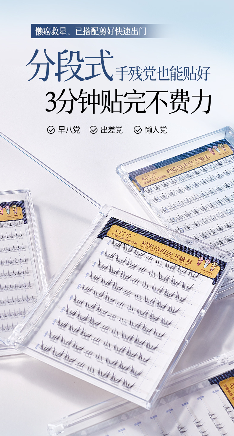 AFDF白月光下睫毛免胶假睫毛懒人自然仿真透明梗分段式自粘假睫毛