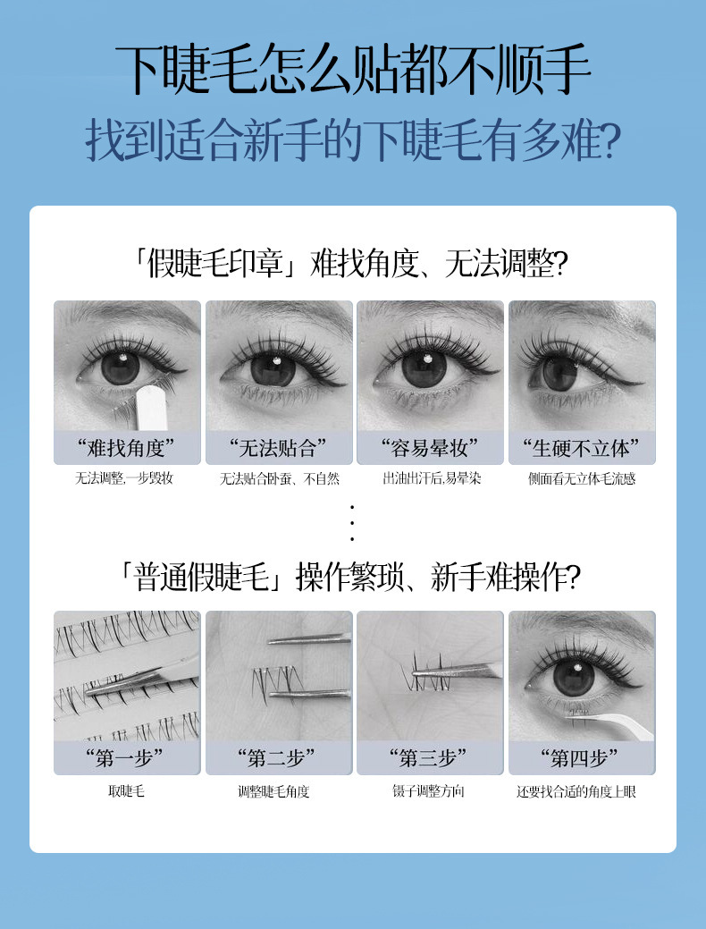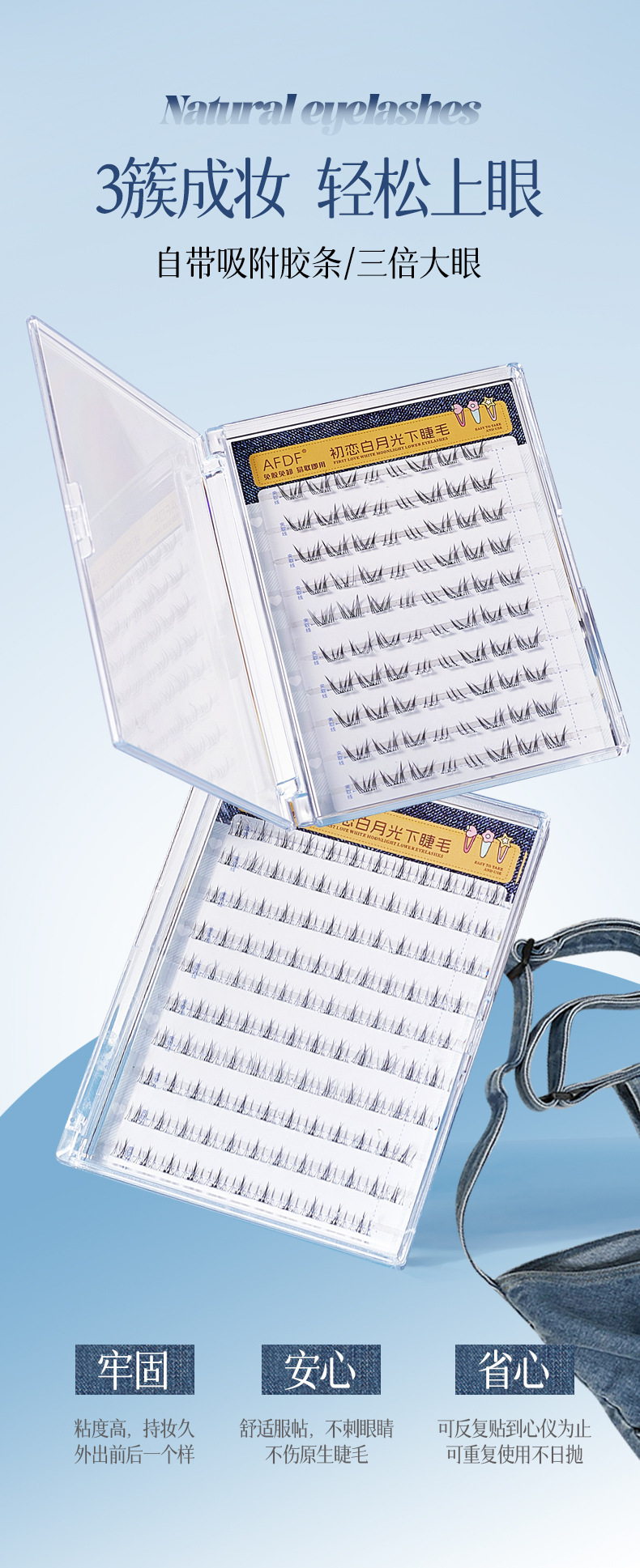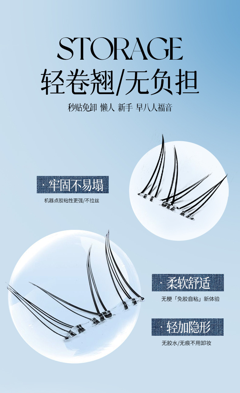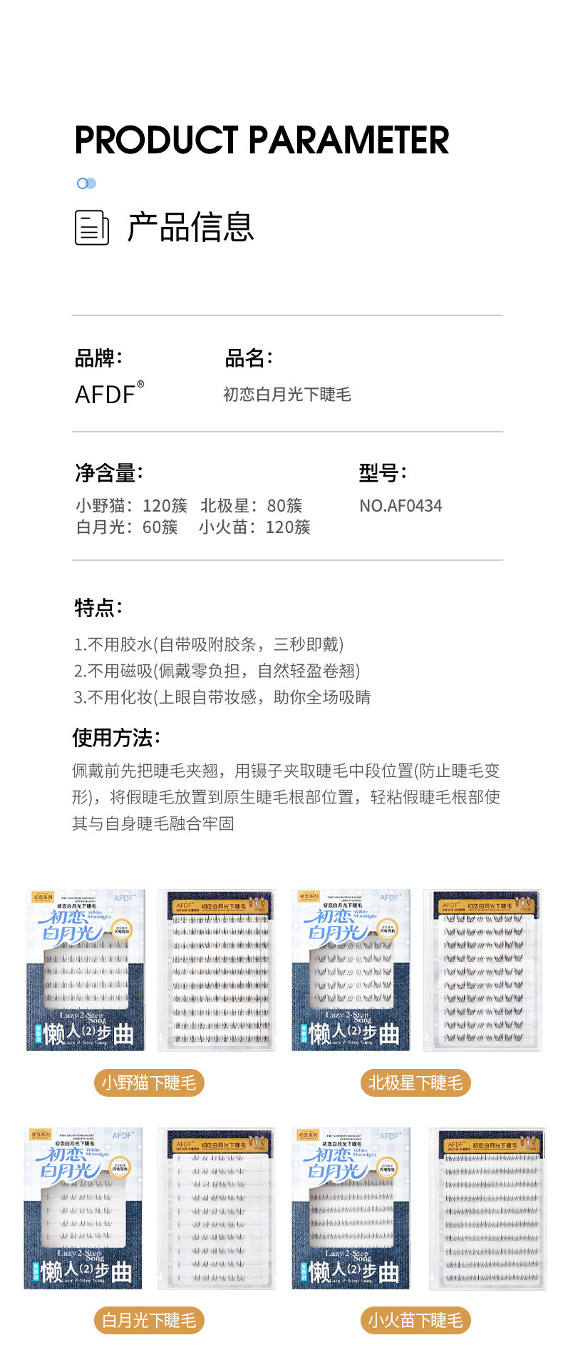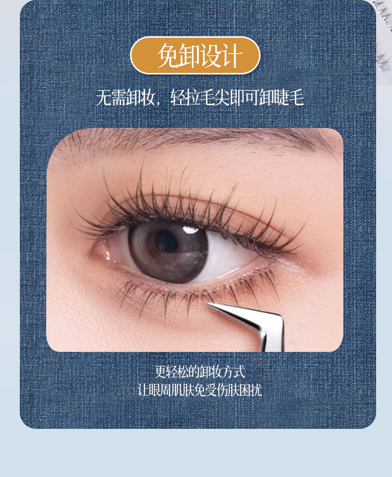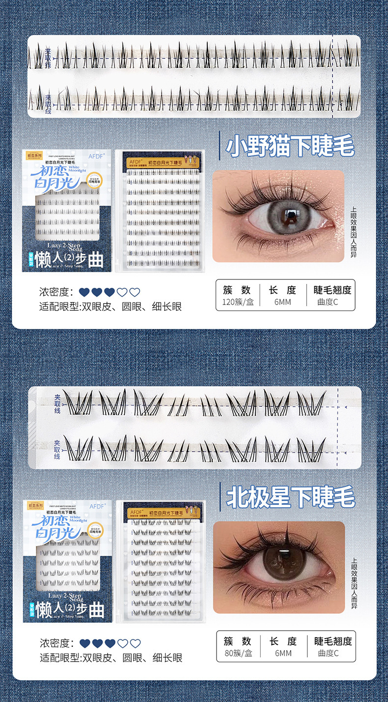 AFDF白月光下睫毛免胶假睫毛懒人自然仿真透明梗分段式自粘假睫毛