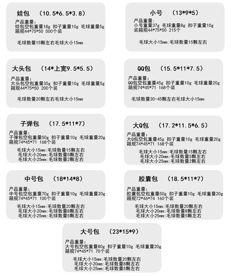 | capsule bag (buckle + ball)(胶囊包(扣+球)) | USD $1.54 | 99891 piece available |