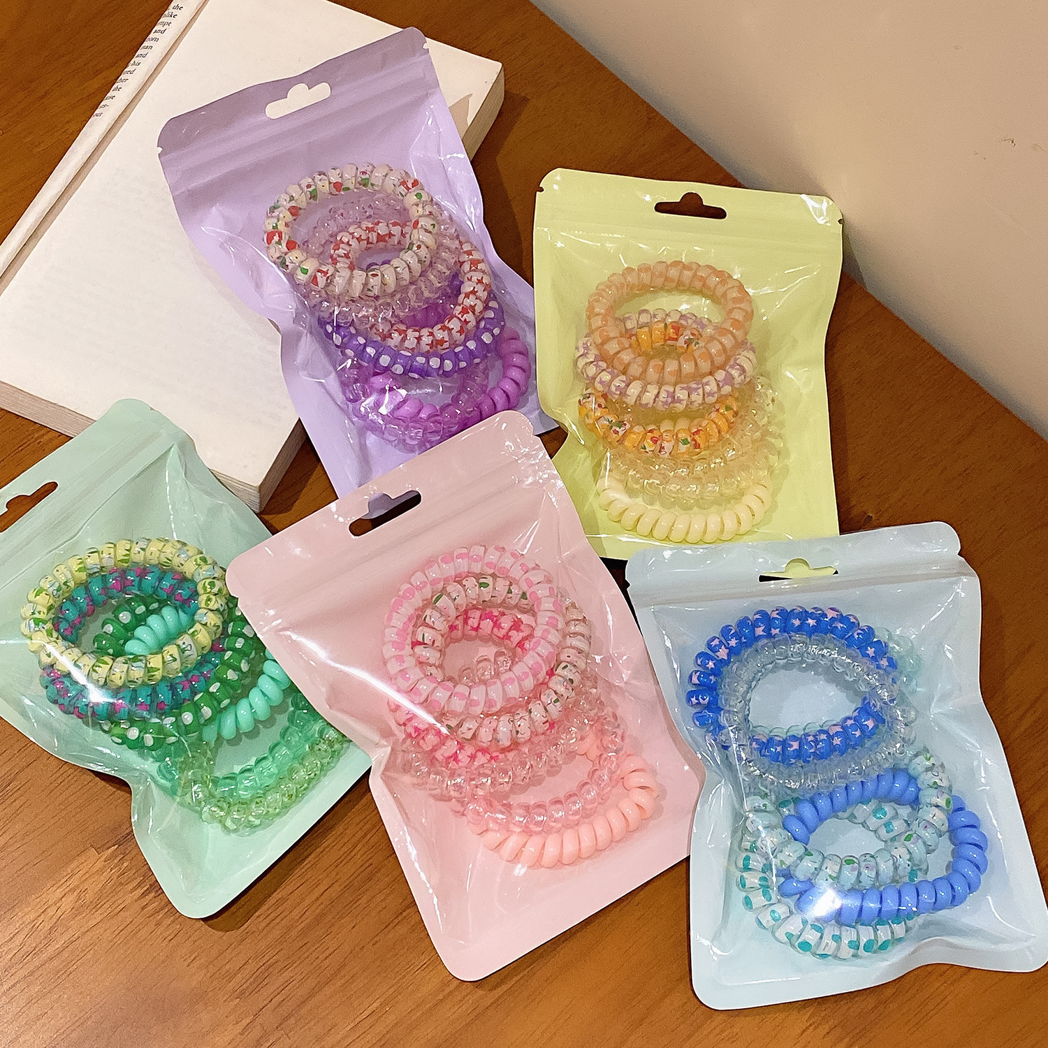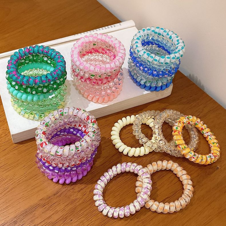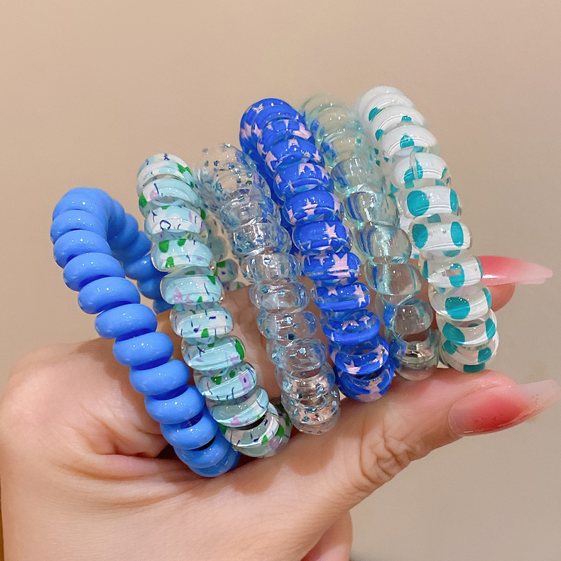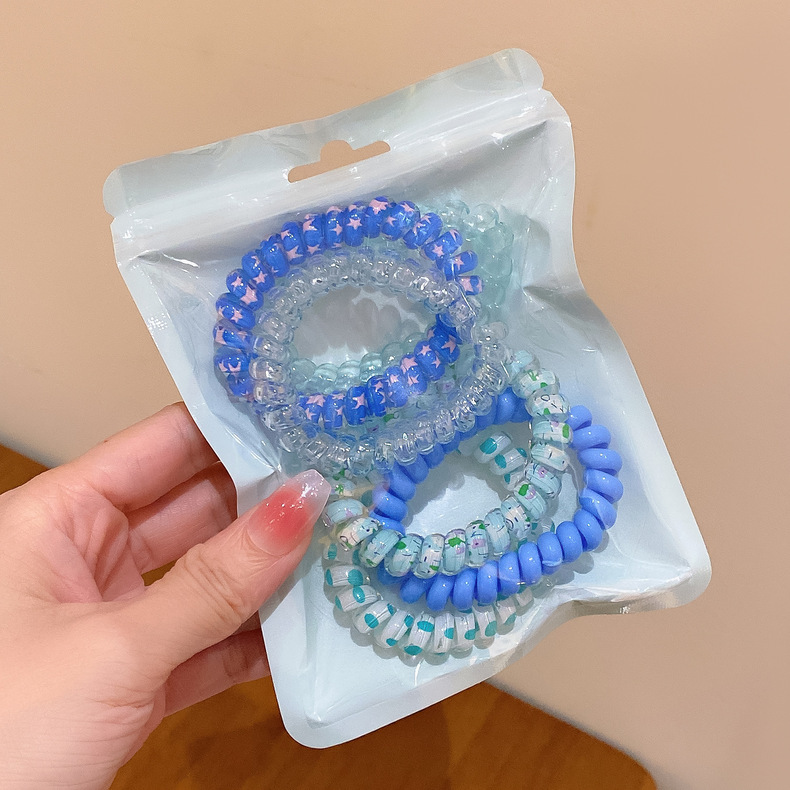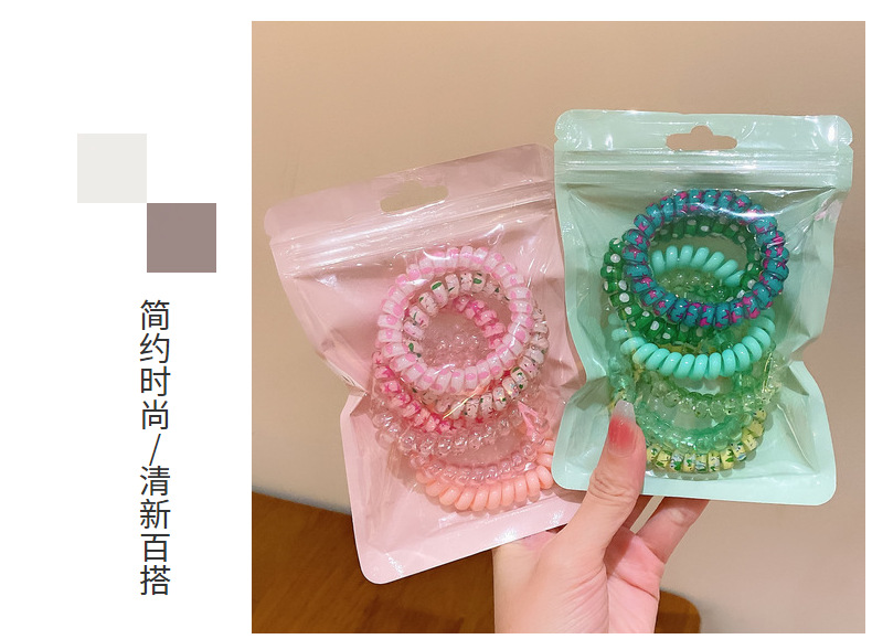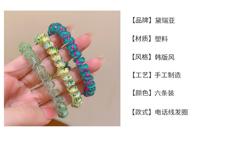 扎头发皮筋女韩版糖果色发绳发饰批发6条装~简约电话线发圈头绳
