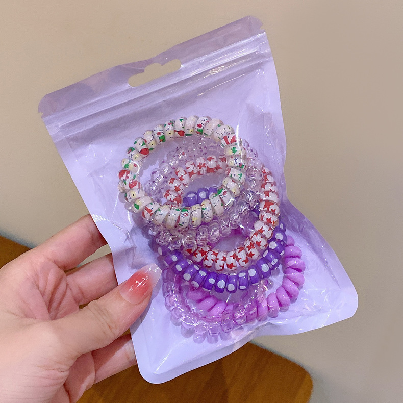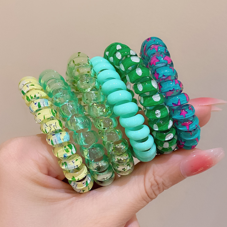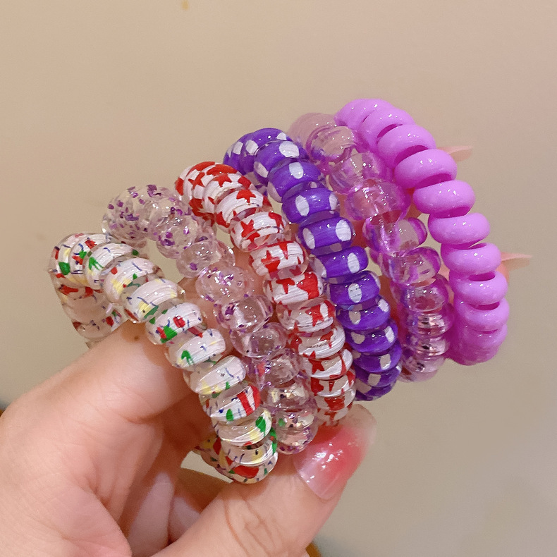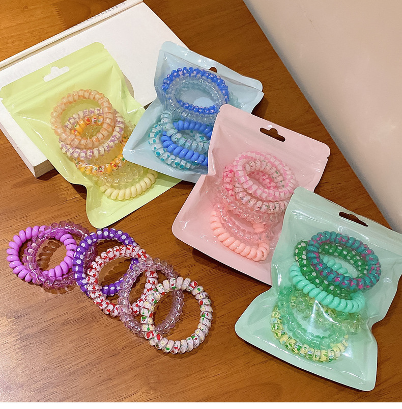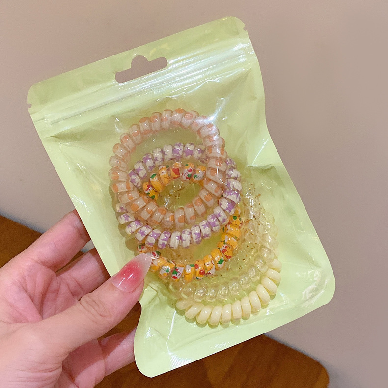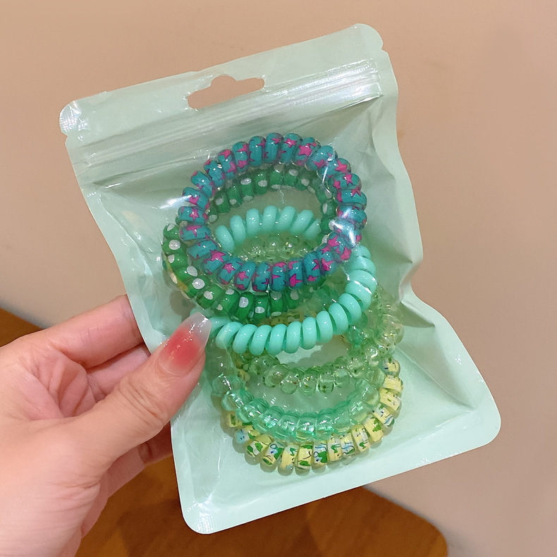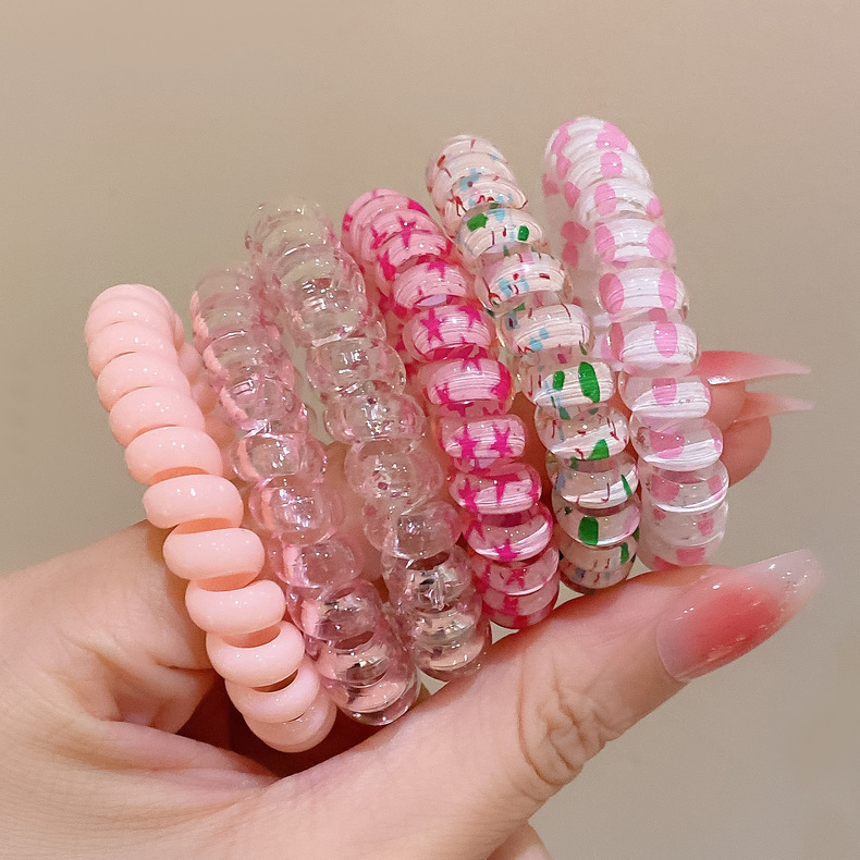 扎头发皮筋女韩版糖果色发绳发饰批发6条装~简约电话线发圈头绳