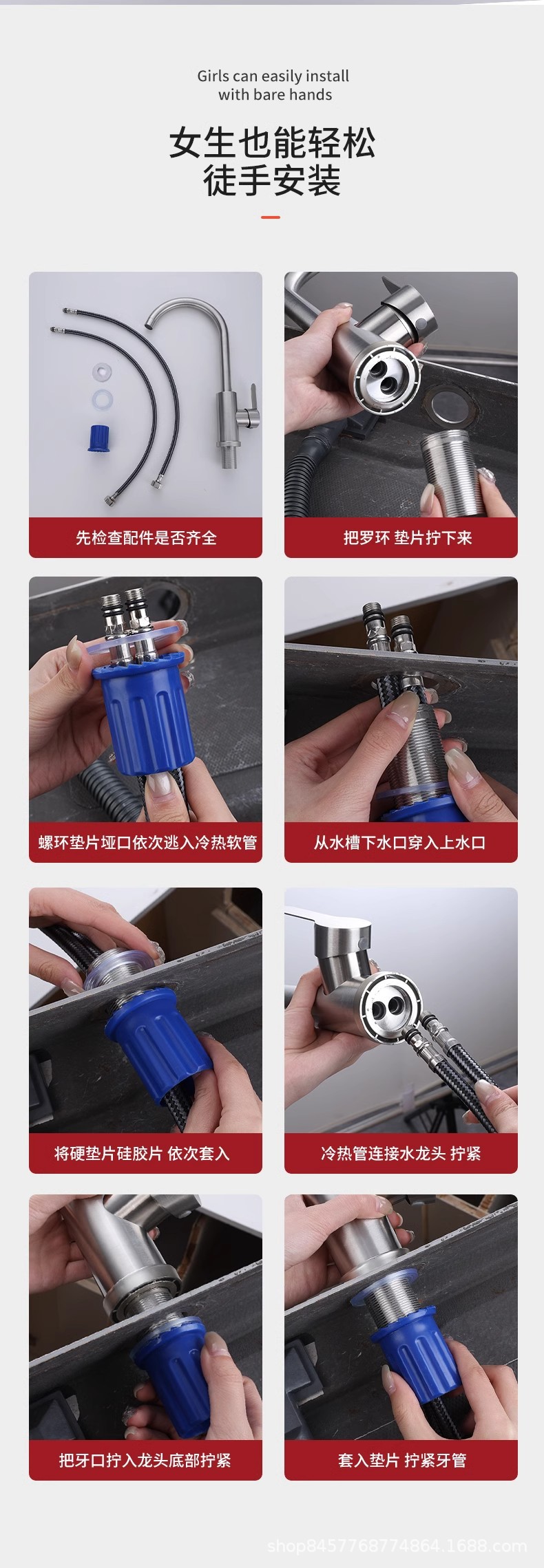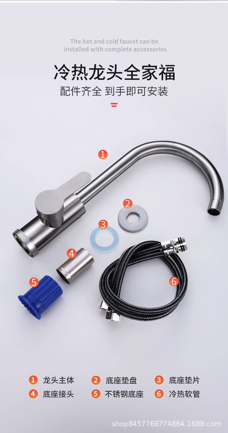 不锈钢厨房水龙头冷热水款家用防溅水二合一洗菜盆单冷洗手池洗碗