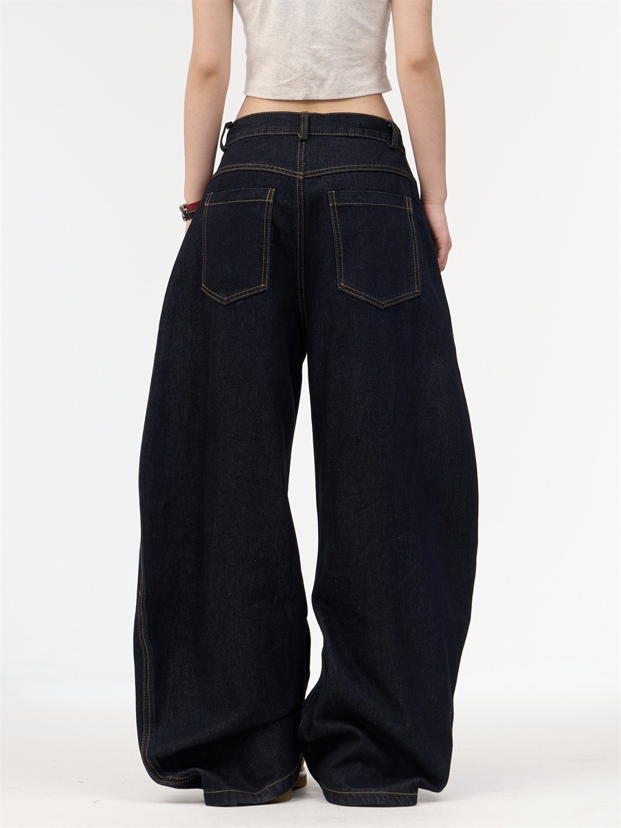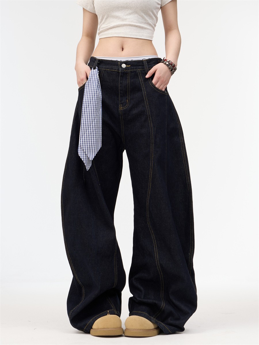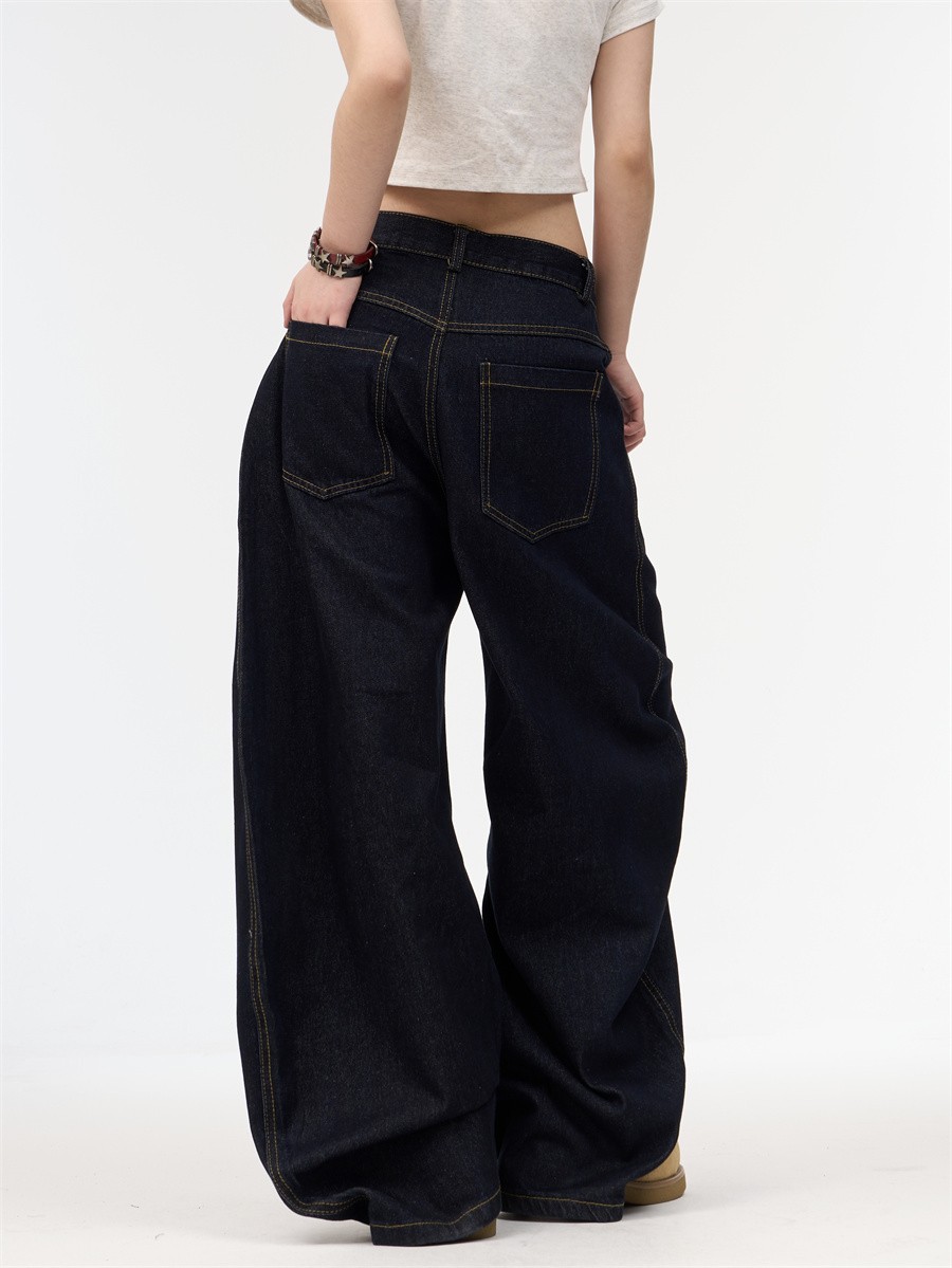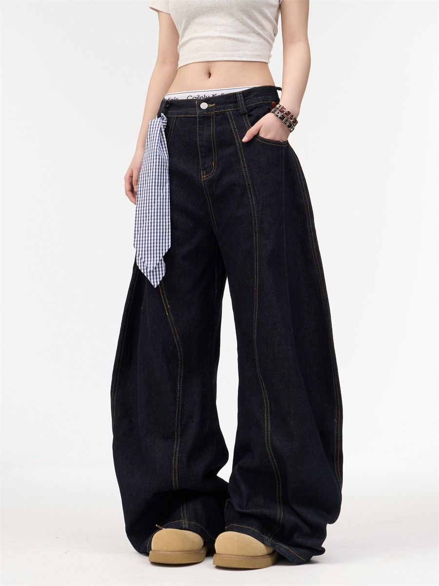 美式复古原色水洗弯刀牛仔裤男女新款宽松阔腿设计感小众休闲长裤