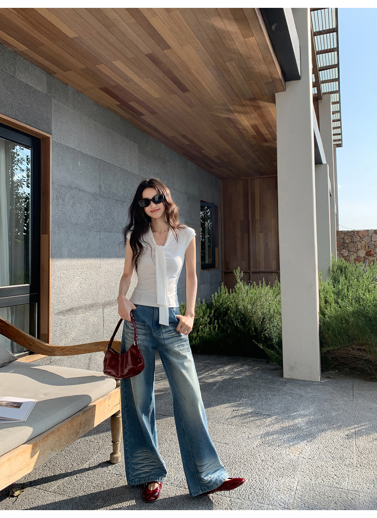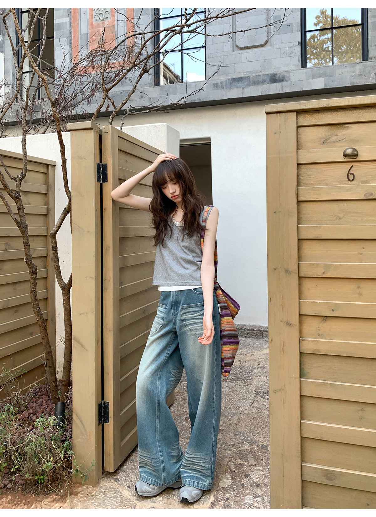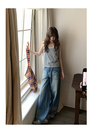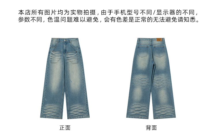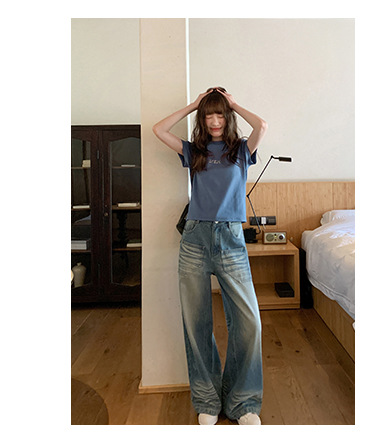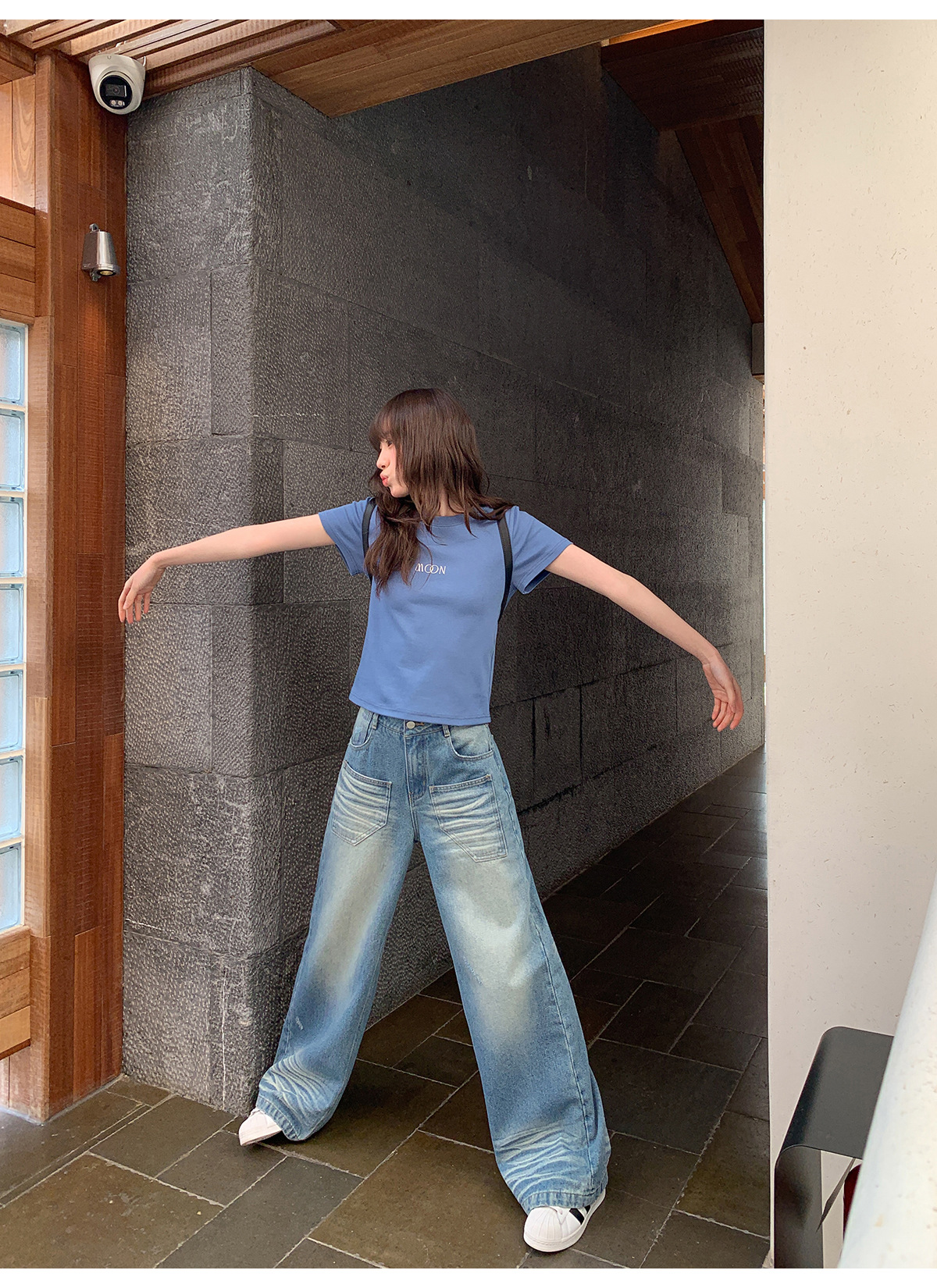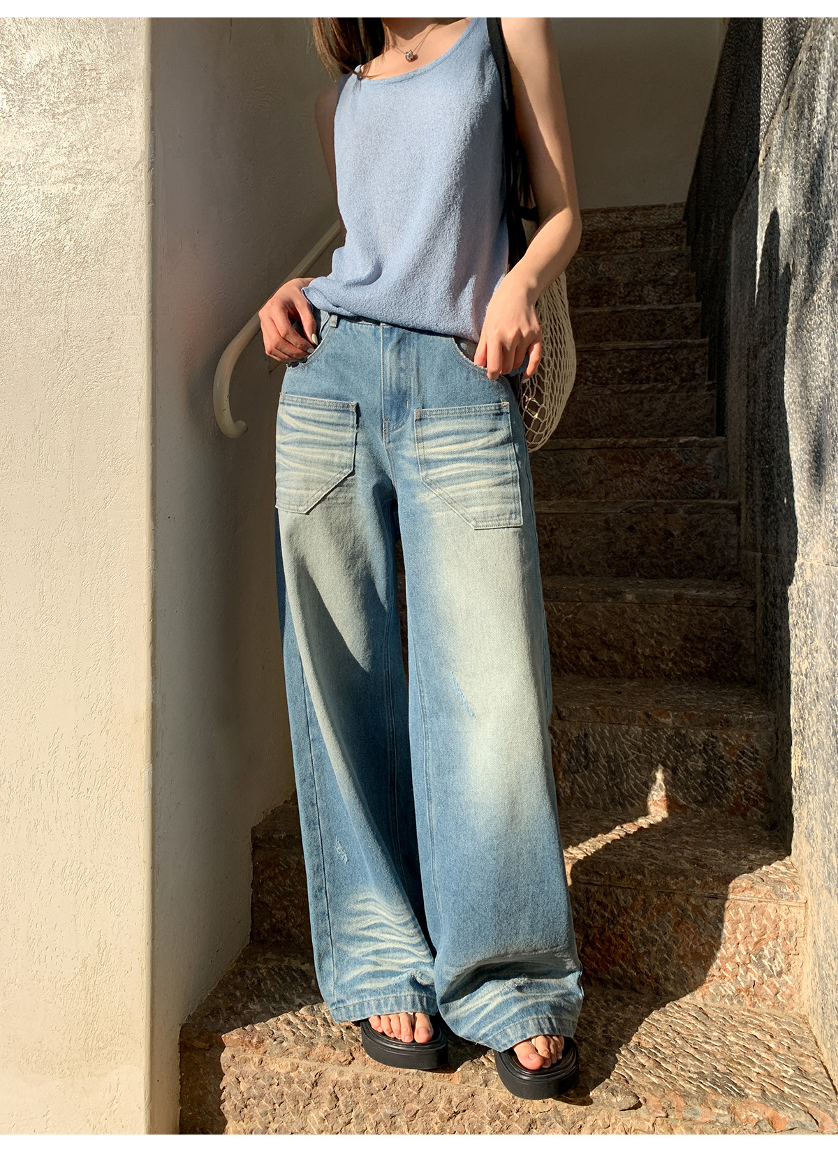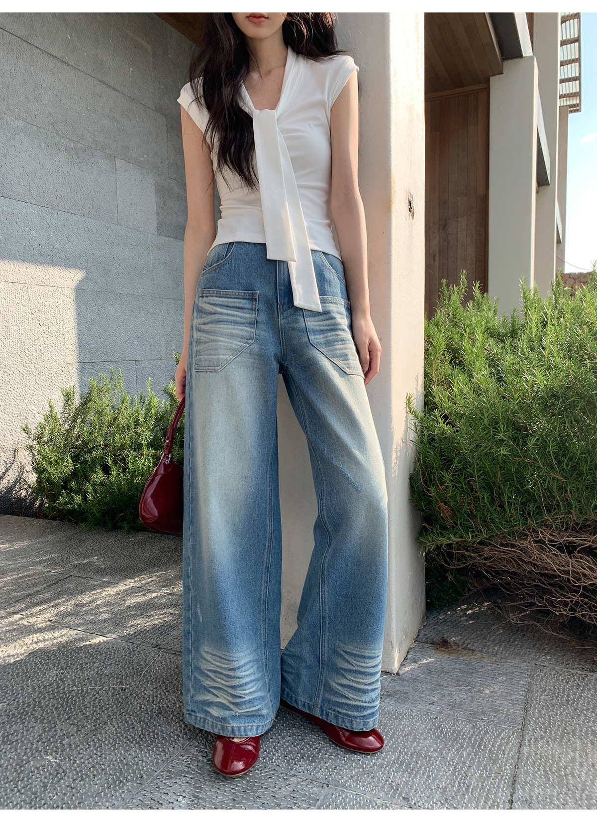 美式复古阔腿牛仔裤女夏季新款高腰显瘦直筒拖地休闲裤