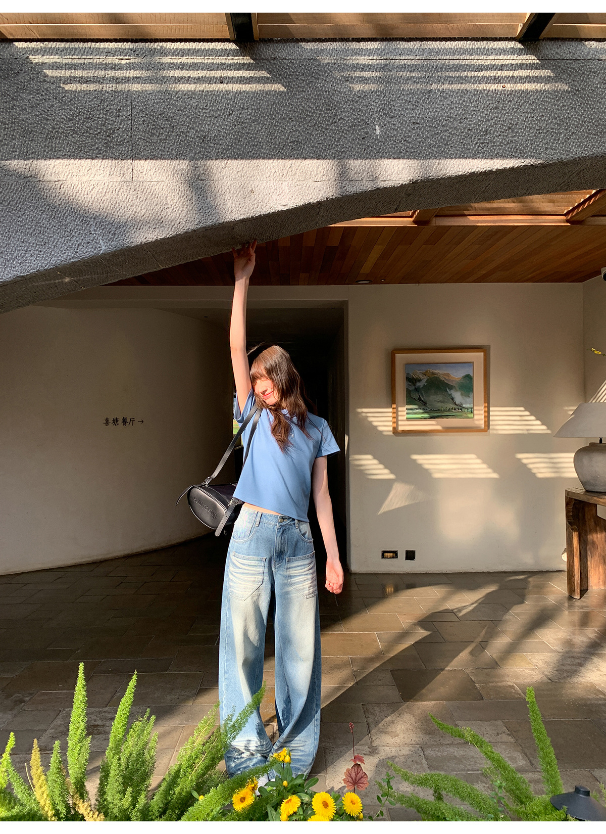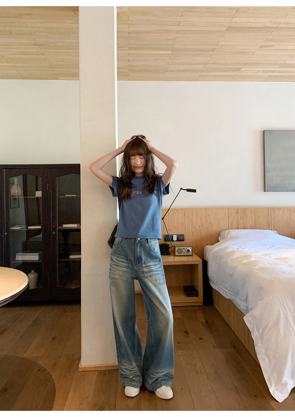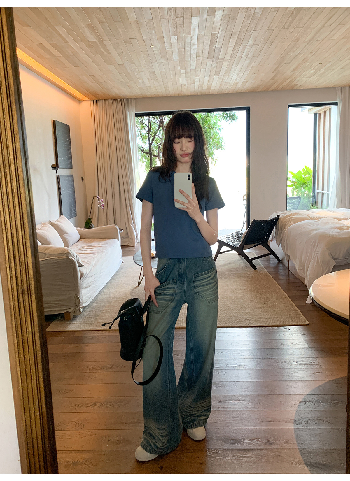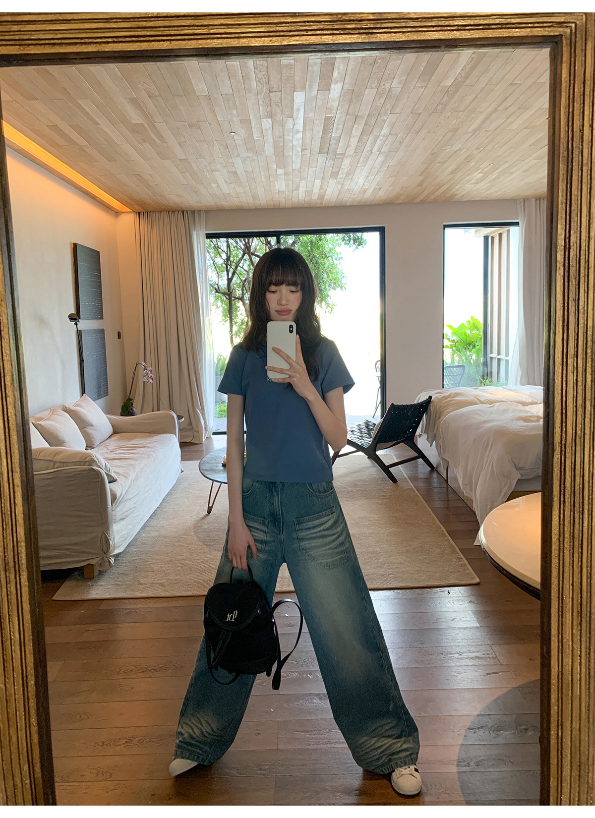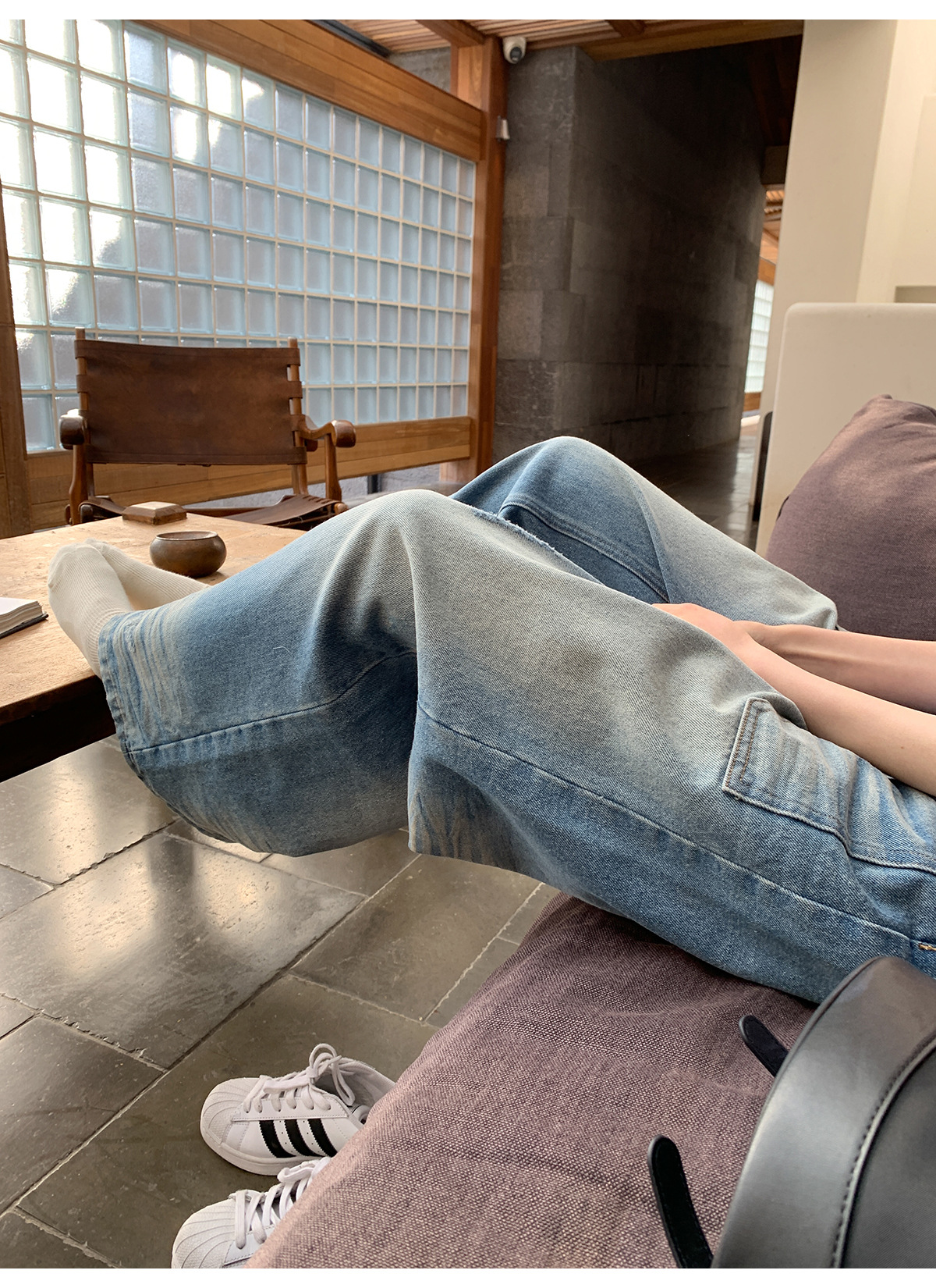 美式复古阔腿牛仔裤女夏季新款高腰显瘦直筒拖地休闲裤