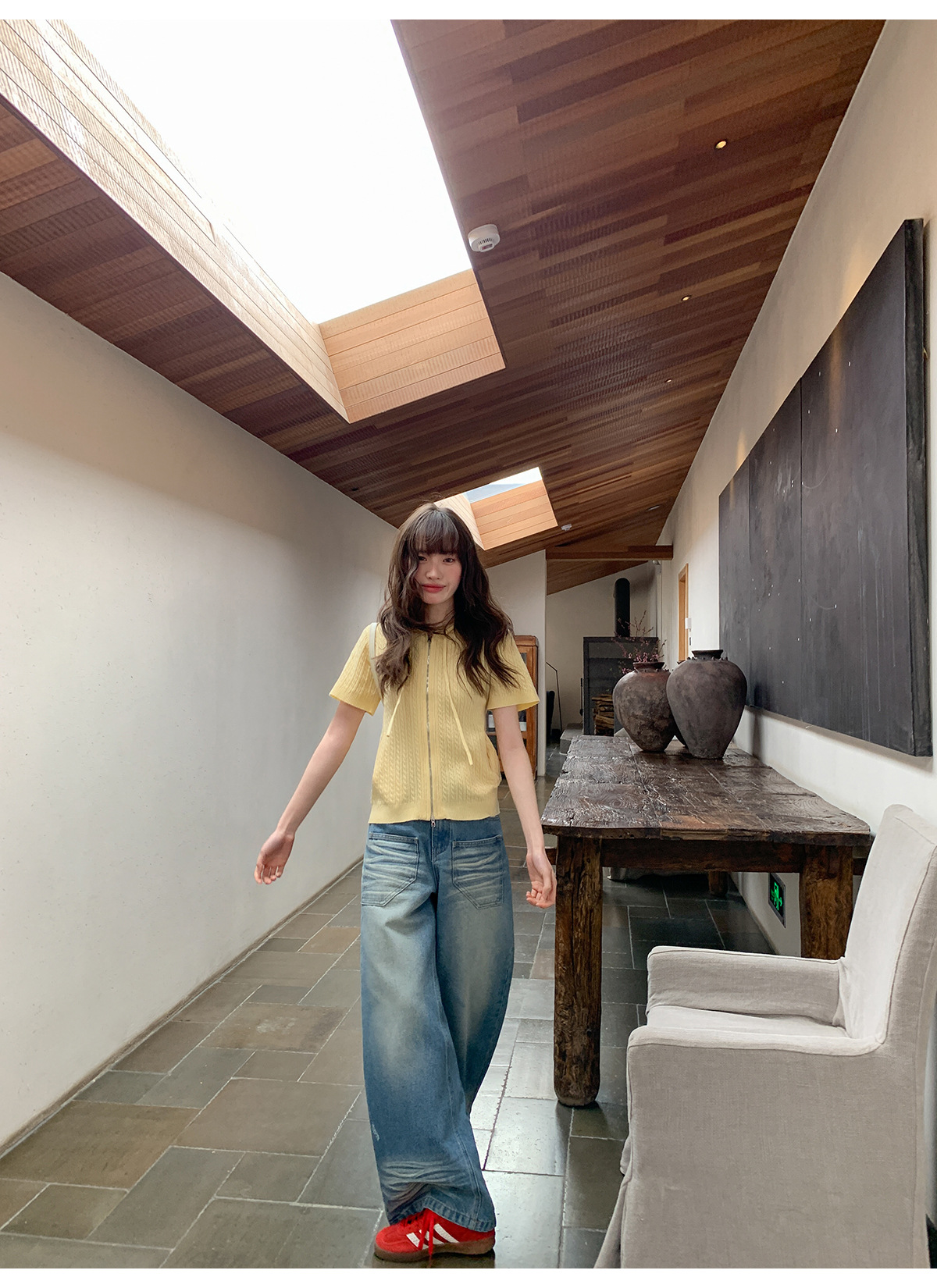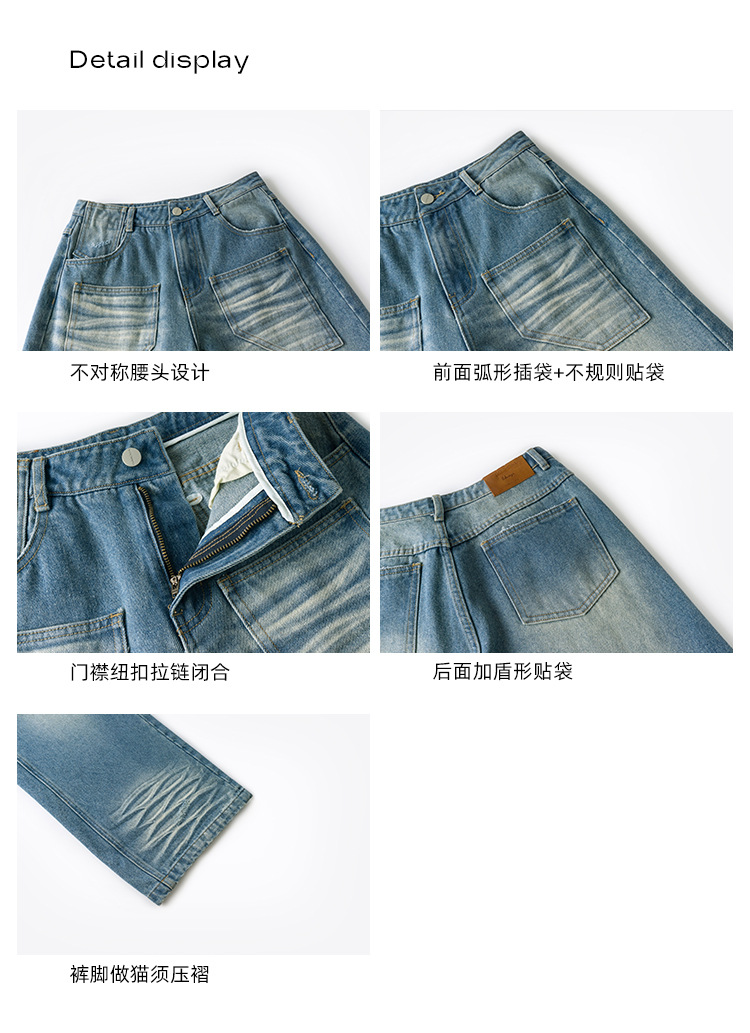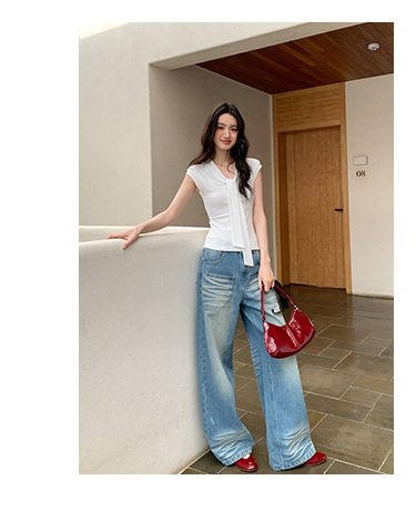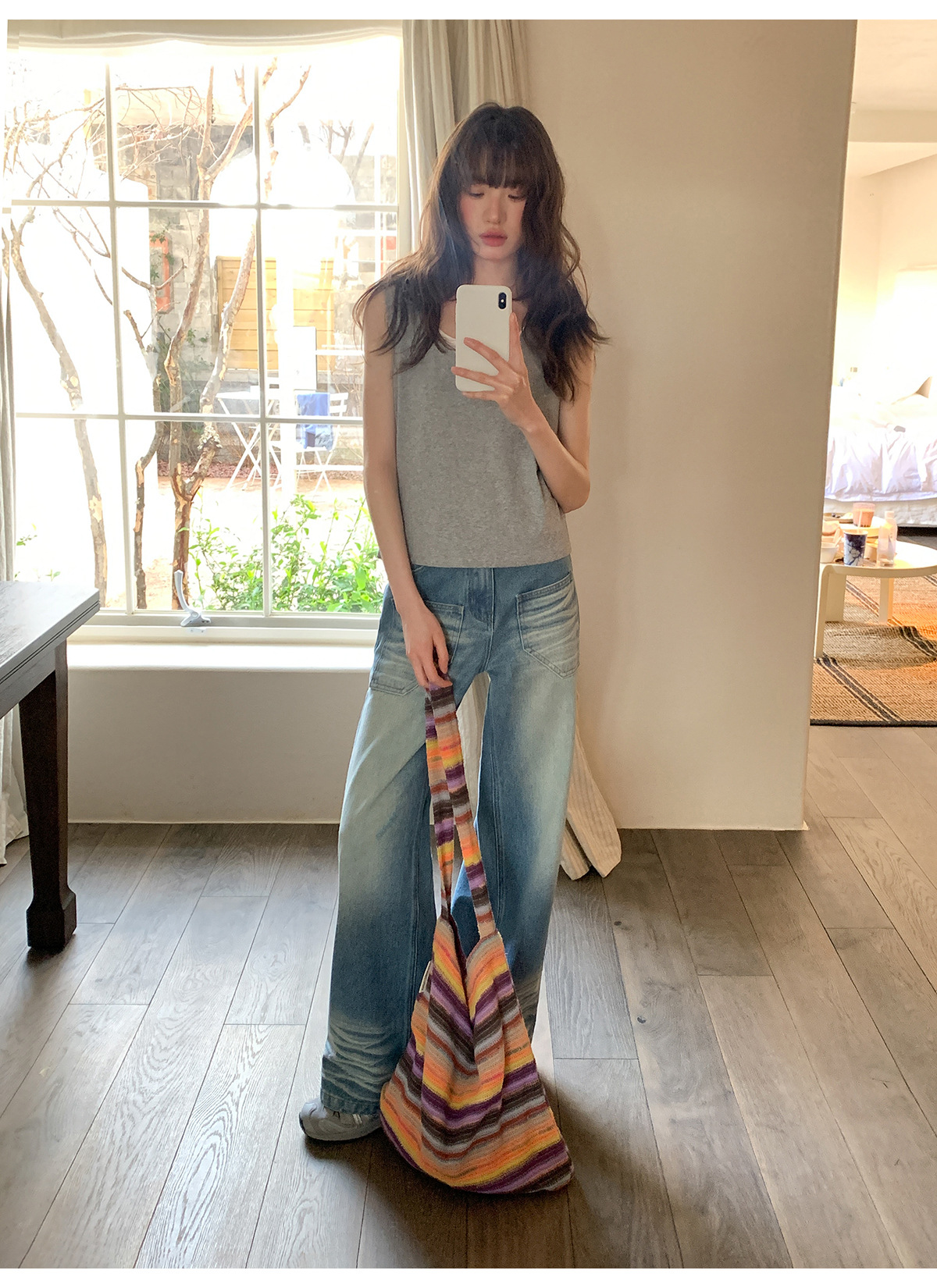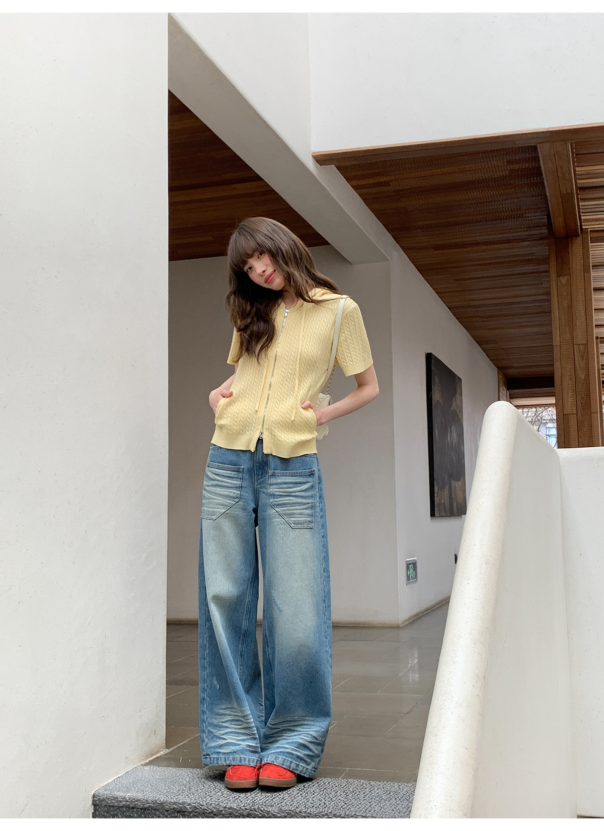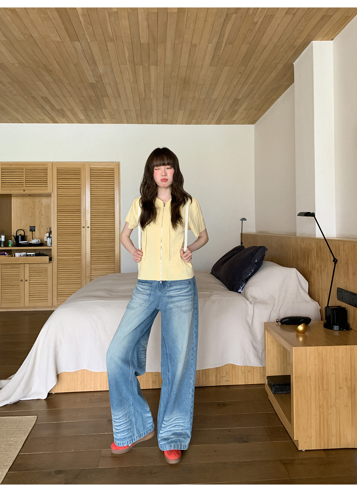 美式复古阔腿牛仔裤女夏季新款高腰显瘦直筒拖地休闲裤