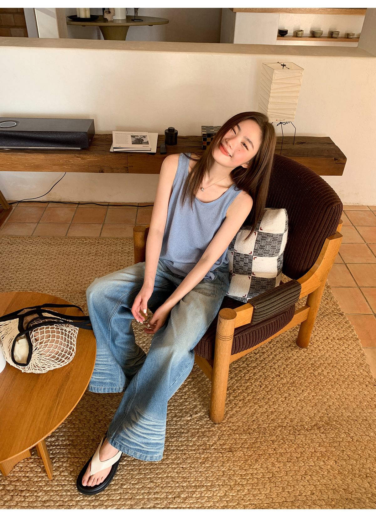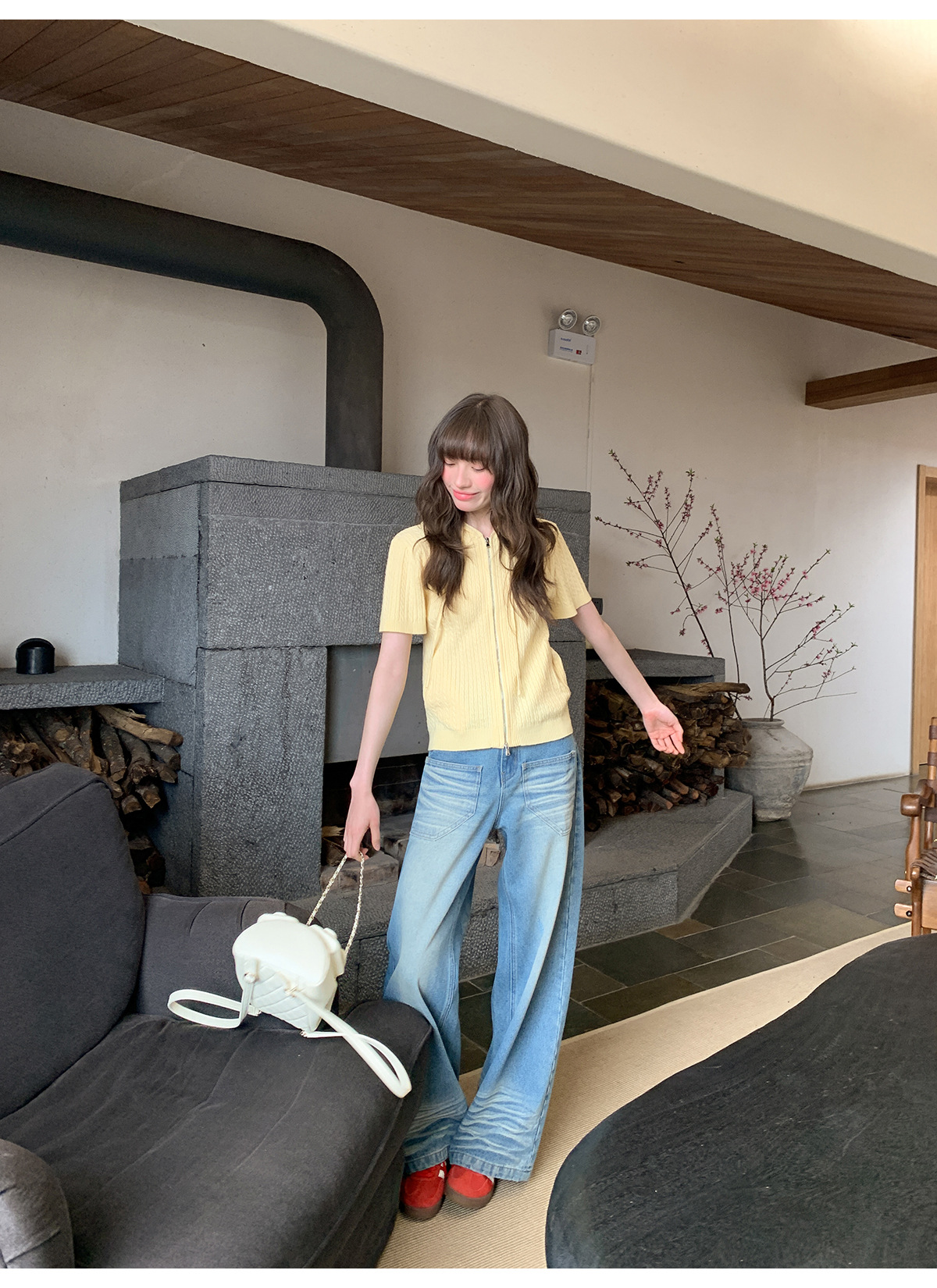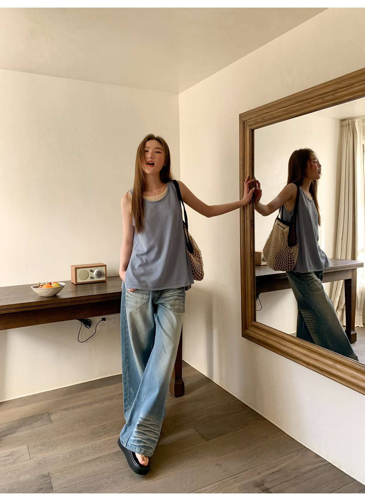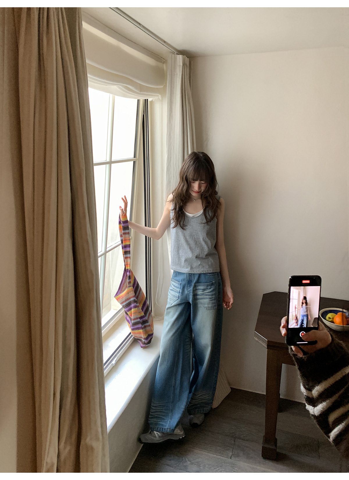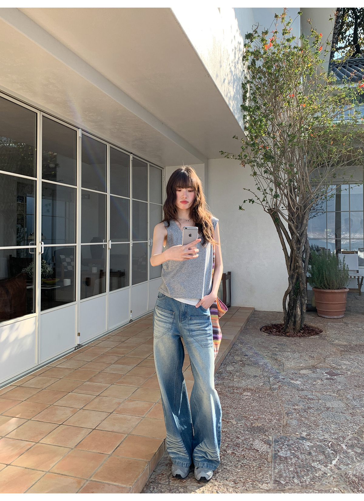 美式复古阔腿牛仔裤女夏季新款高腰显瘦直筒拖地休闲裤
