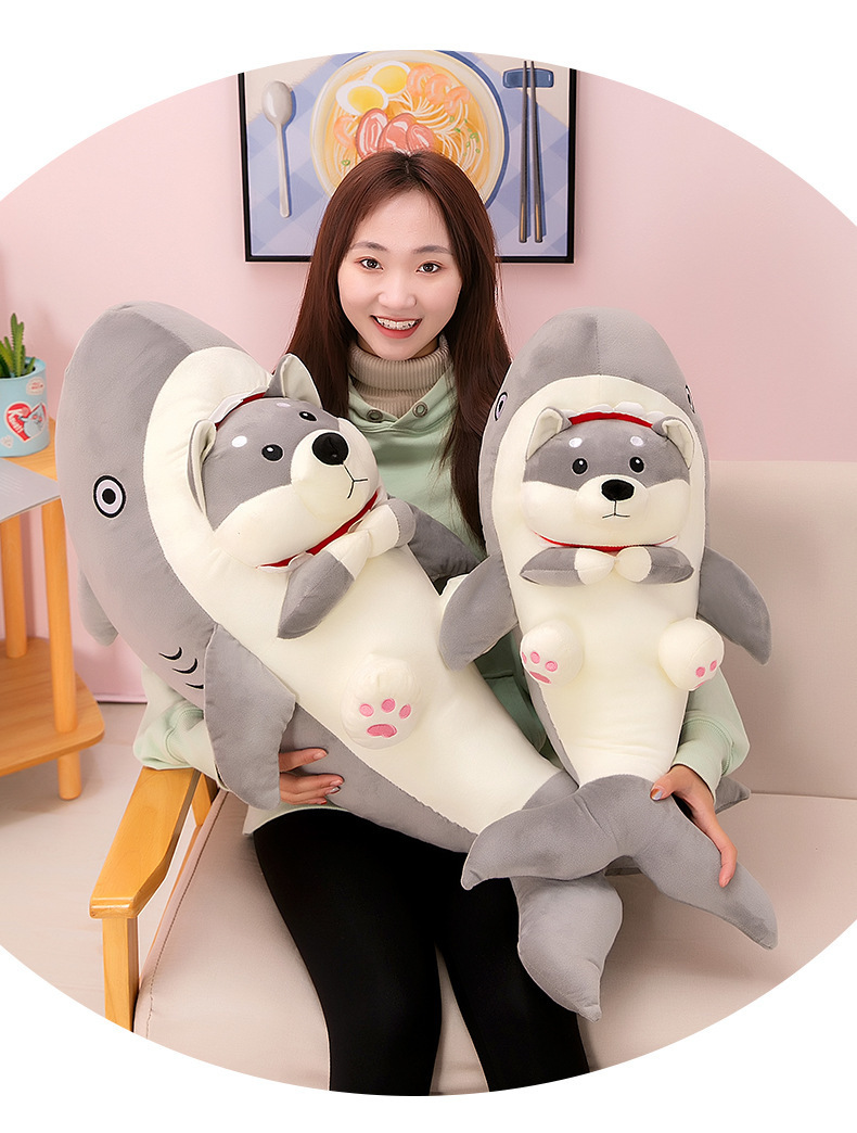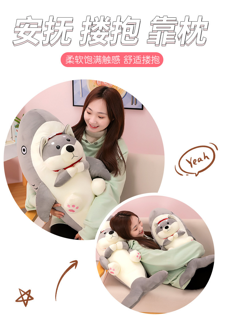 搞怪可爱鲨狗抱枕毛绒玩具鲨雕鲨叉玩偶鲨鱼公仔鲨瓜沙雕送礼物女