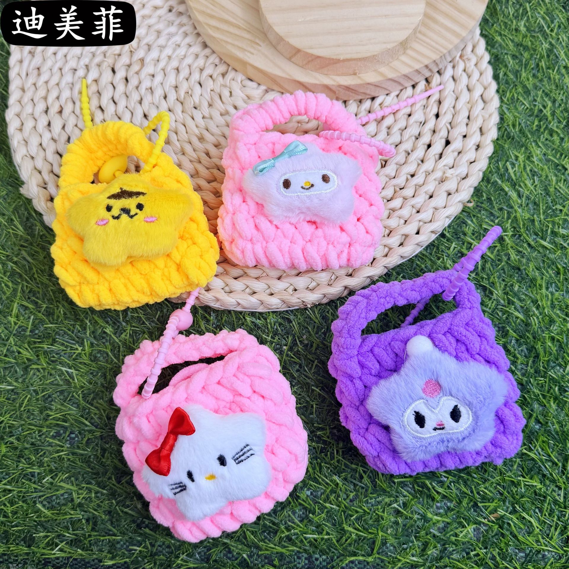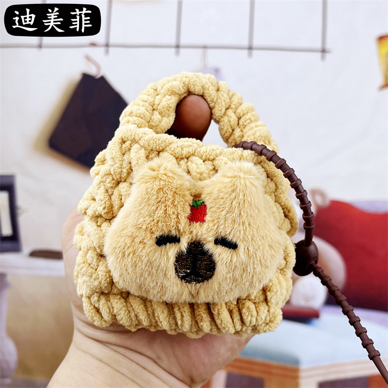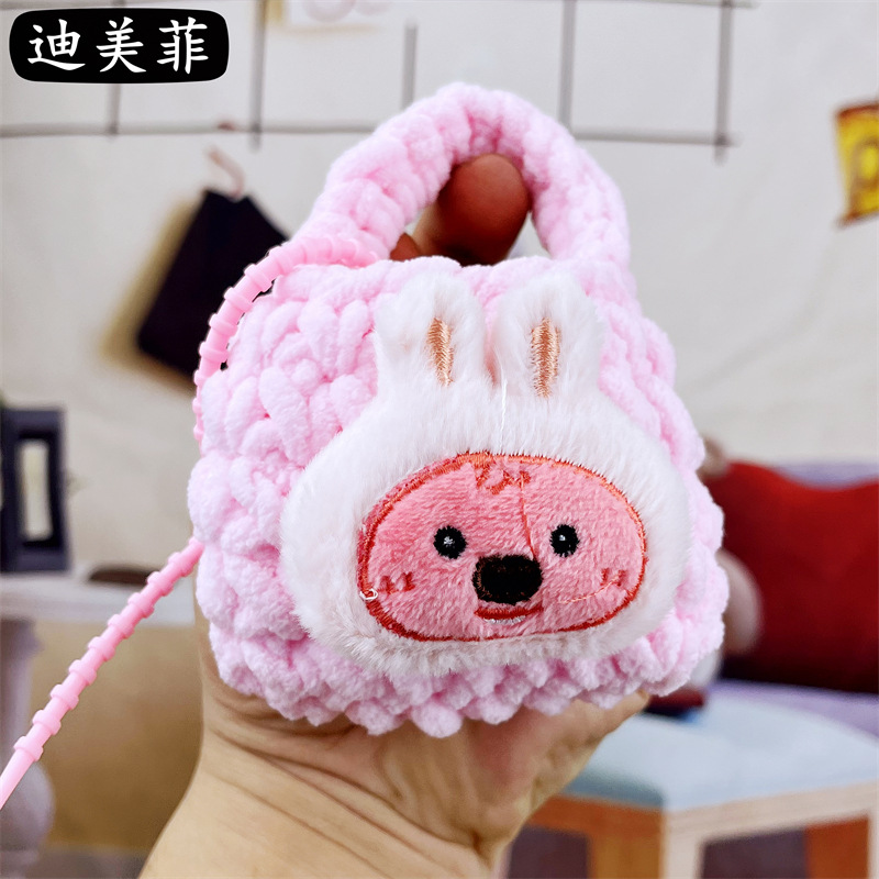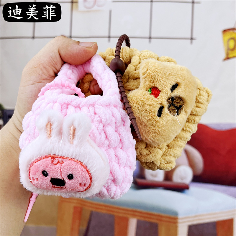 成品毛绒耳机包零钱包熊猫KT猫卡通趣味蓝牙耳机保护套钥匙扣挂件