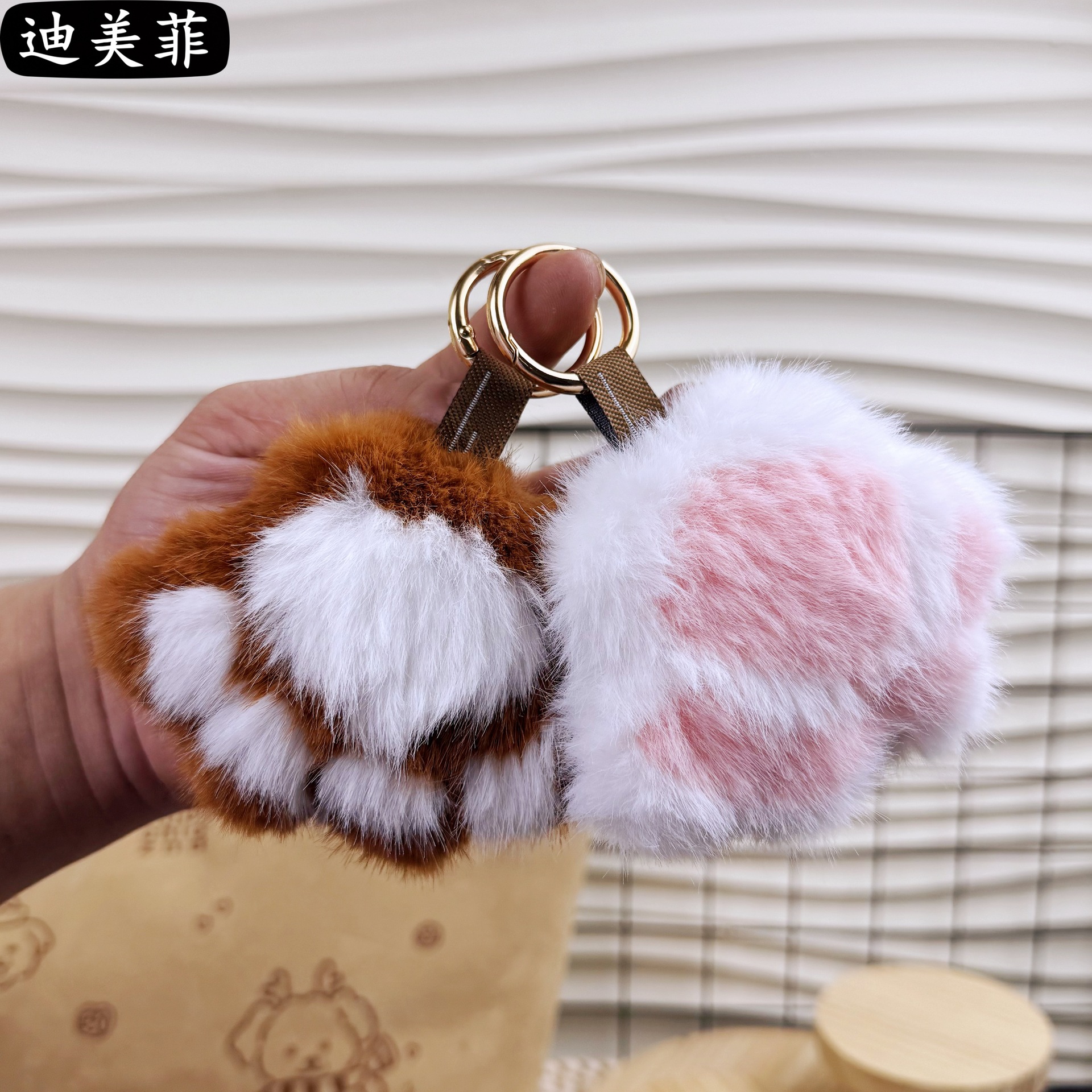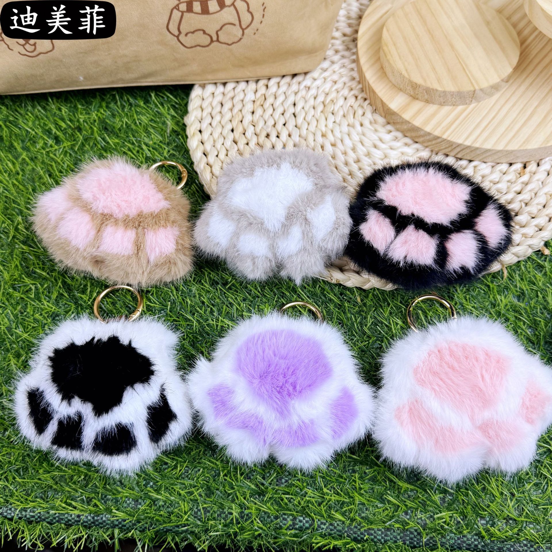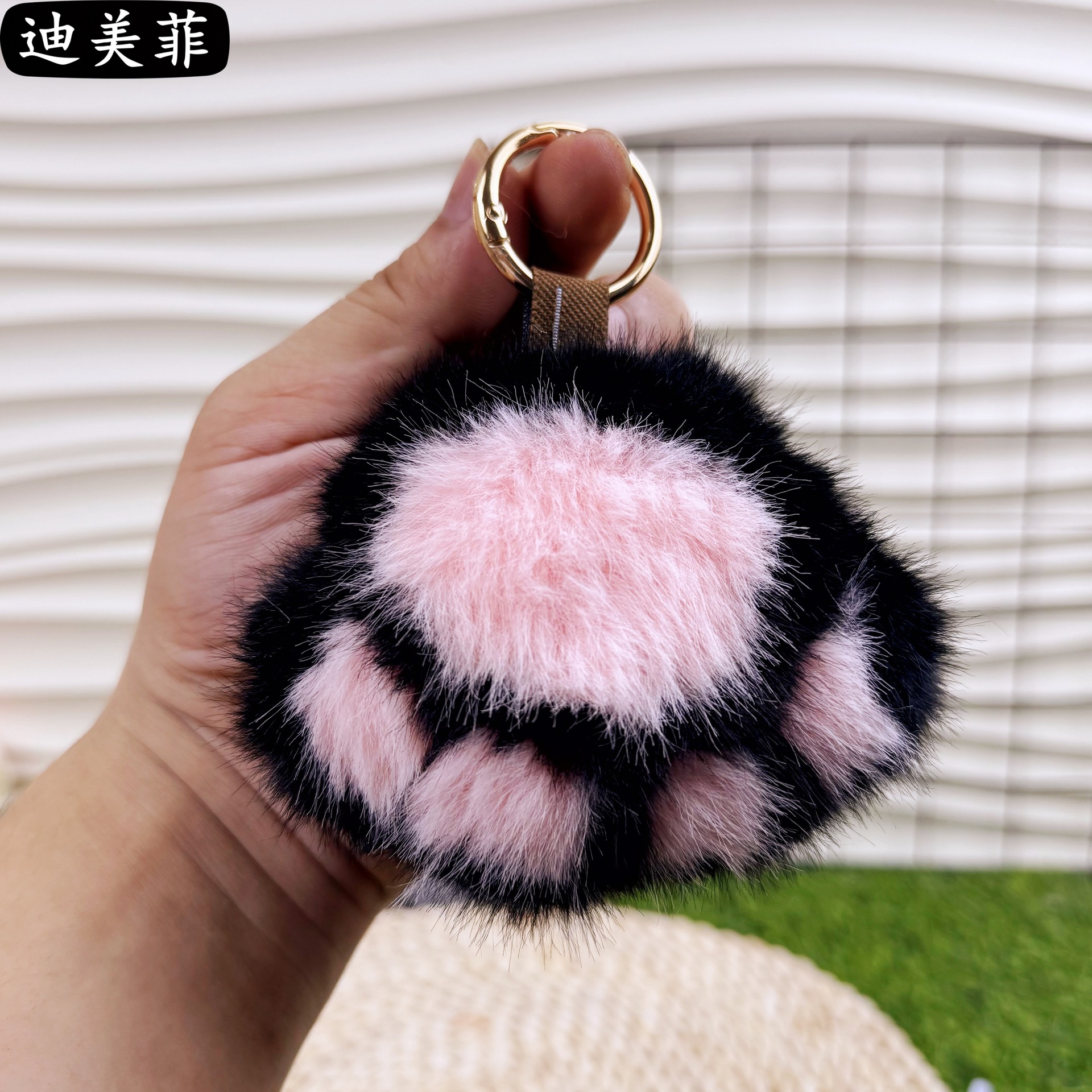 仿水貂毛可爱猫爪玩偶少女心包包挂件毛绒爪子包包挂饰汽车钥匙扣