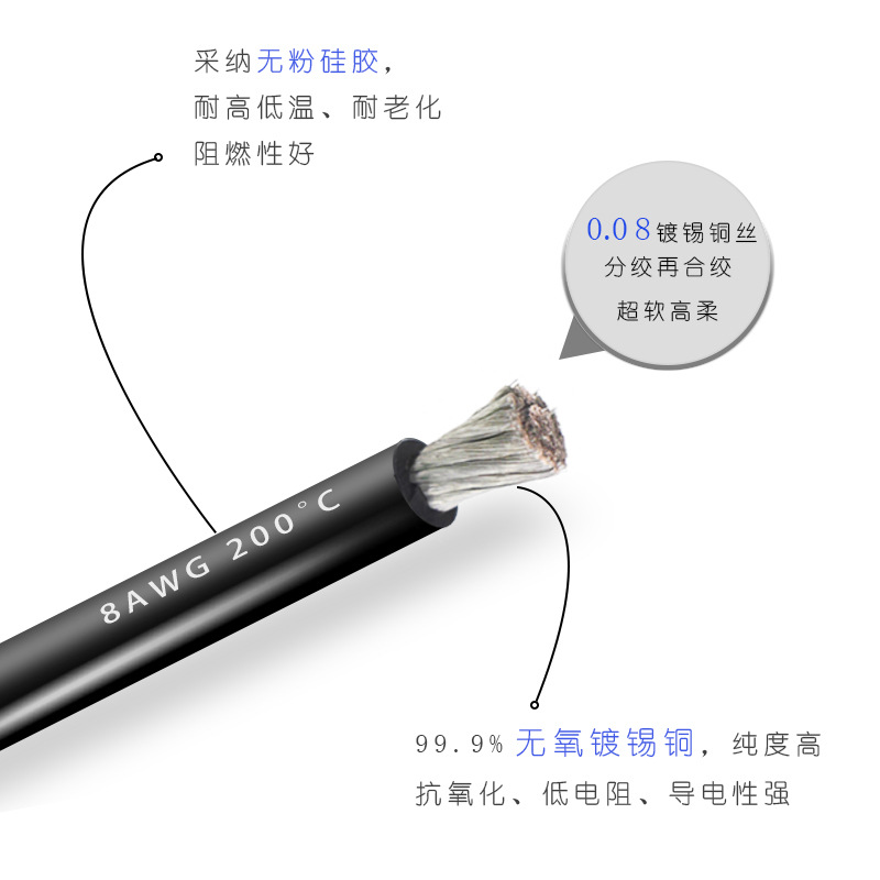 特软硅胶线#6AWG 200度600V 航模锂电池高温硅胶电线耐磨导线