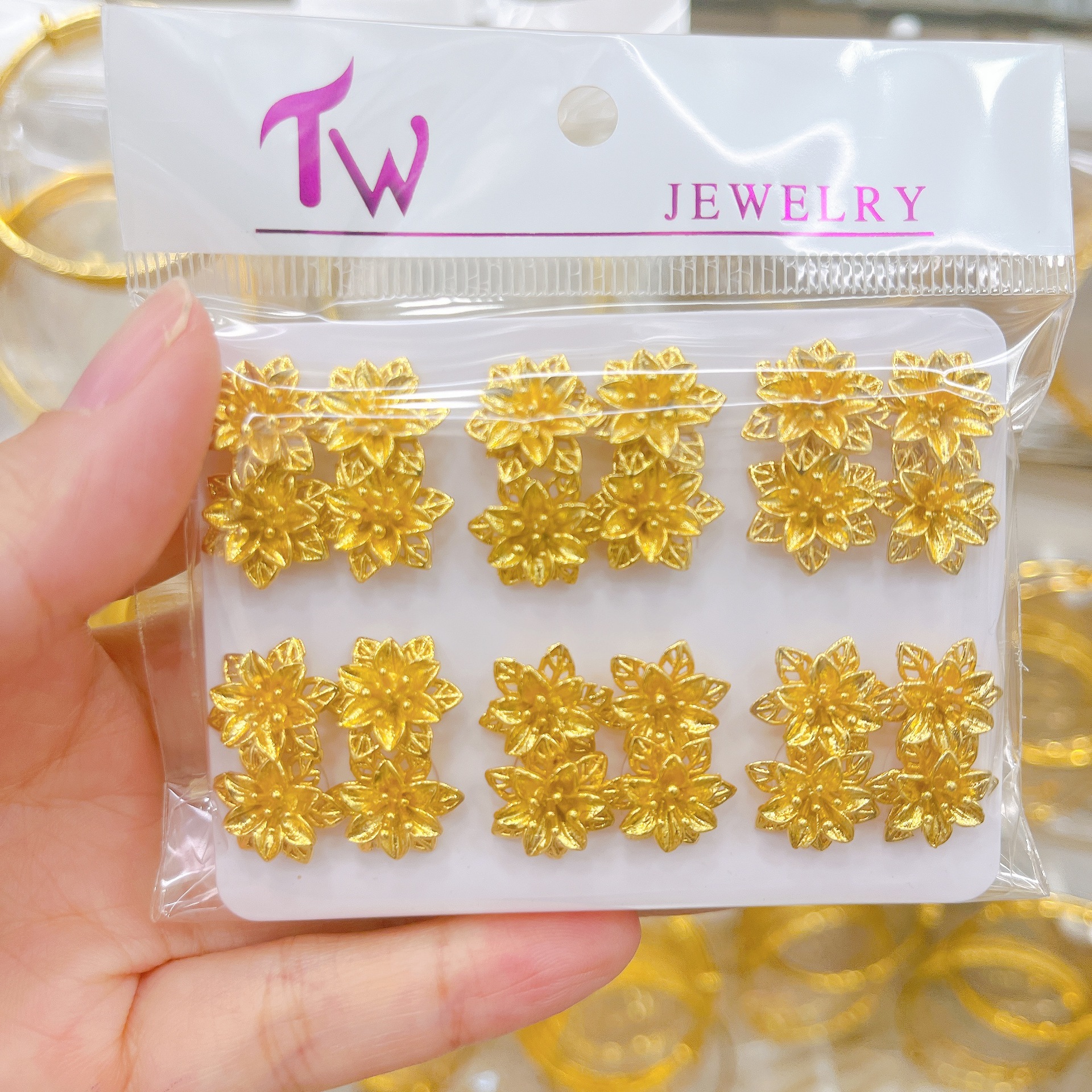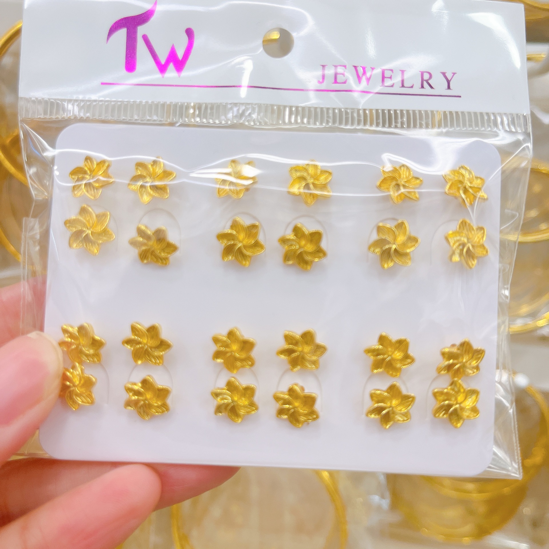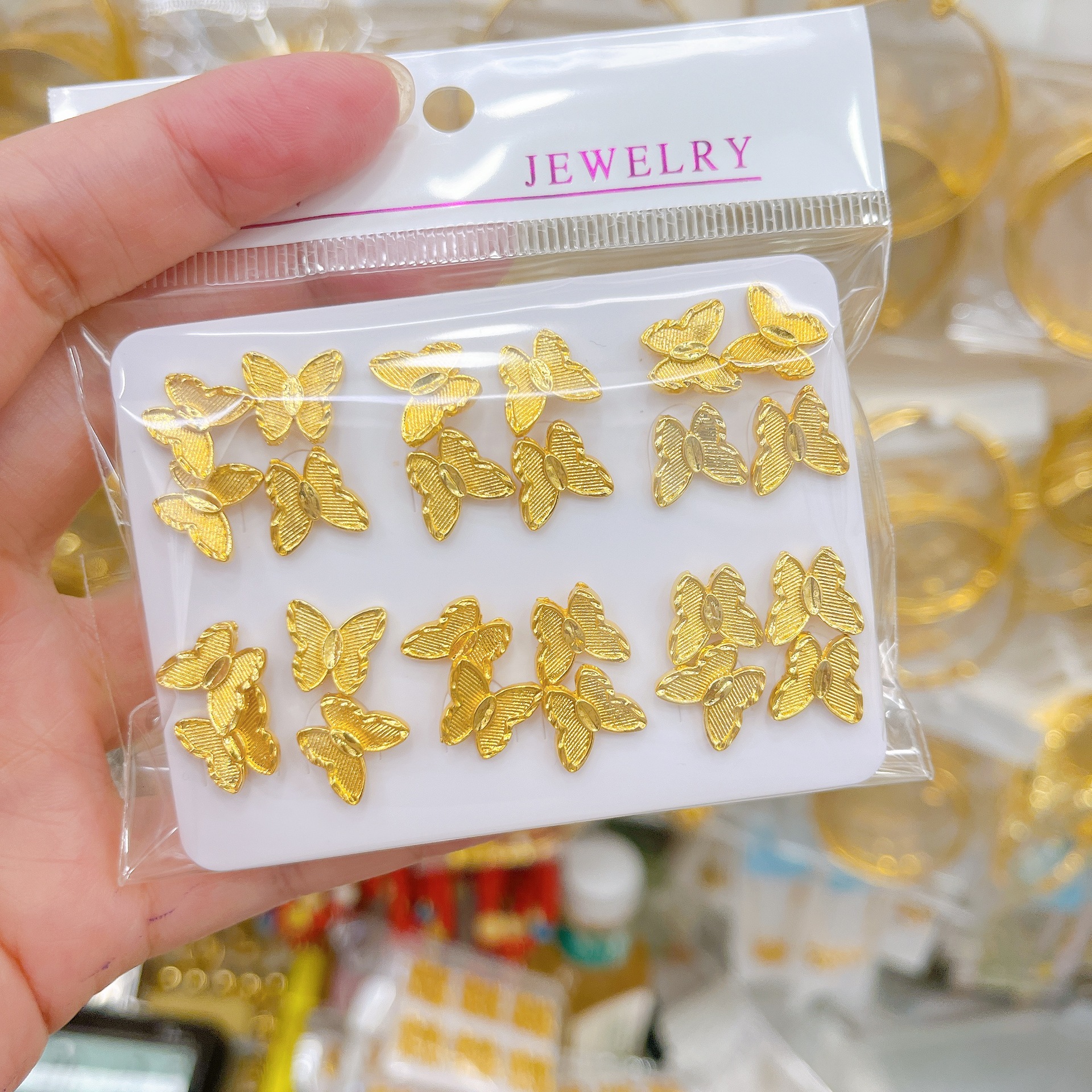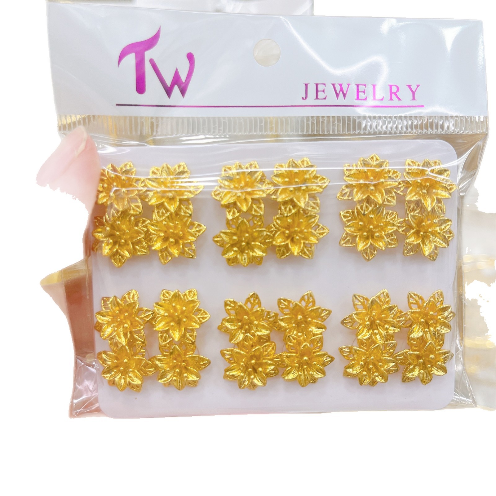 跨境耳饰仿黄金耳钉铜镀金花朵蝴蝶圆珠珠耳环饰品时尚甜美精美