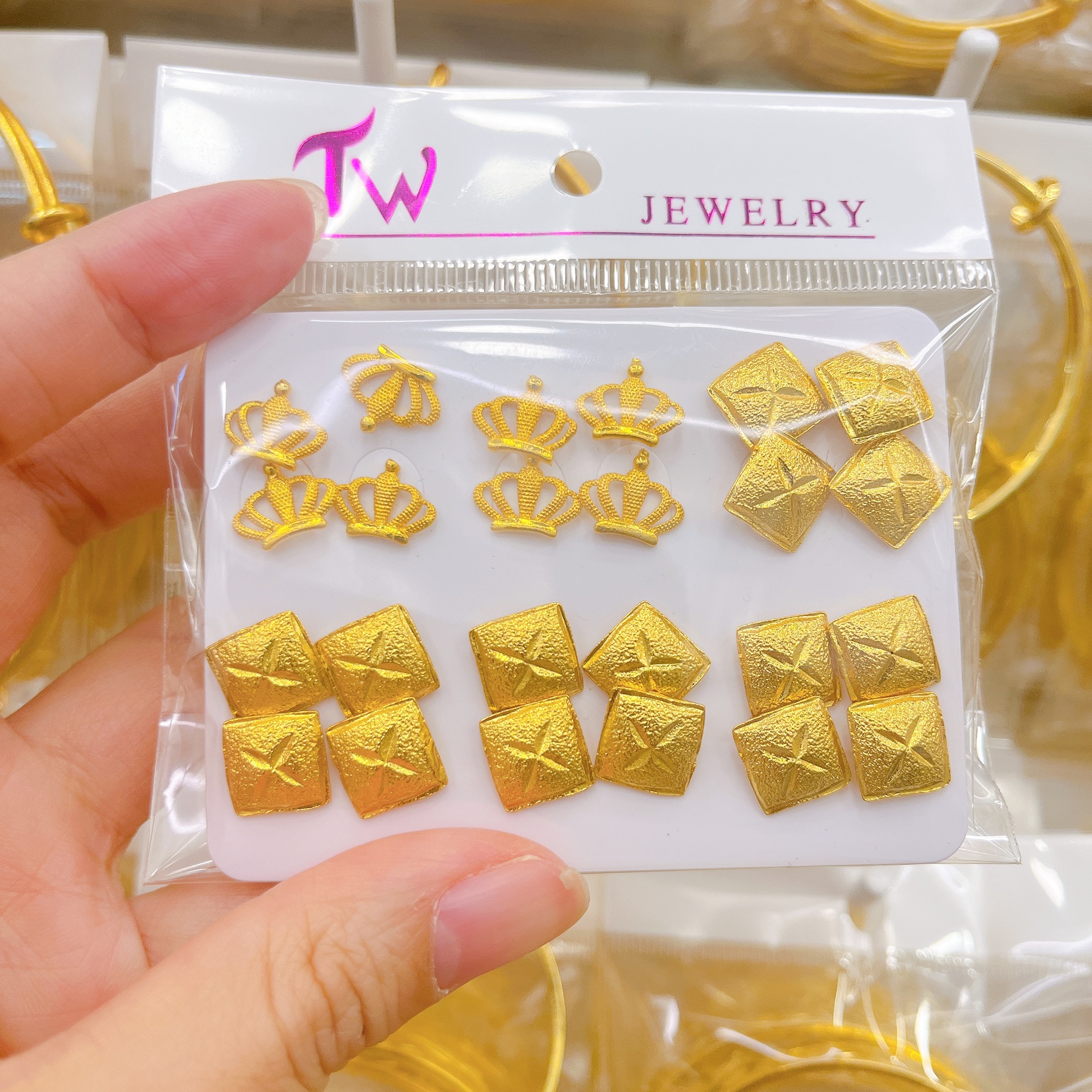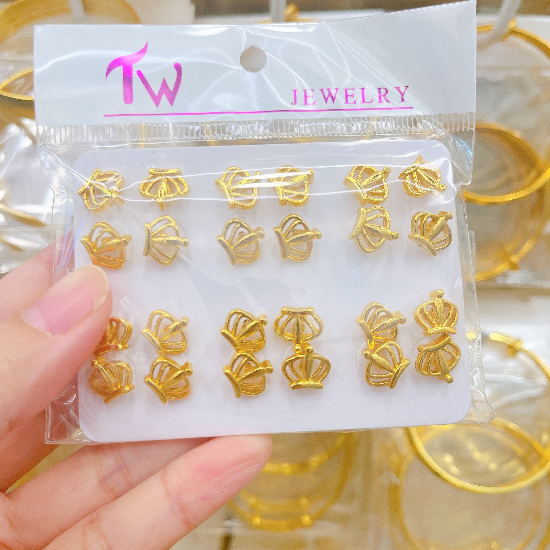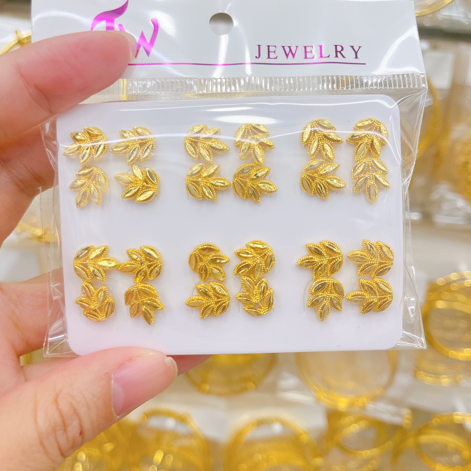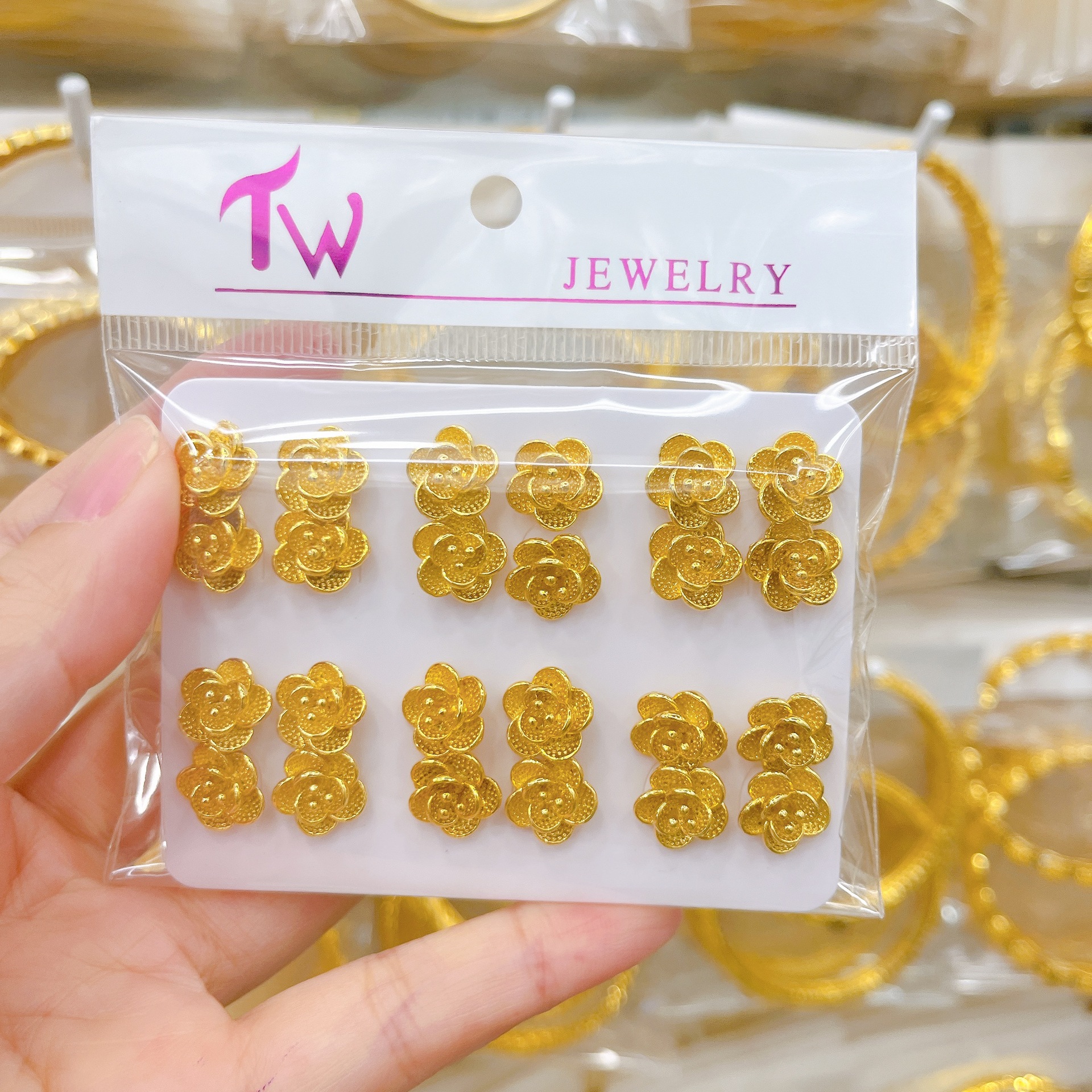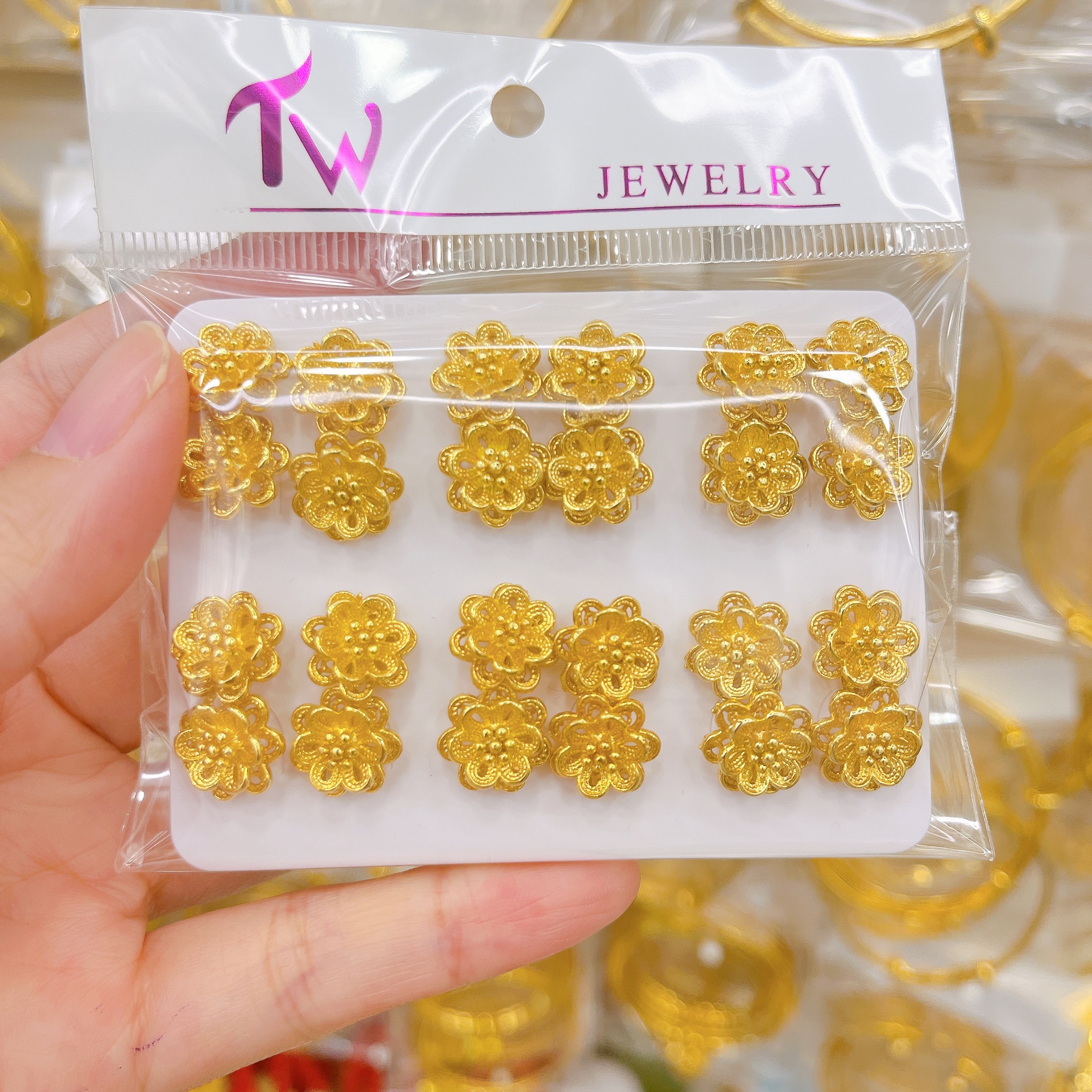 跨境耳饰仿黄金耳钉铜镀金花朵蝴蝶圆珠珠耳环饰品时尚甜美精美