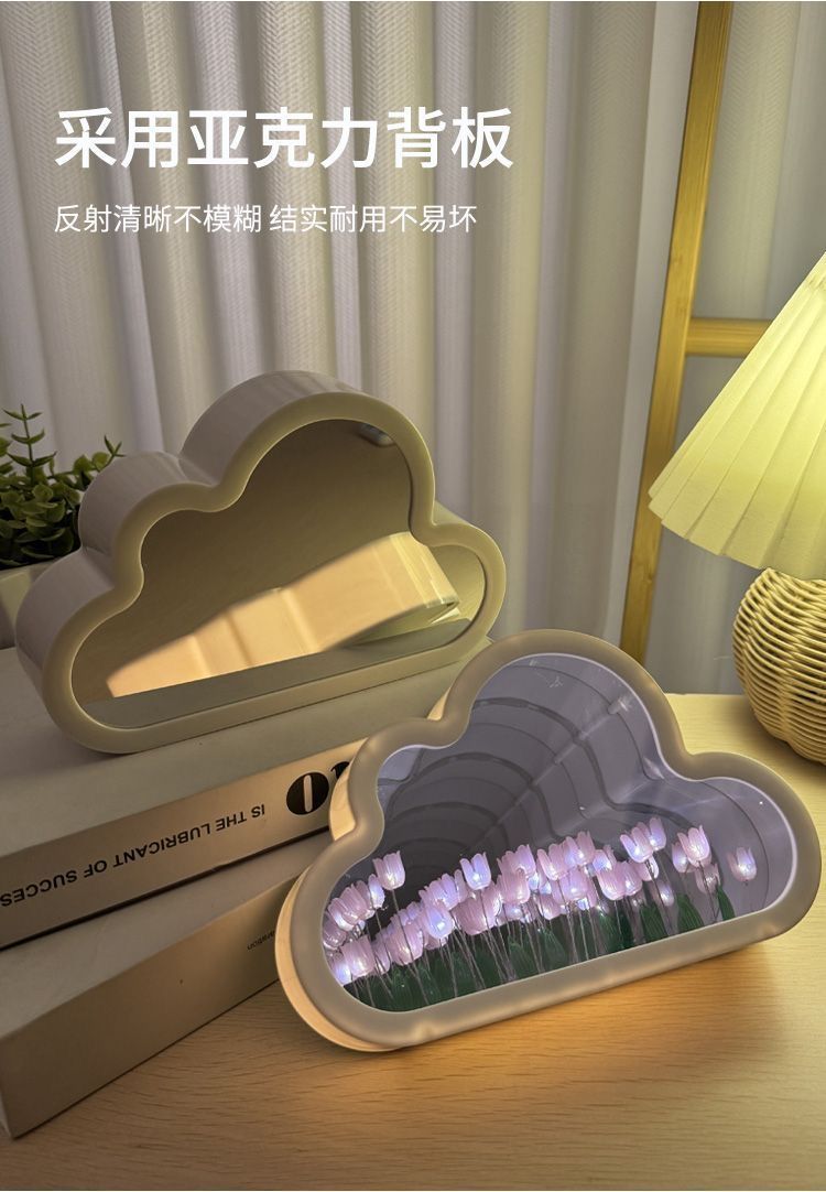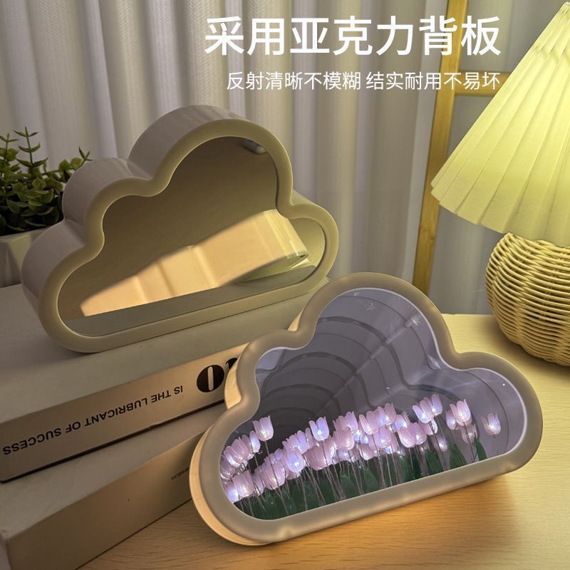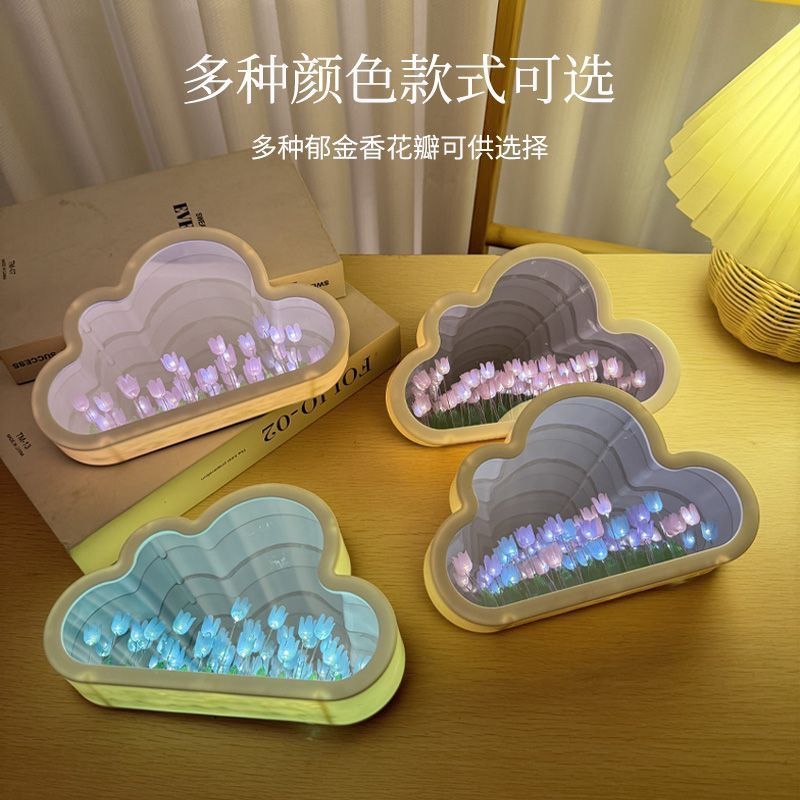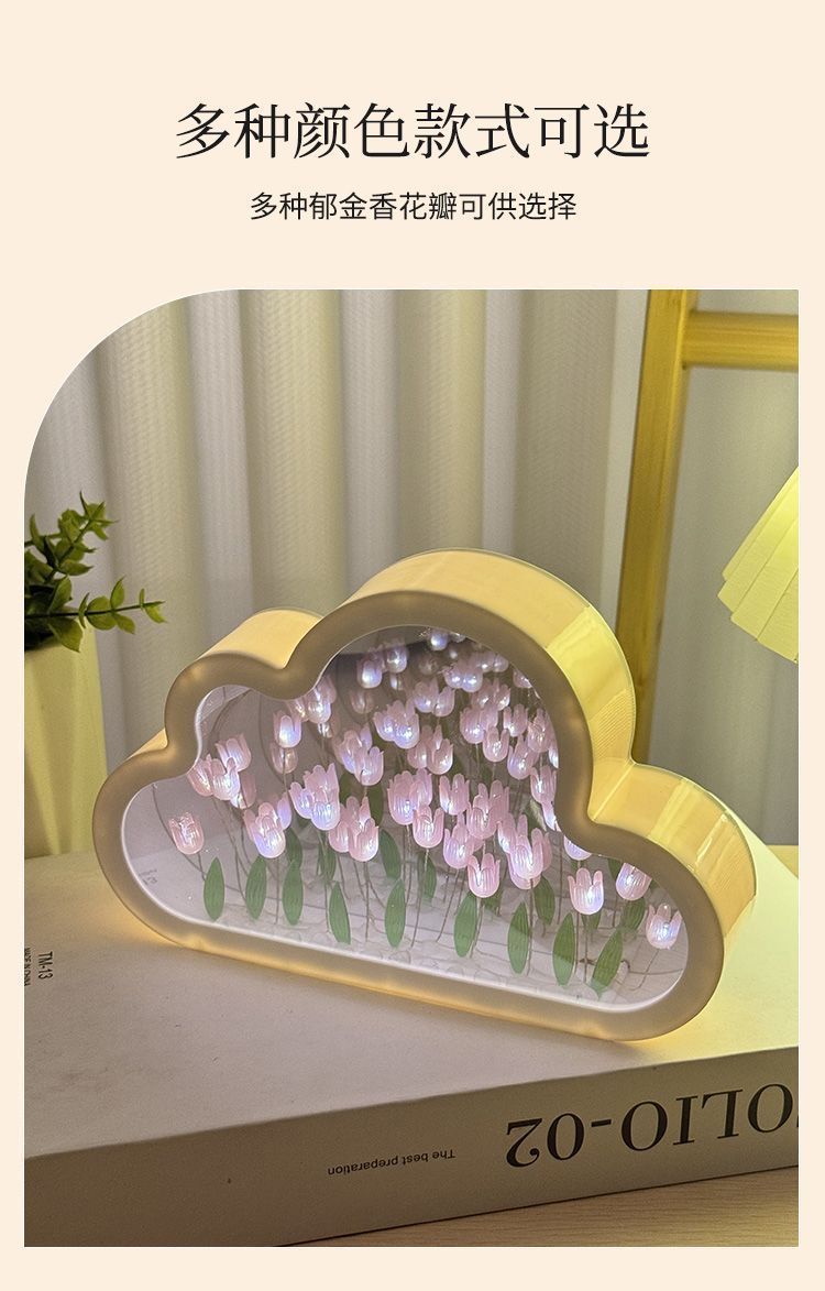 云朵镜子郁金香小夜灯diy手工花海生日礼物送女生闺蜜情人节