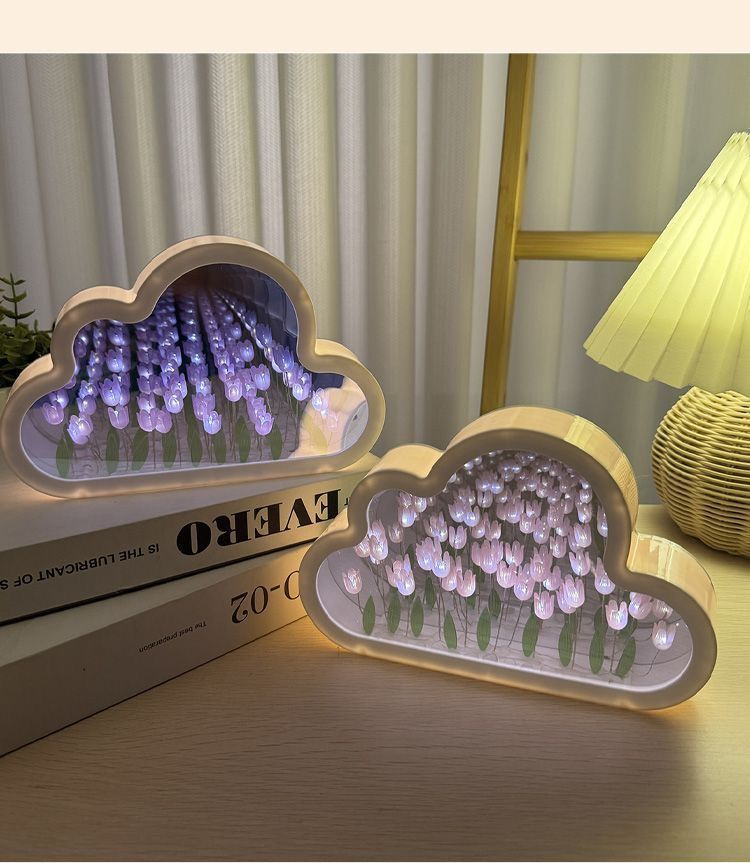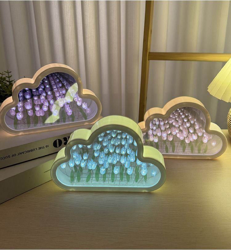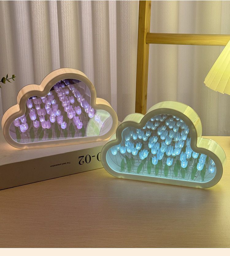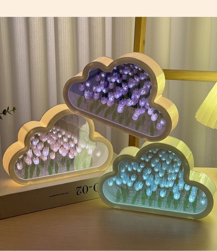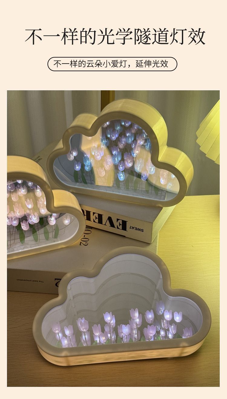 云朵镜子郁金香小夜灯diy手工花海生日礼物送女生闺蜜情人节