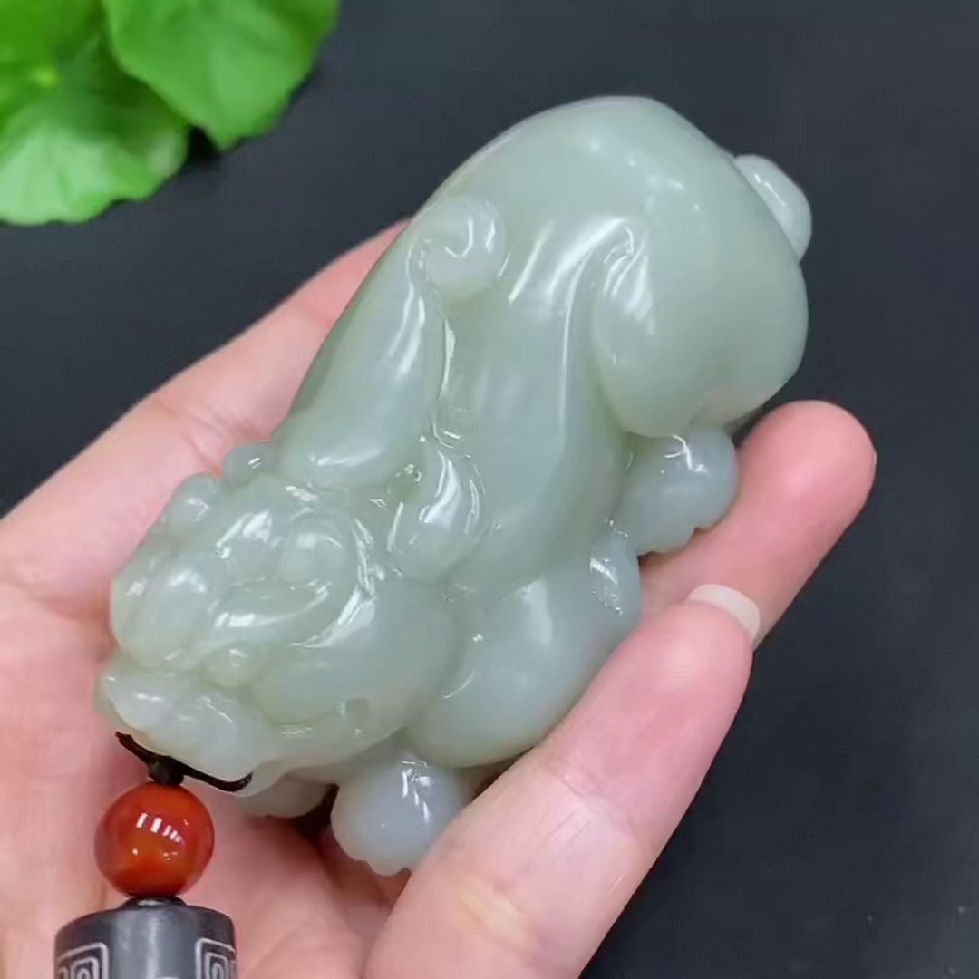 和田玉手把件 貔貅 总重约(含绳)137.4g工艺品