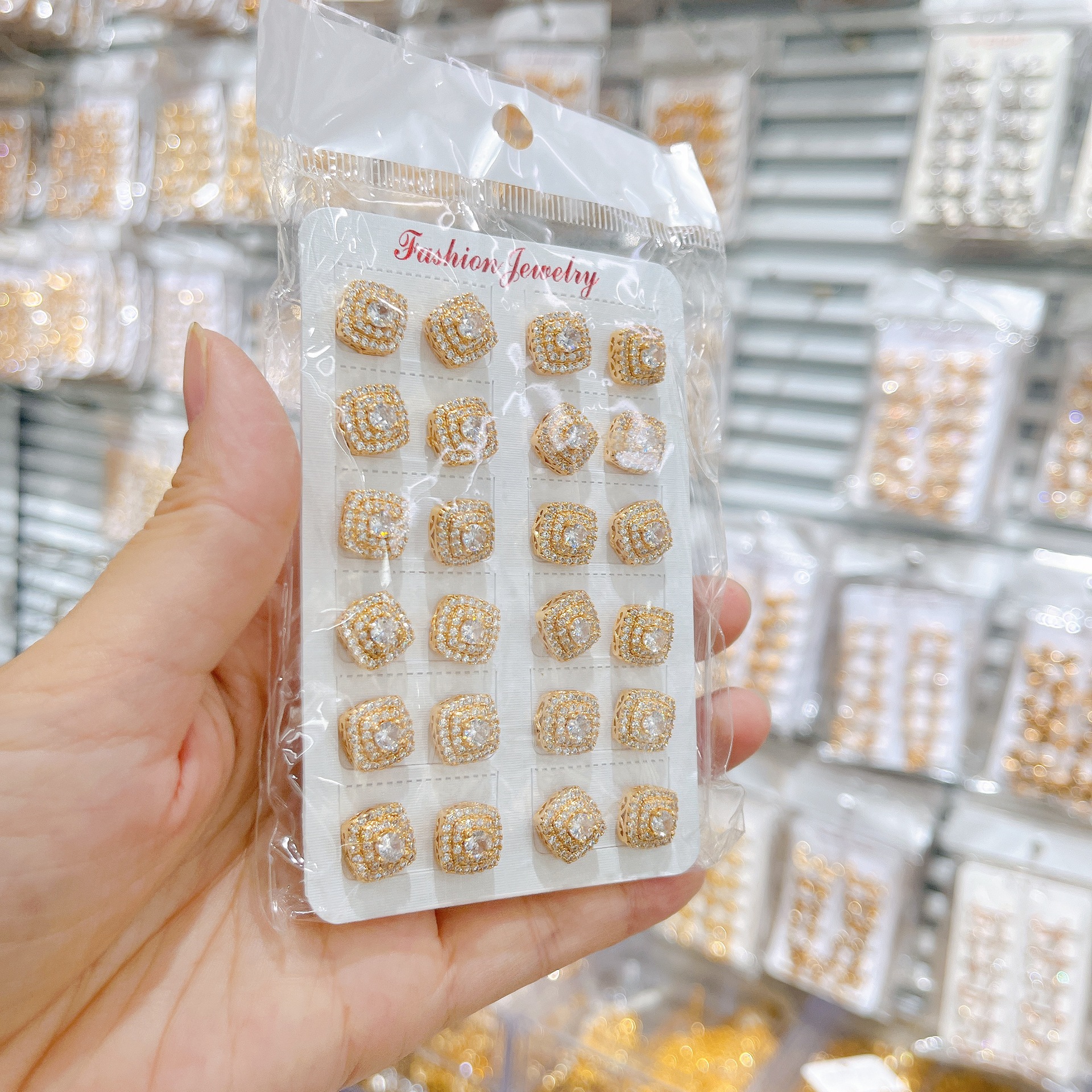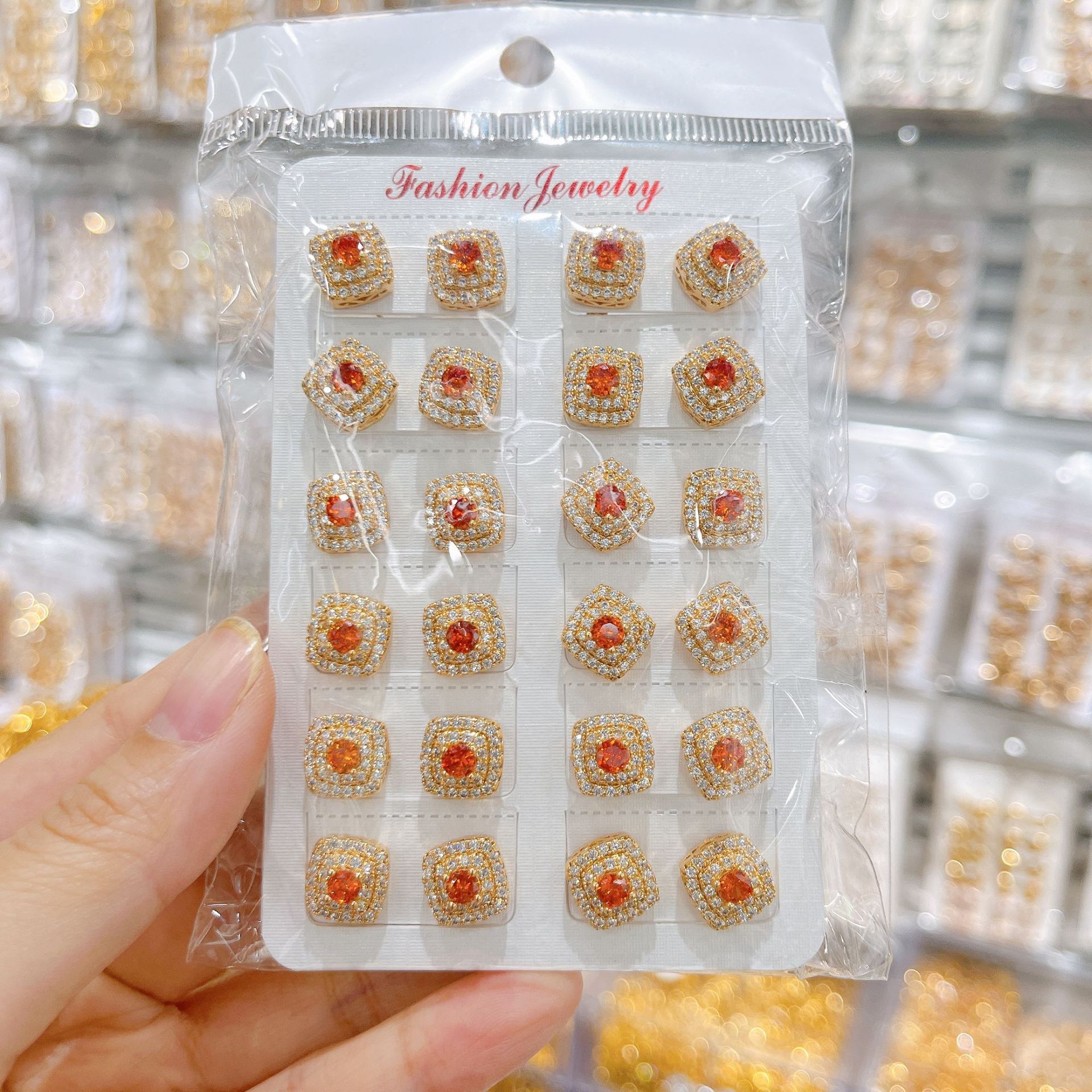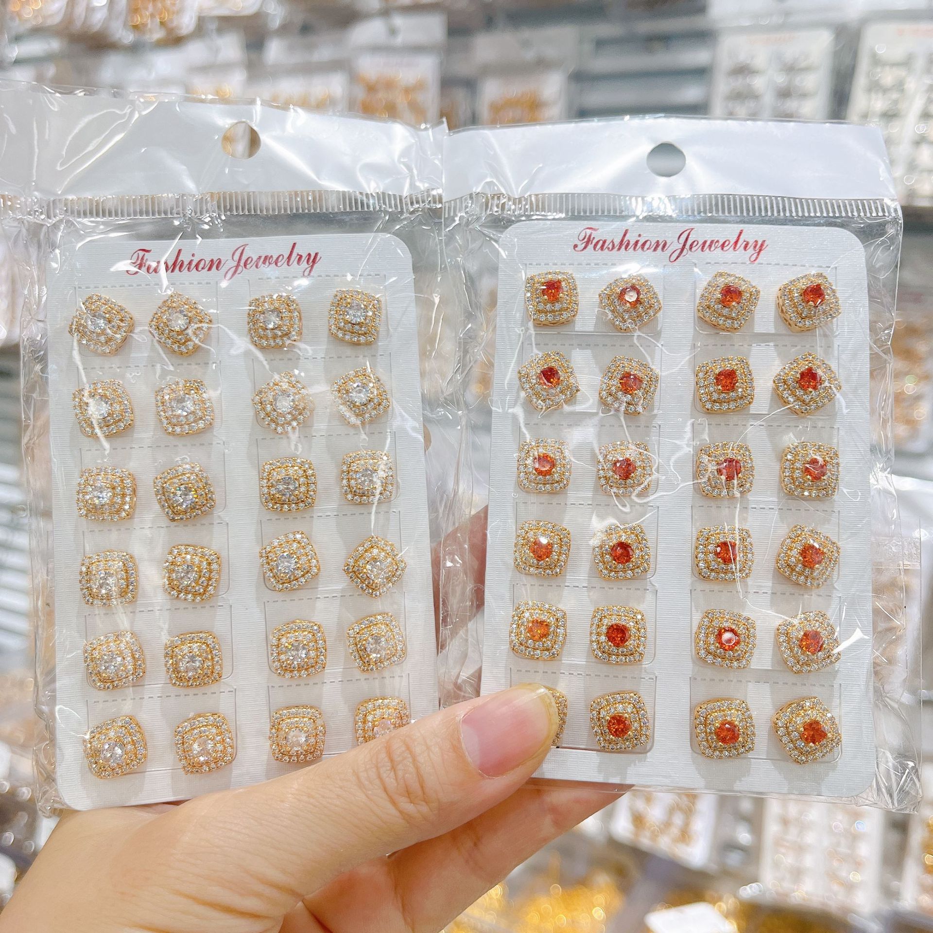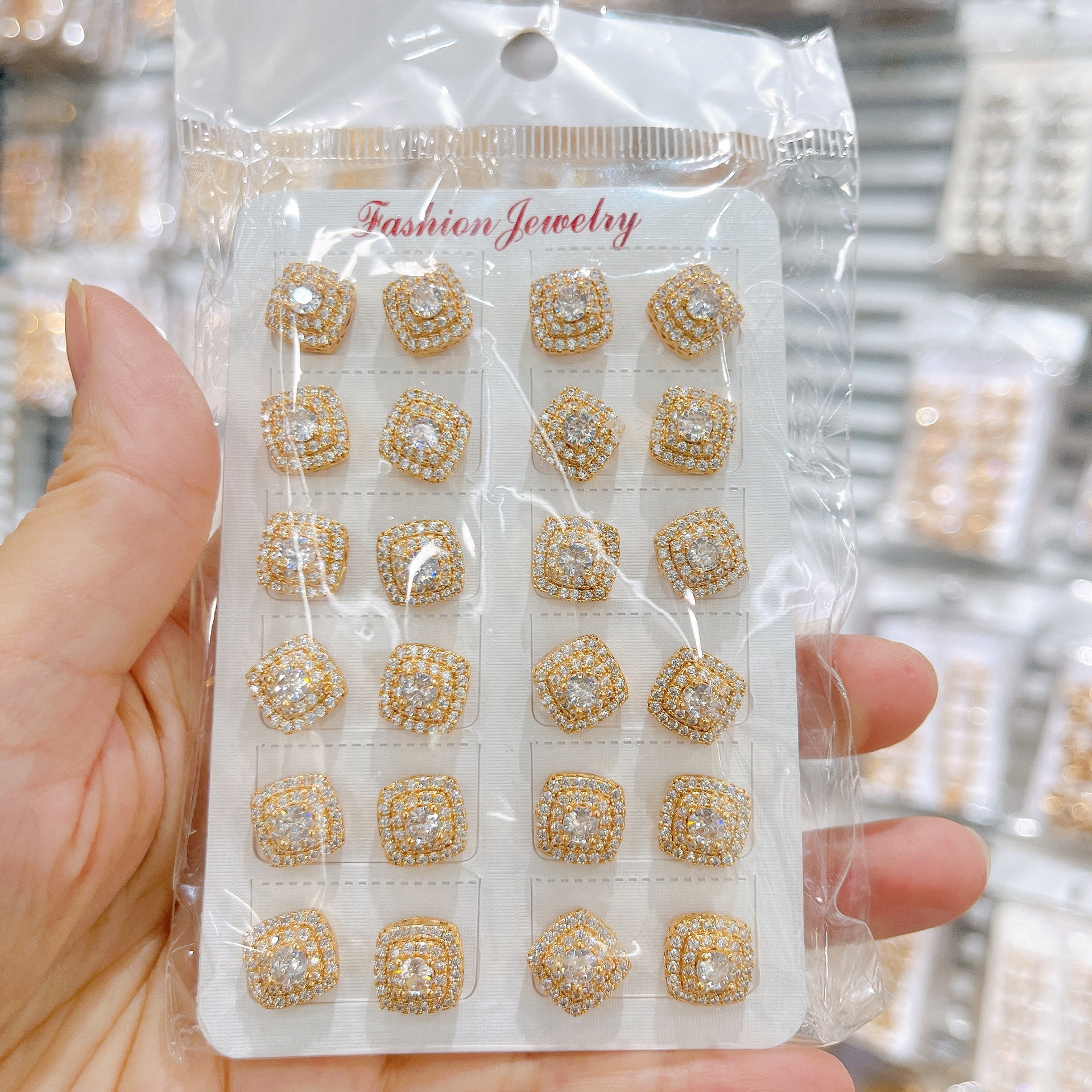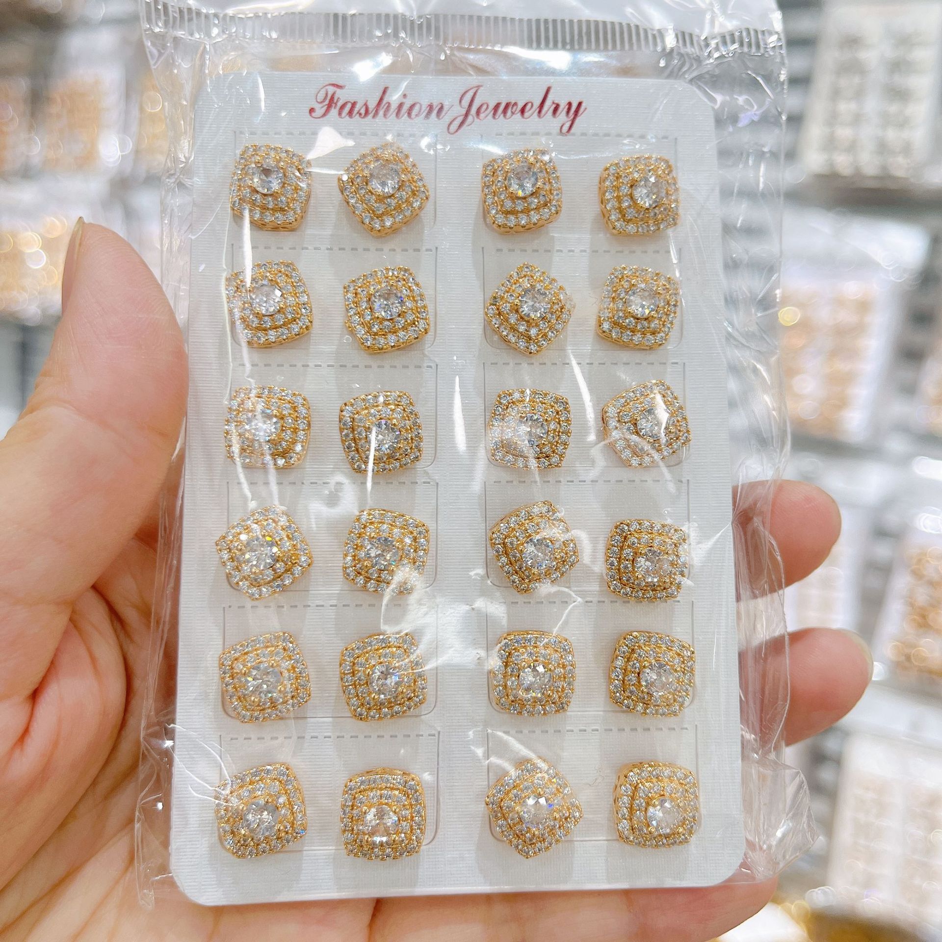 跨境耳环镶钻方型耳钉双层锆石金色高级感耳ins风新款耳饰耳环