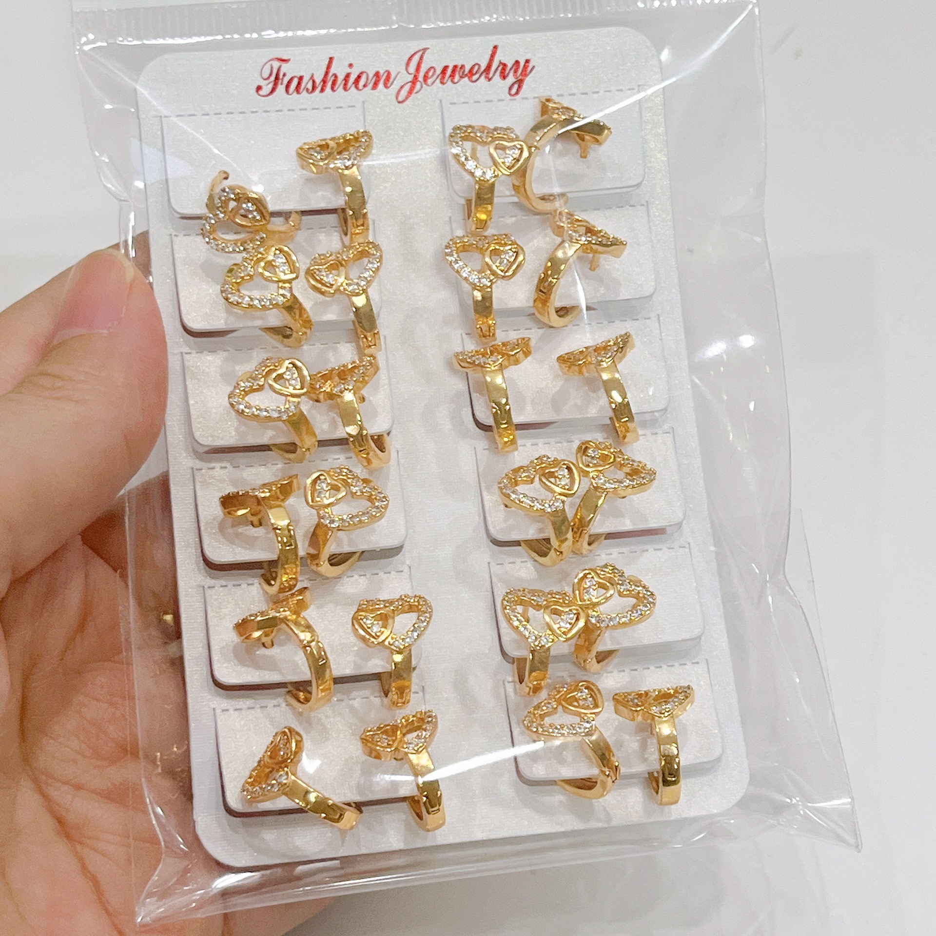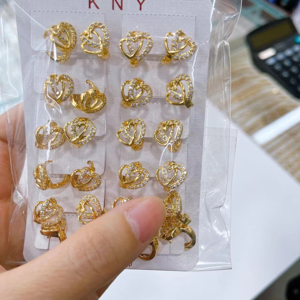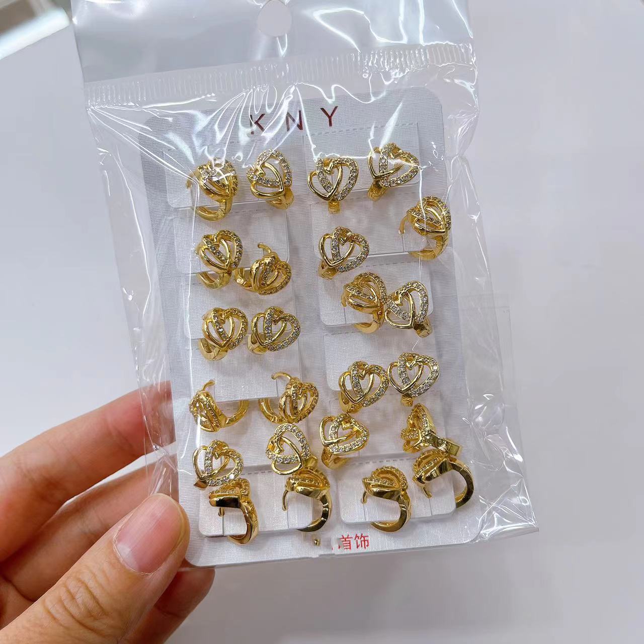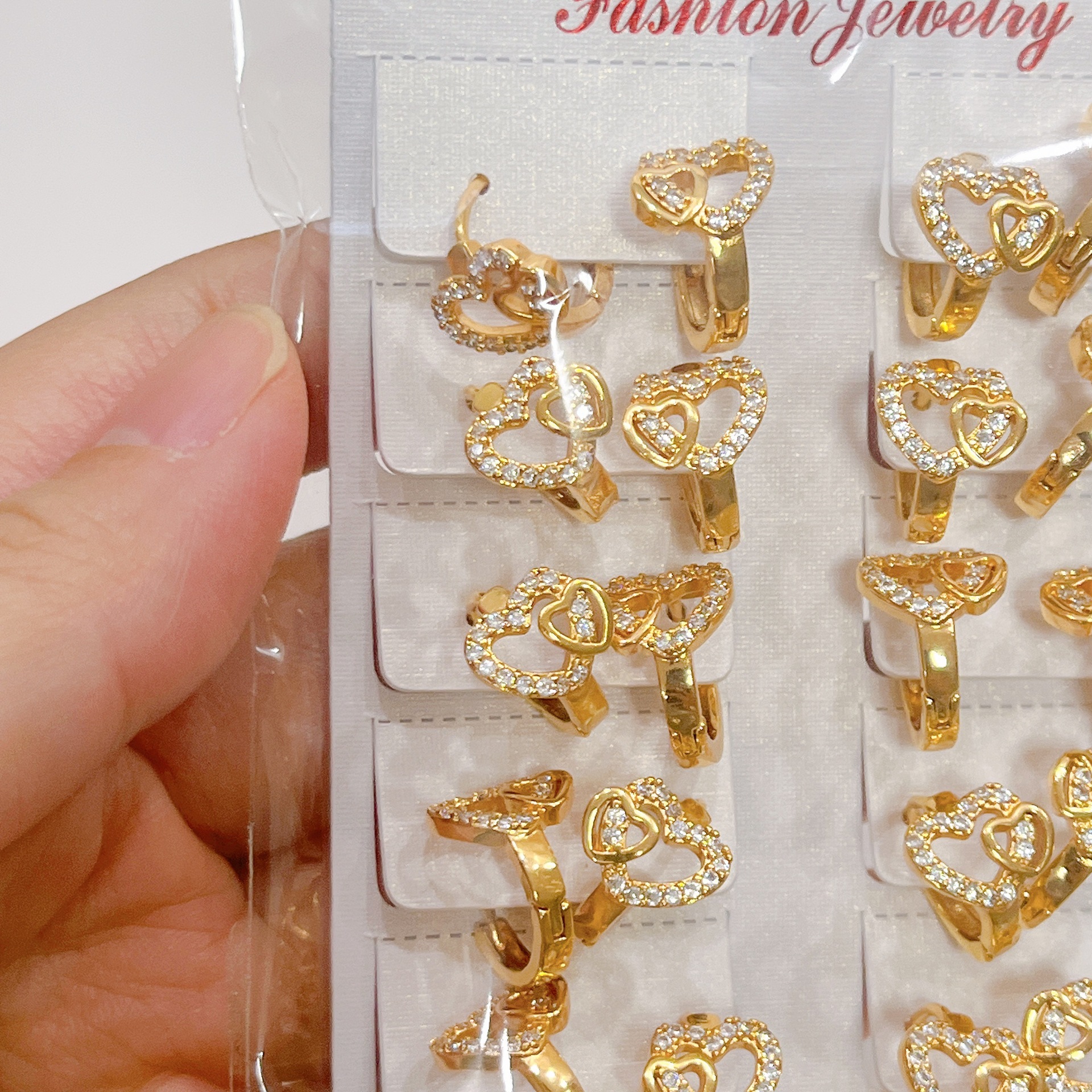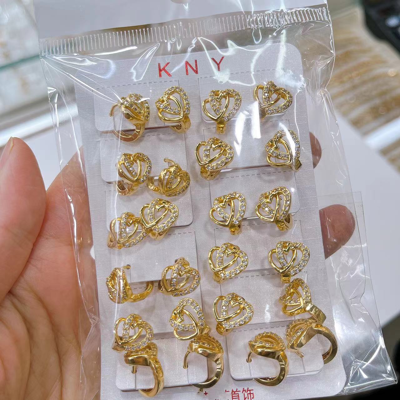 双爱心镶钻耳环时尚耳饰简约轻奢女耳扣耳包耳圈耳骨光面耳坠