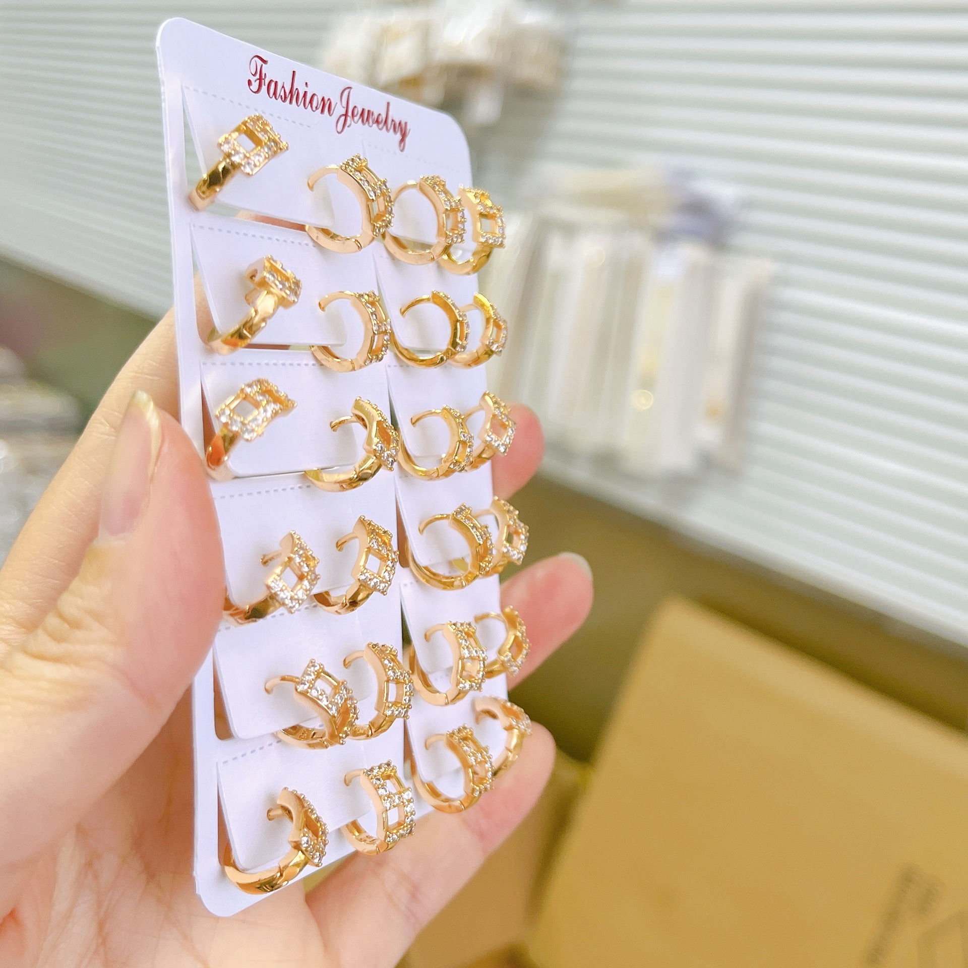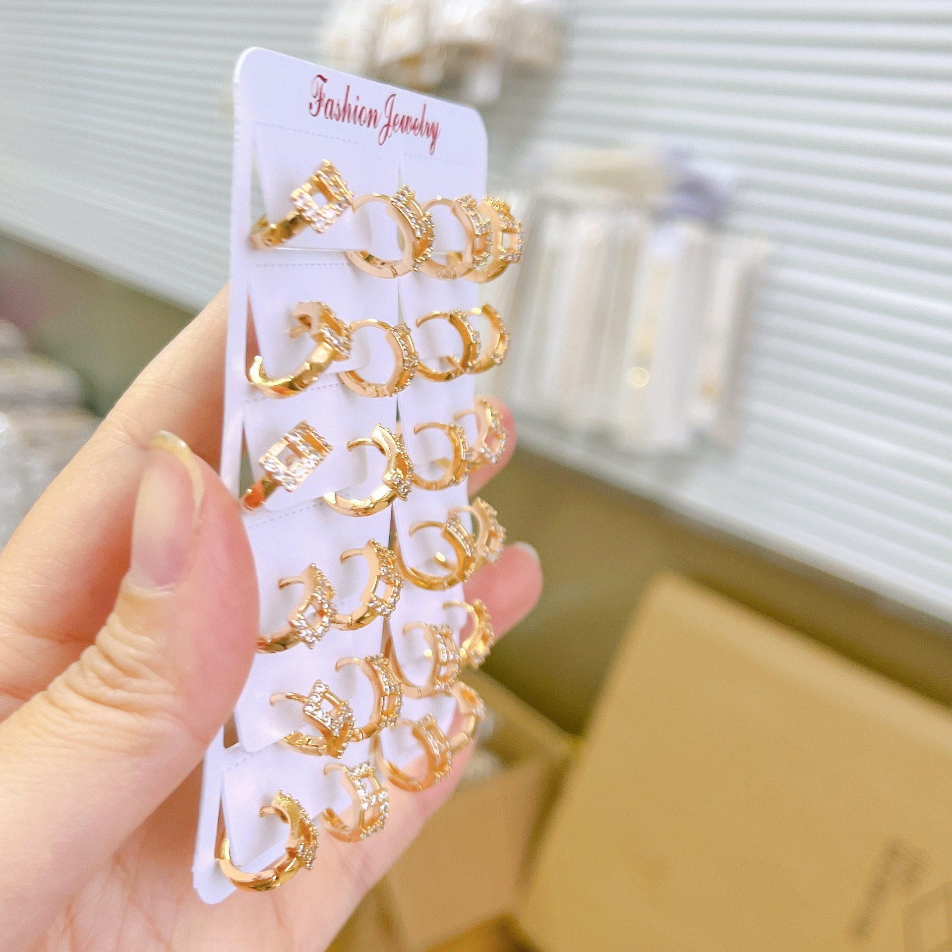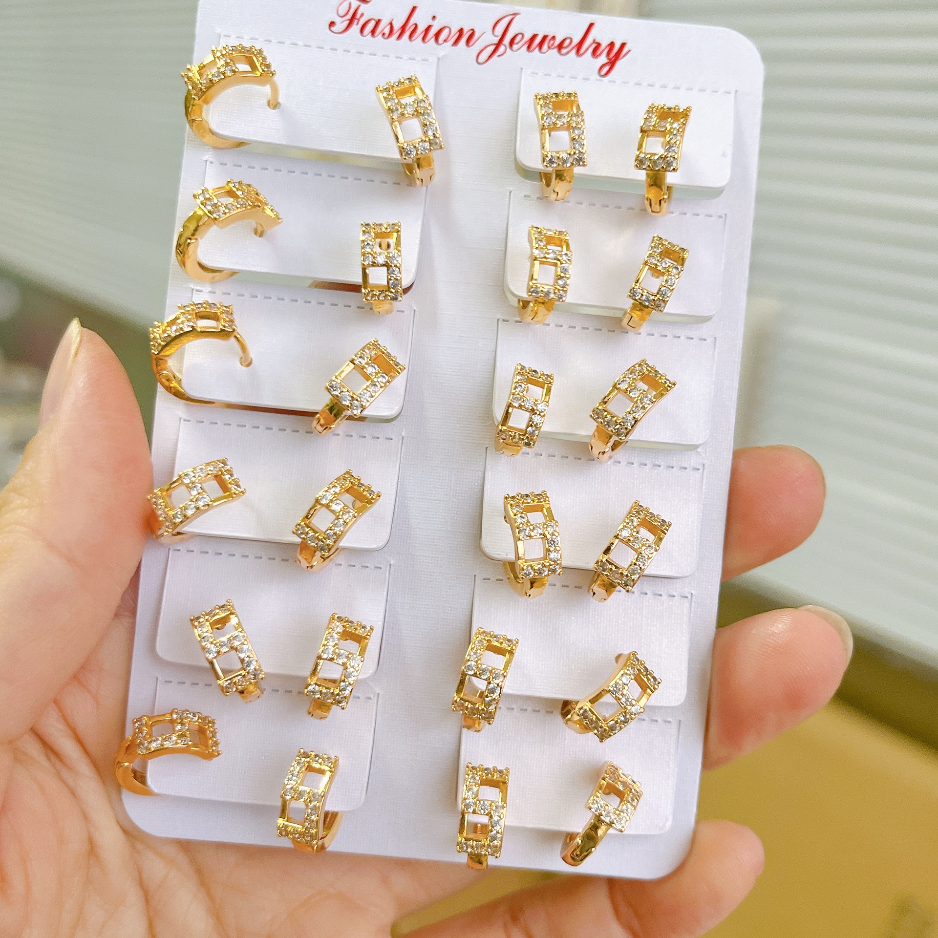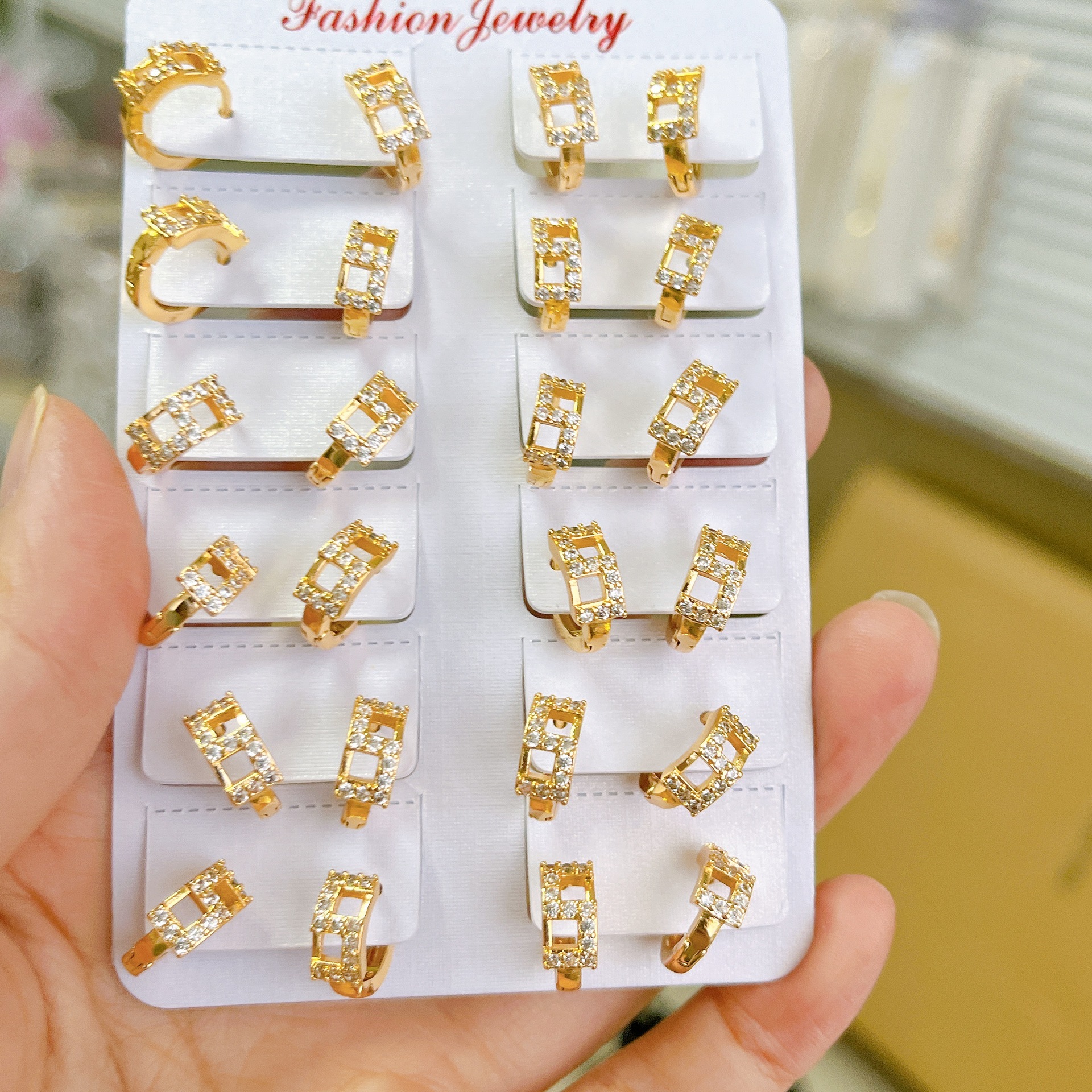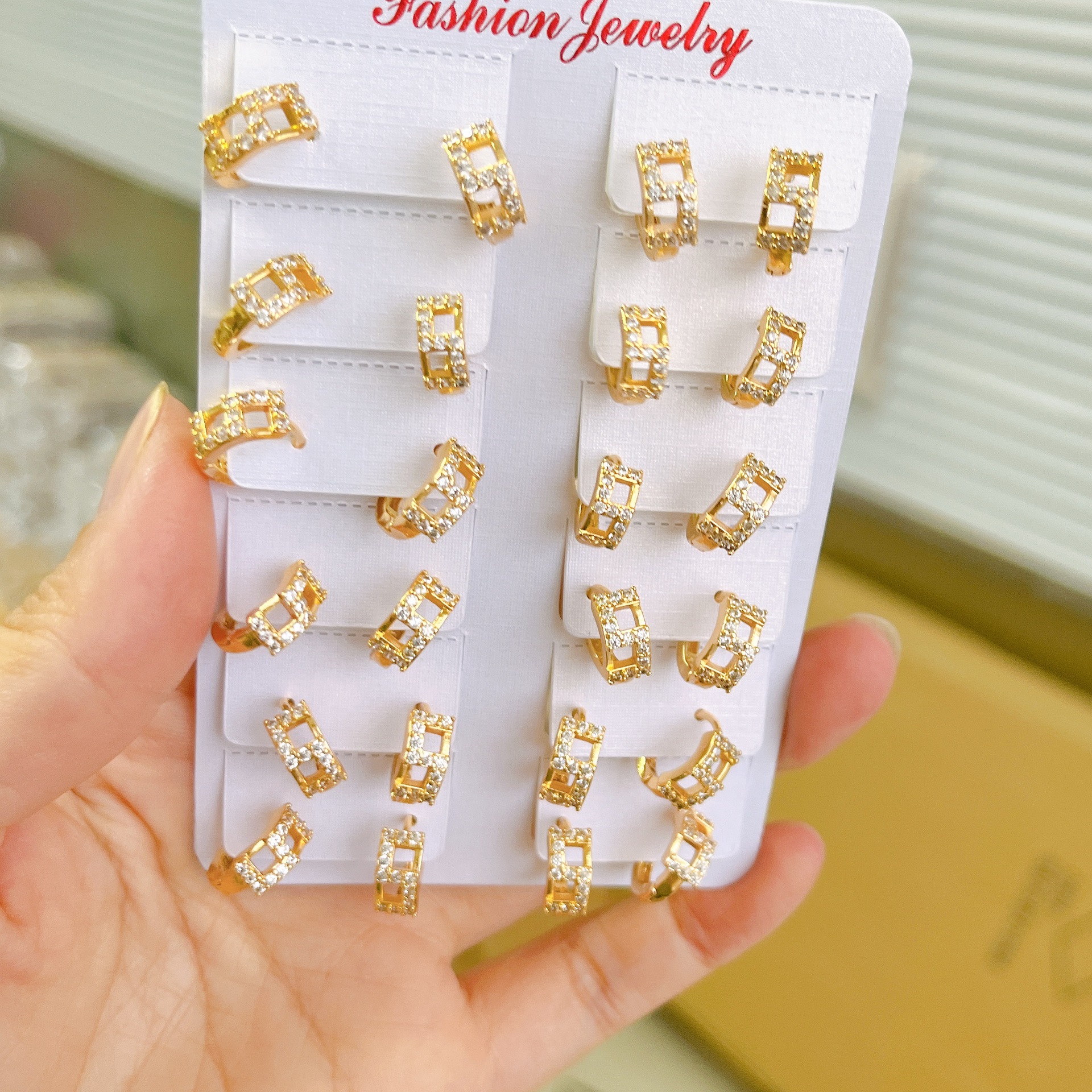 跨境耳扣方正S形镶钻耳环精致耳圈时尚百搭耳饰高质量耳骨镀金