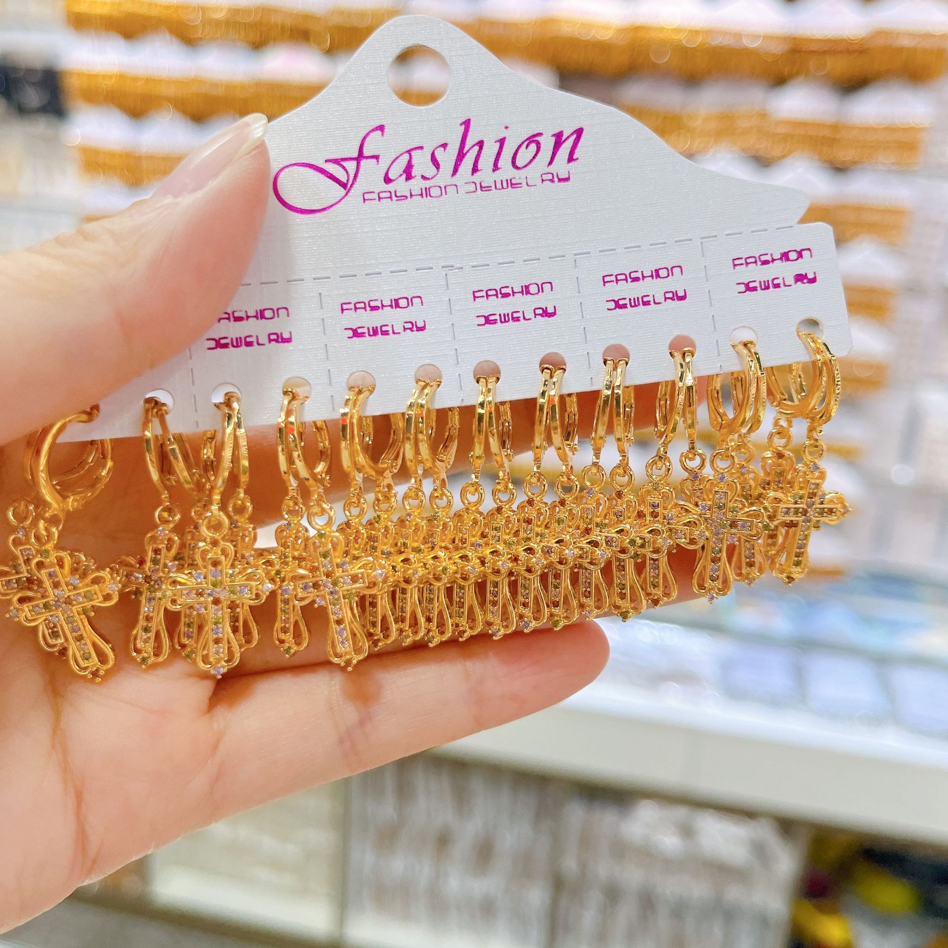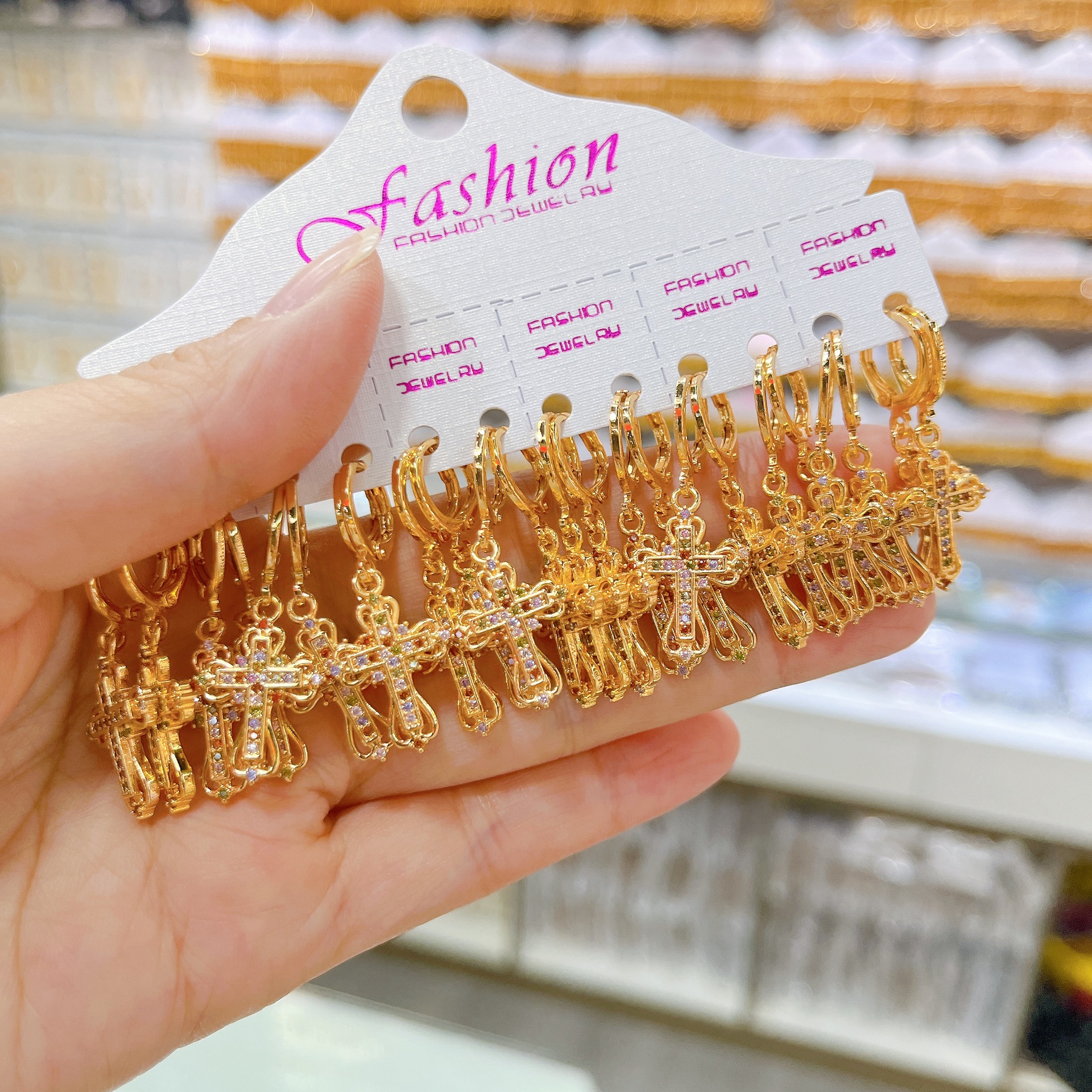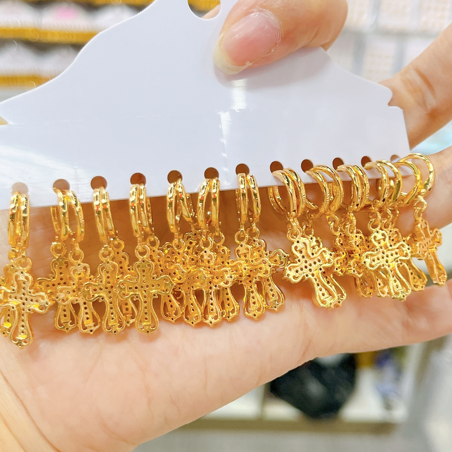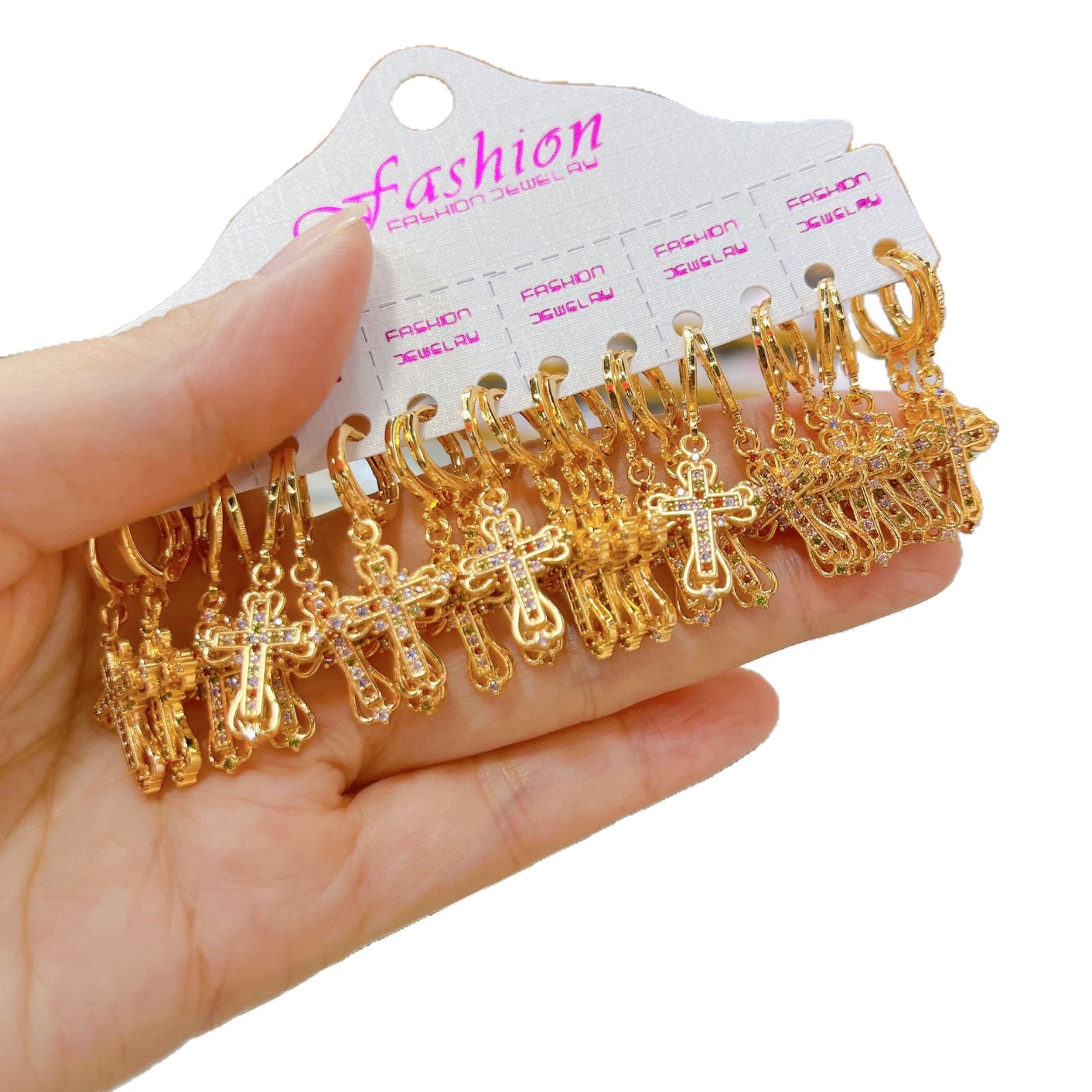 跨境耳环十字架耳扣微镶挂坠精致锆石耳饰女士铜镀金设计耳扣饰品