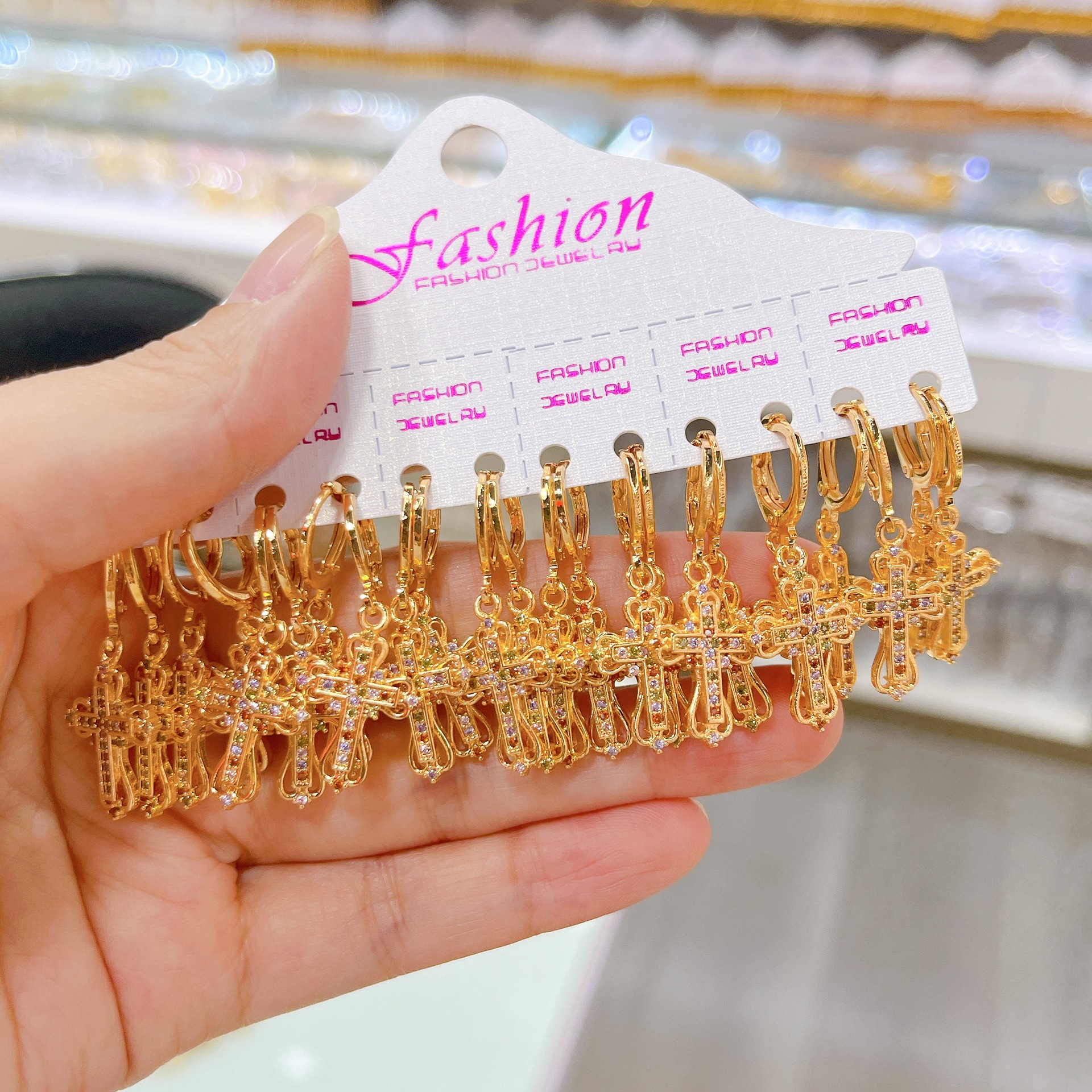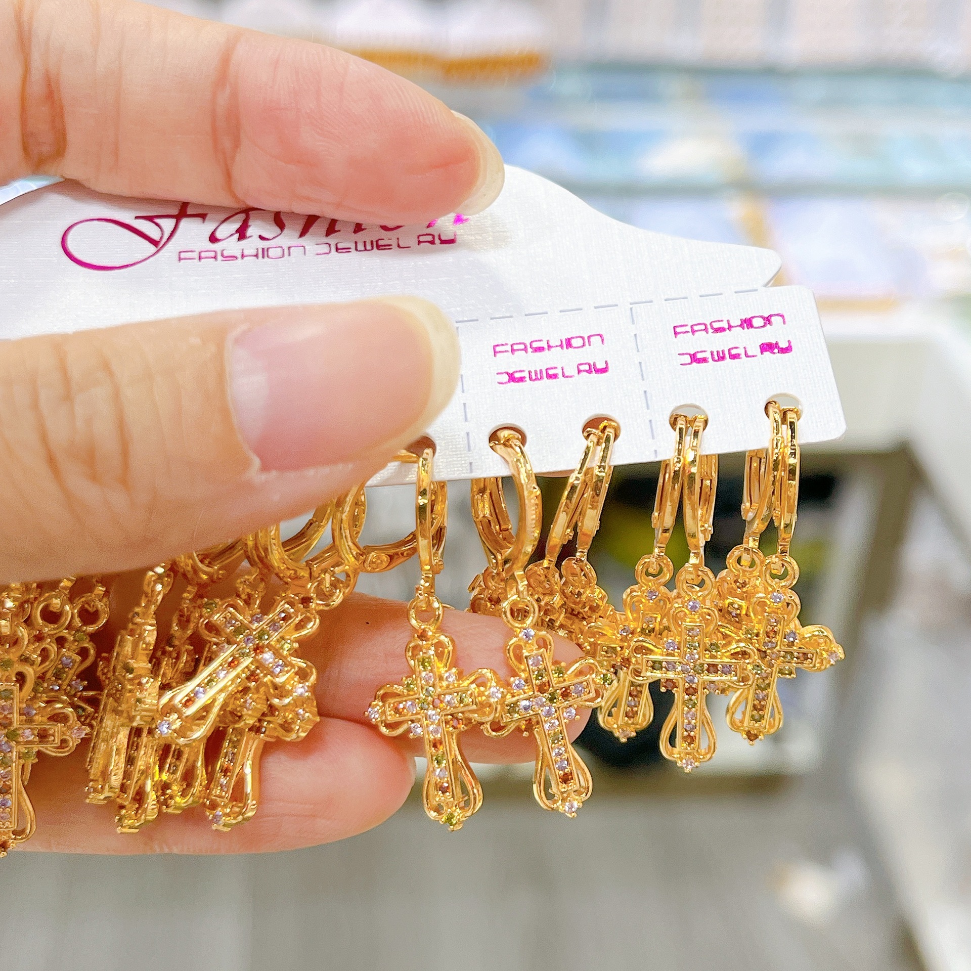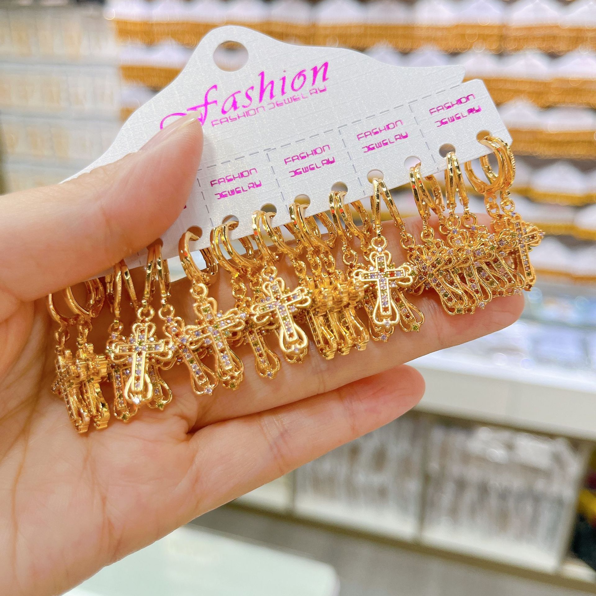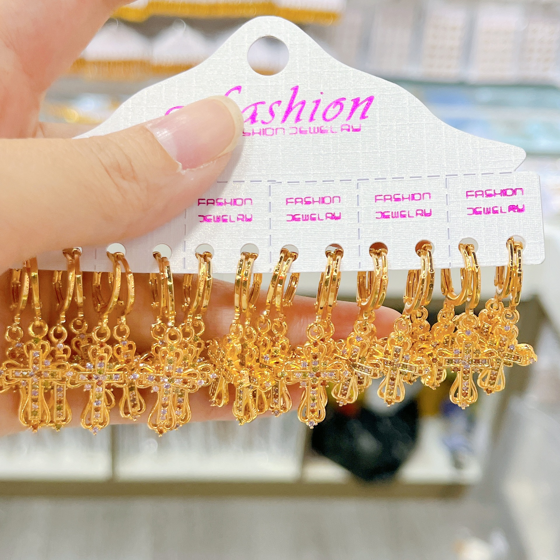 跨境耳环十字架耳扣微镶挂坠精致锆石耳饰女士铜镀金设计耳扣饰品